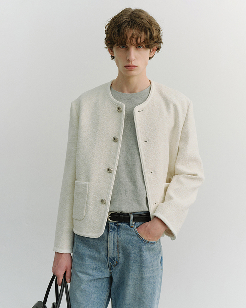 UNISEX CLASSIC BOUCLE TWEED JACKET CREAM_M_UDJA6A108CR