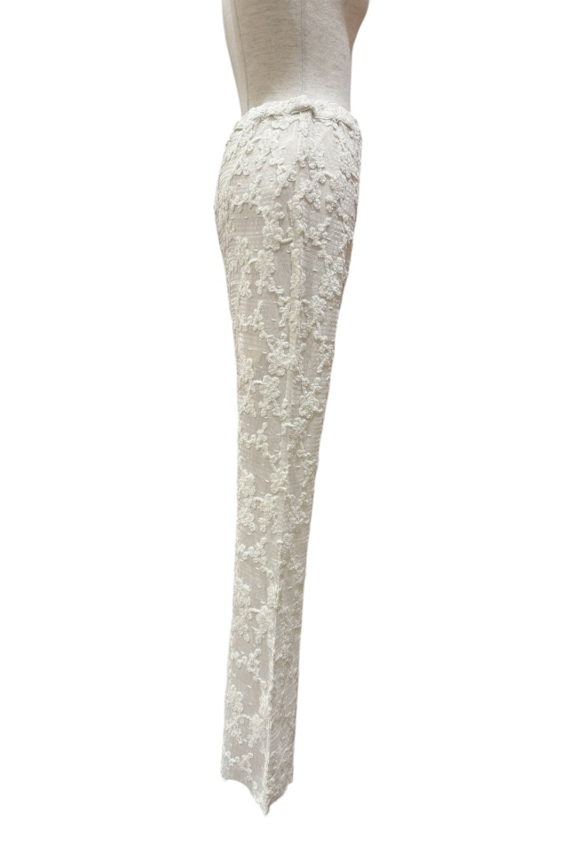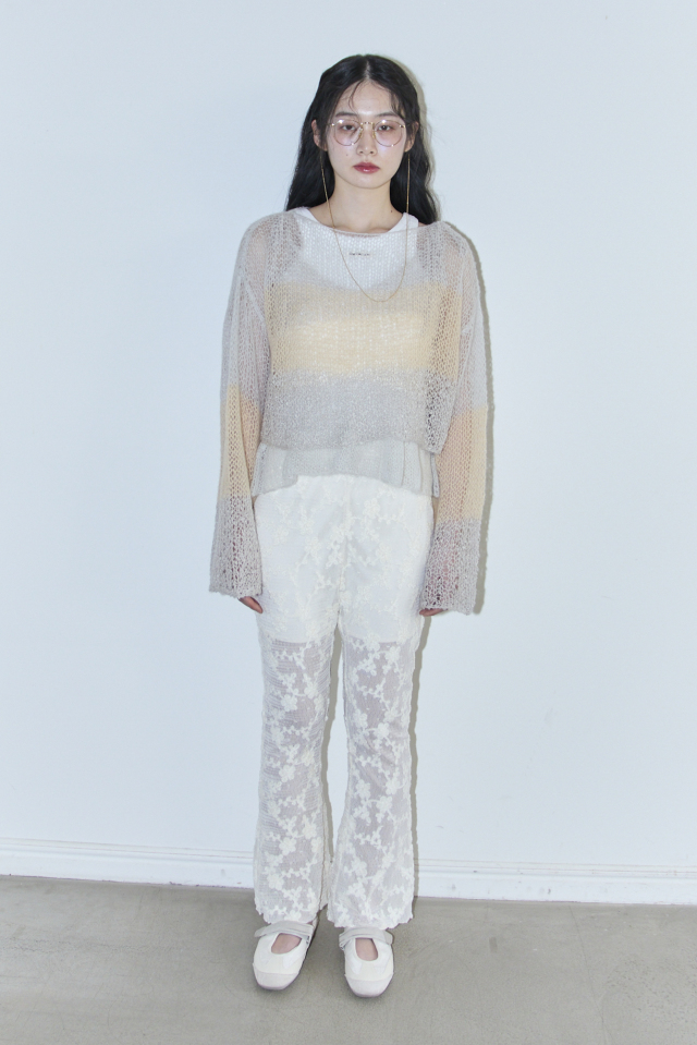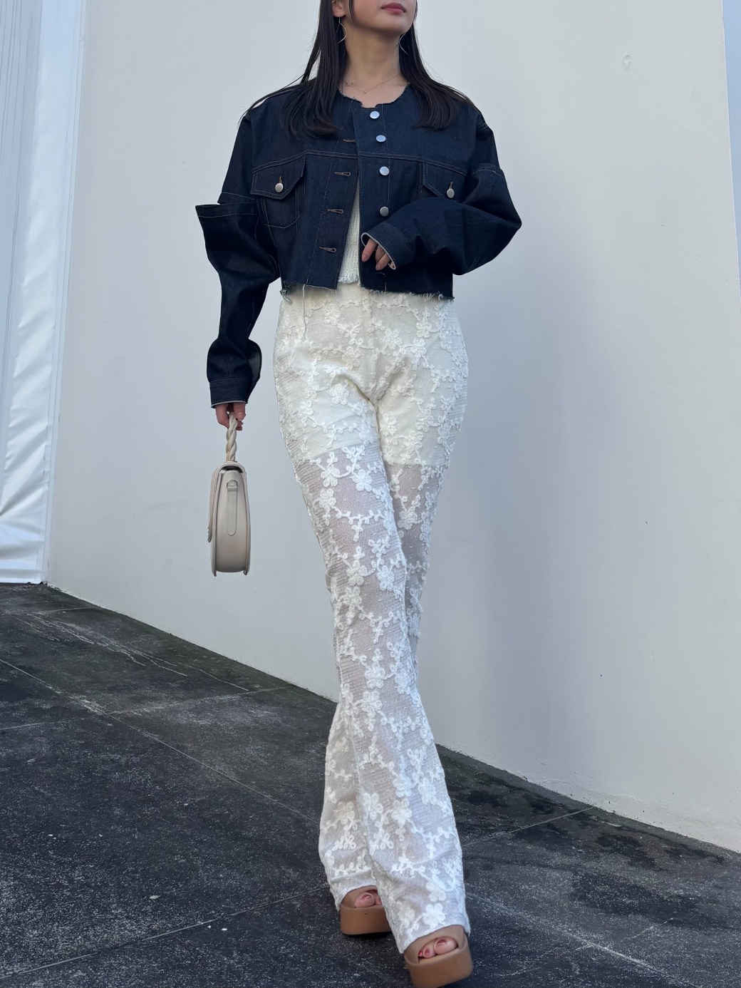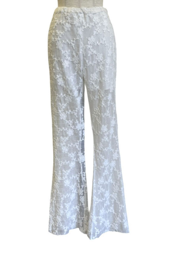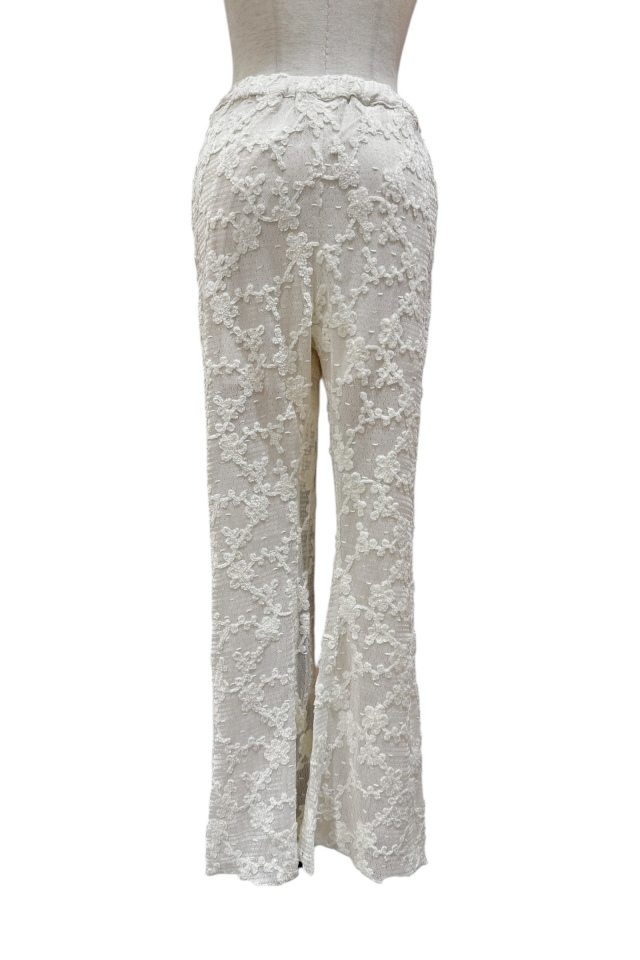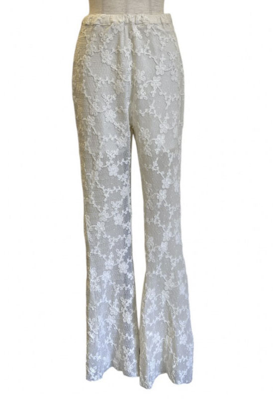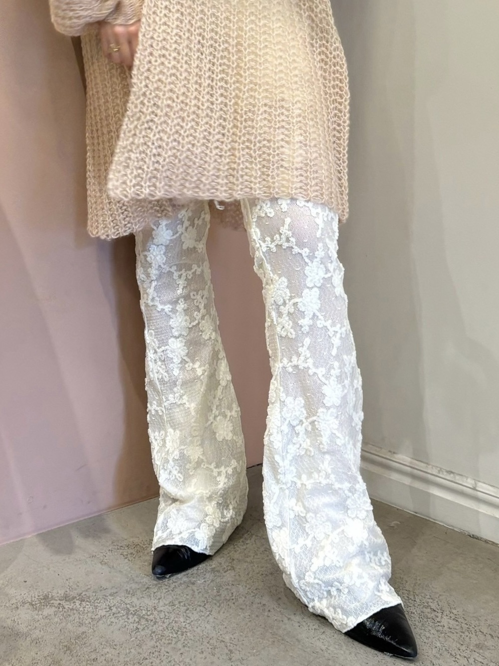 レディライクな抜け感を演出する、上品なモールレースのフレアパンツ