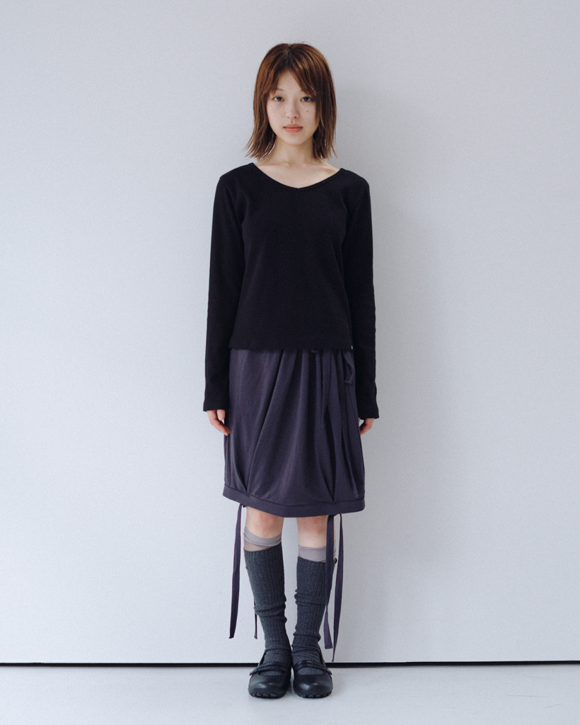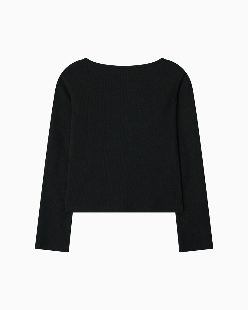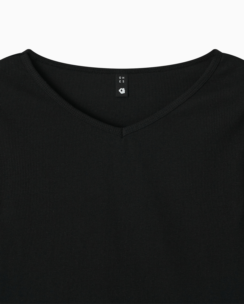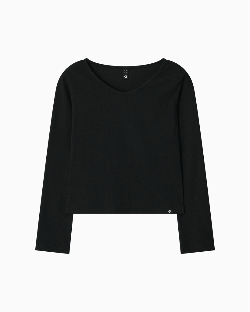 BASIC RIBBED V-NECK LONG SLEEVE, BLACK