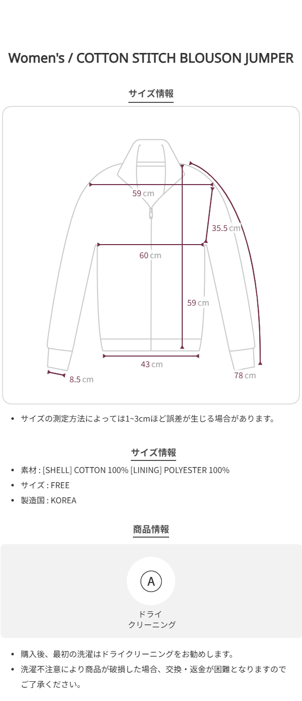 COTTON STITCH BLOUSON JUMPER [ BEIGE ]