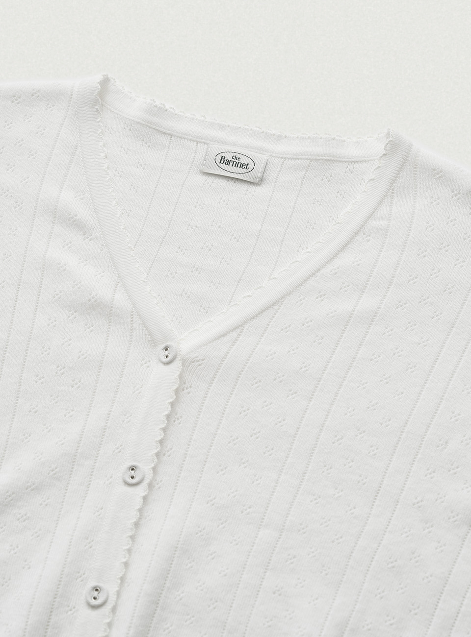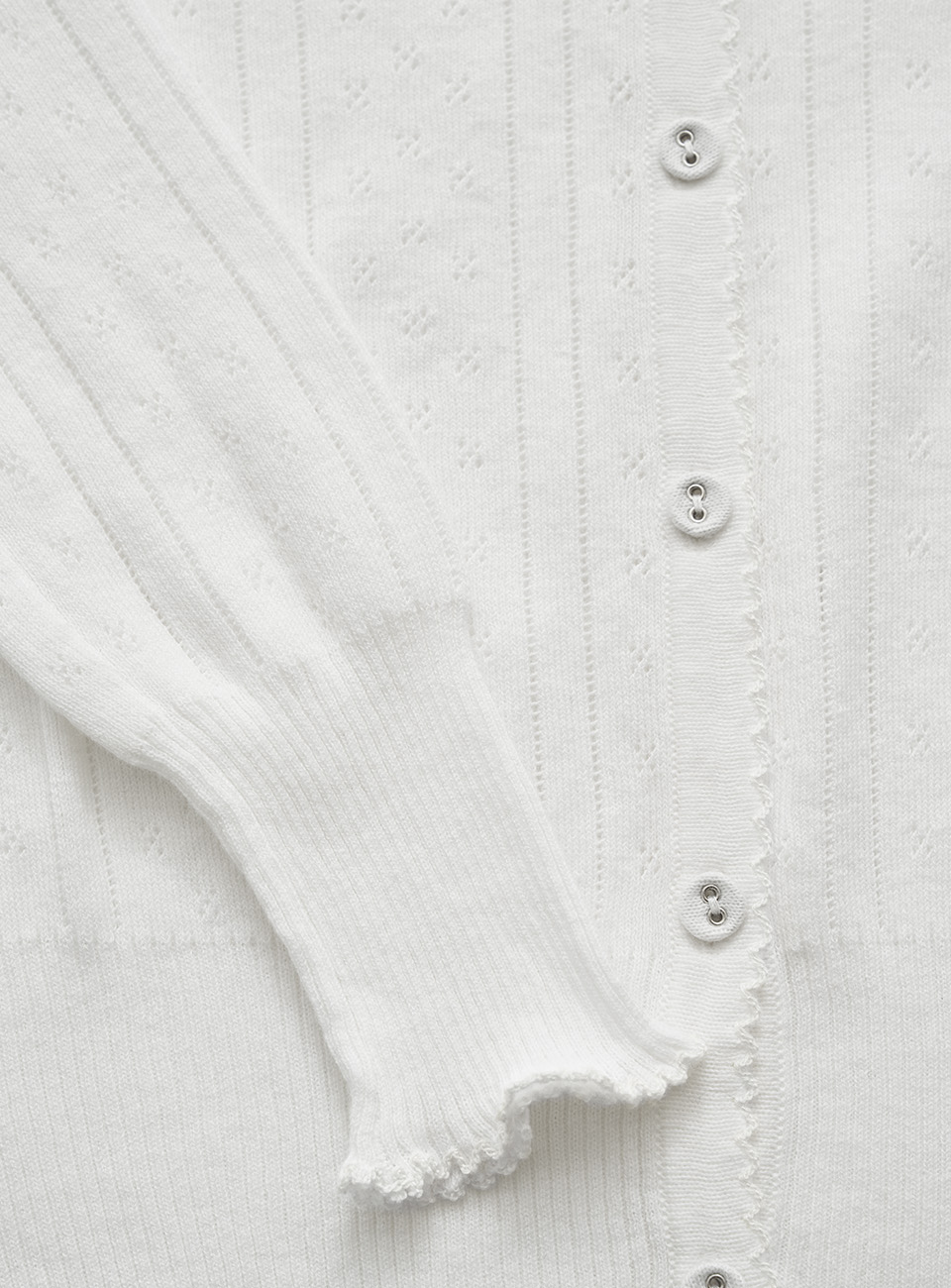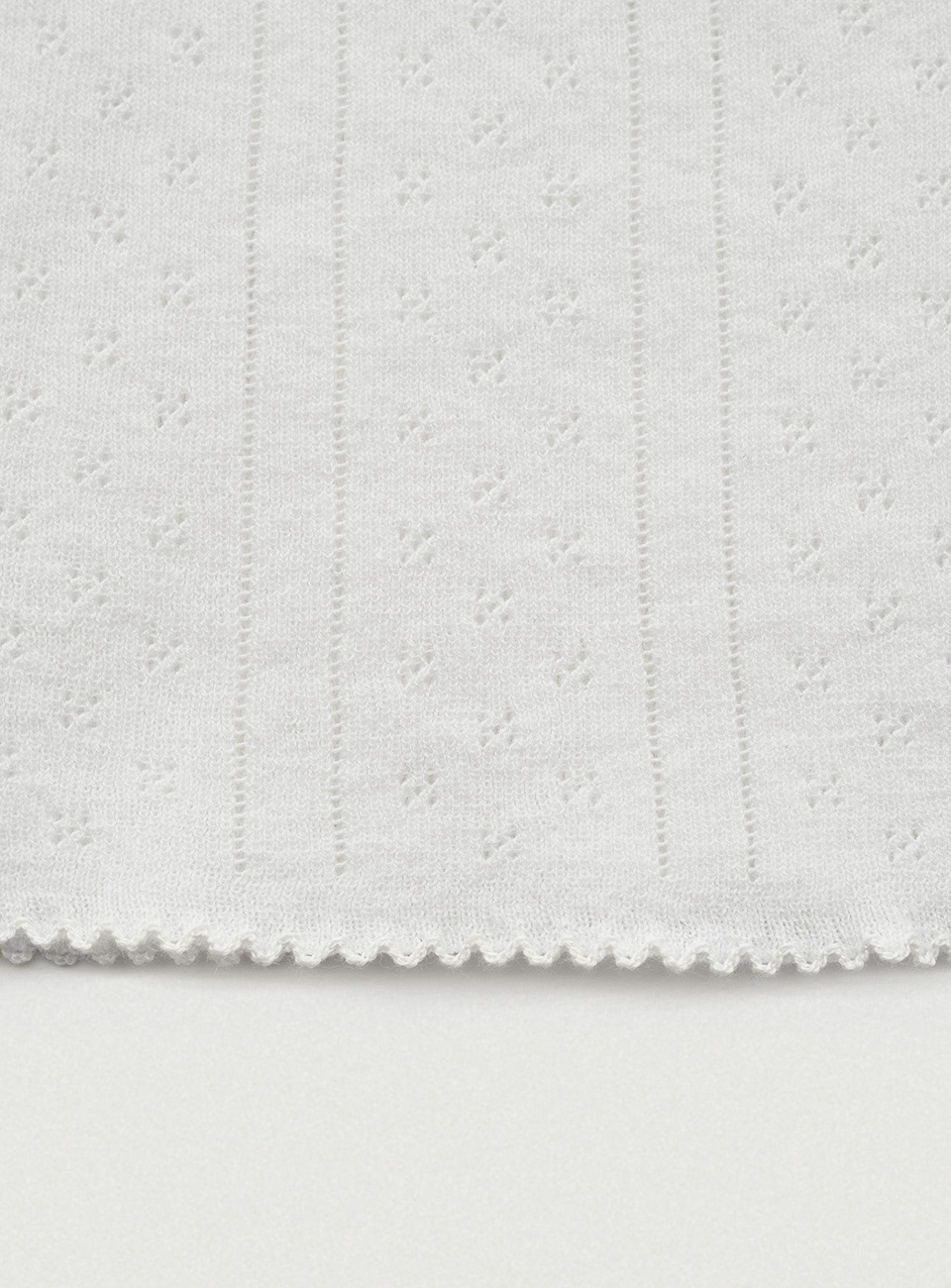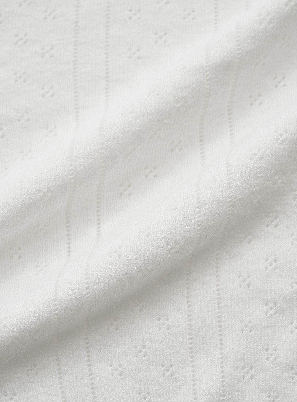 明るいアイボリーカラーと、ポワンテル編み、なめらかなテクスチャーが際立つコットンニット