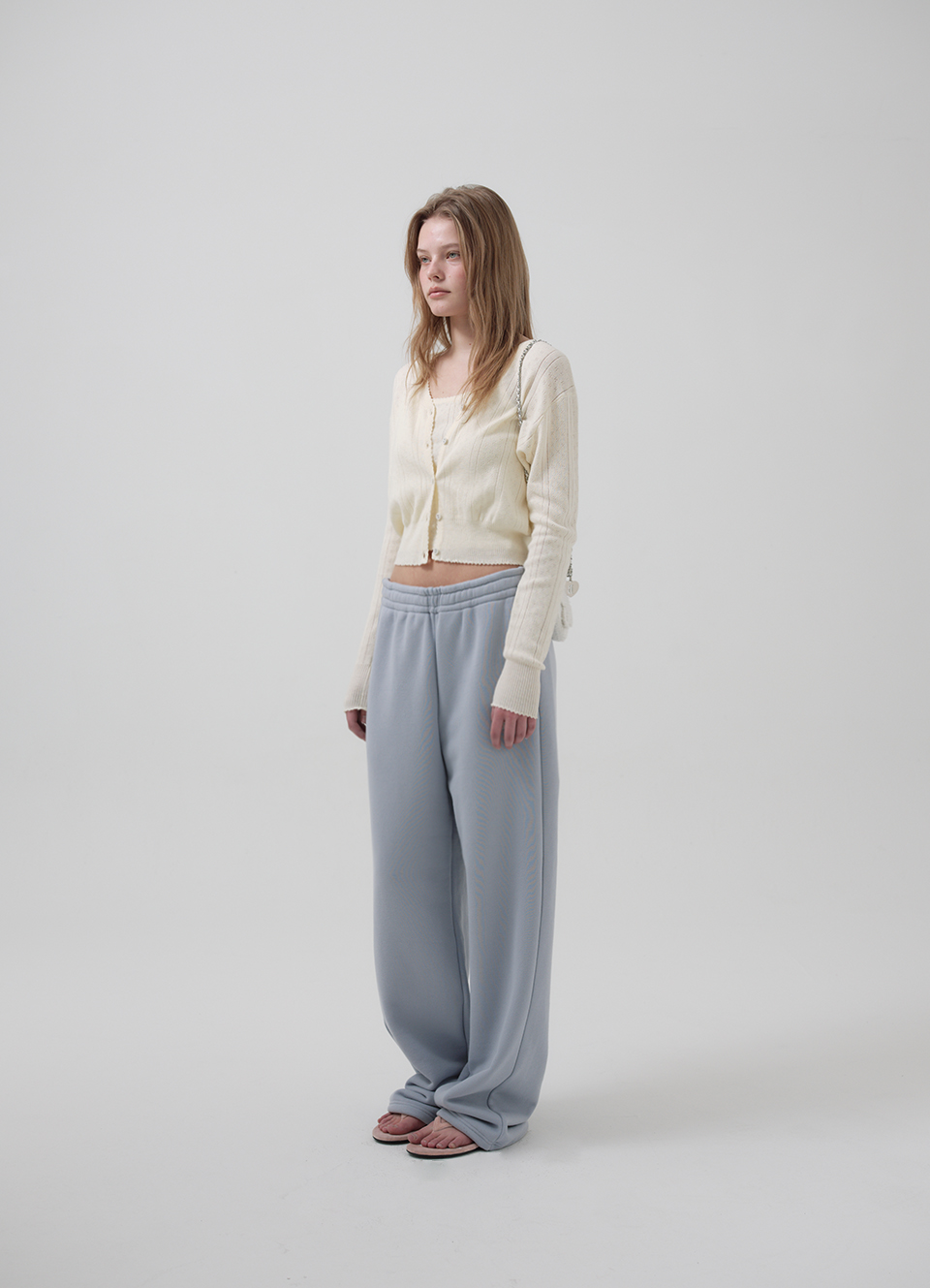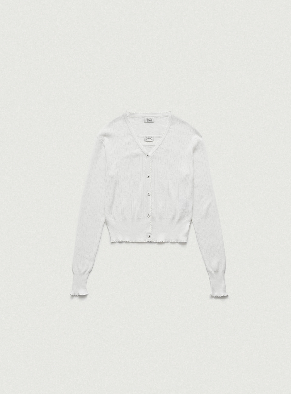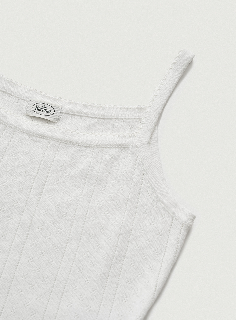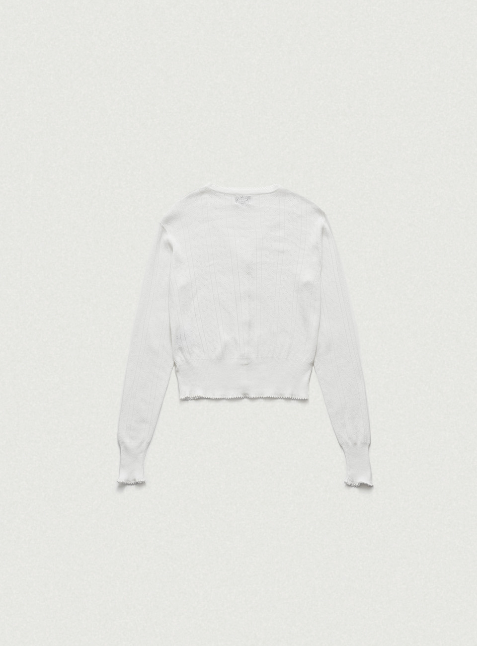 明るいアイボリーカラーと、ポワンテル編み、なめらかなテクスチャーが際立つコットンニット