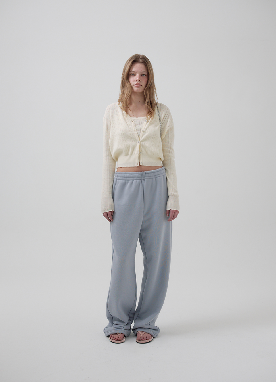 Cotton Eyelet Knit Cardigan Ensemble With Sleeveless Top_Ivory