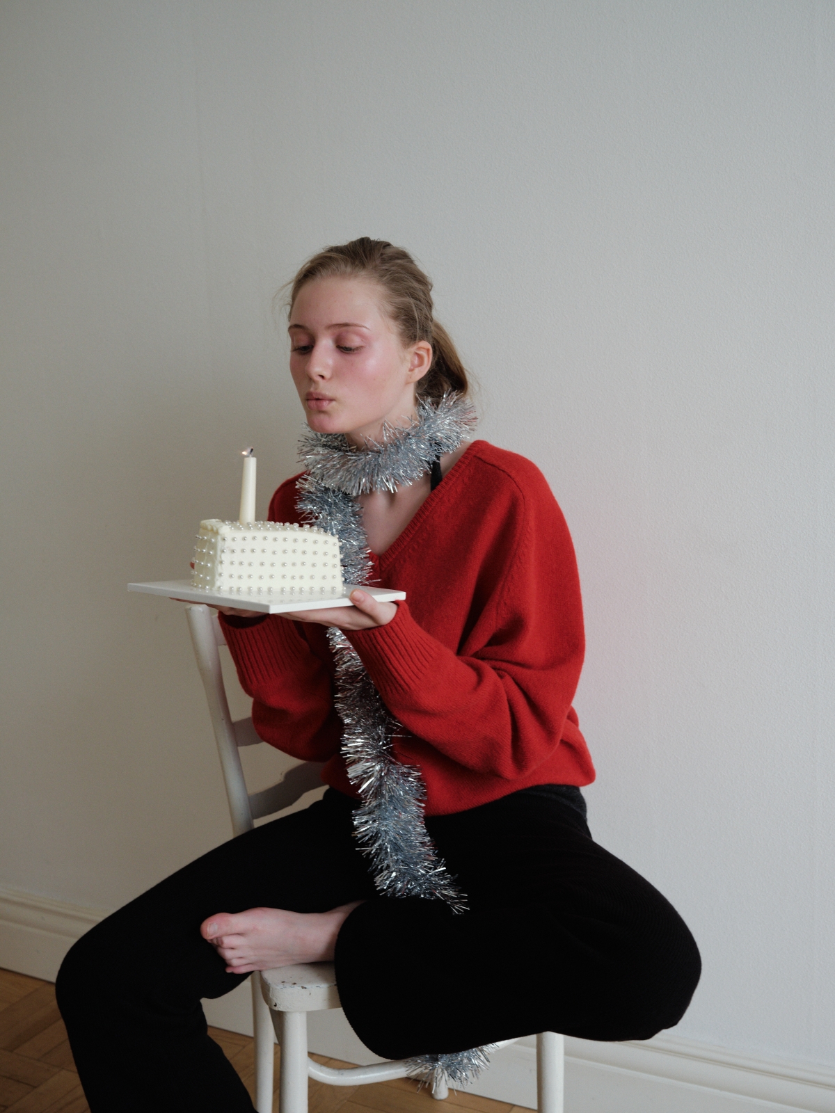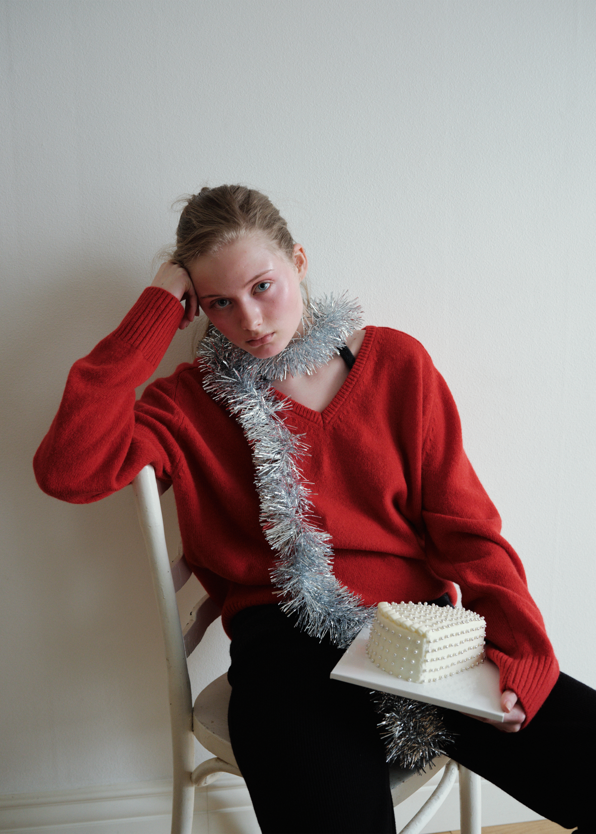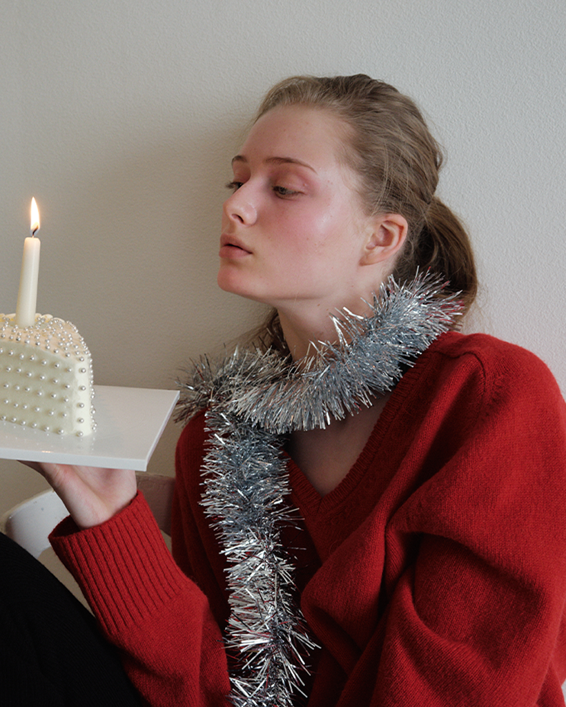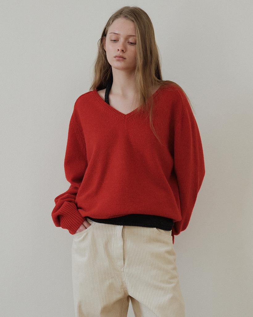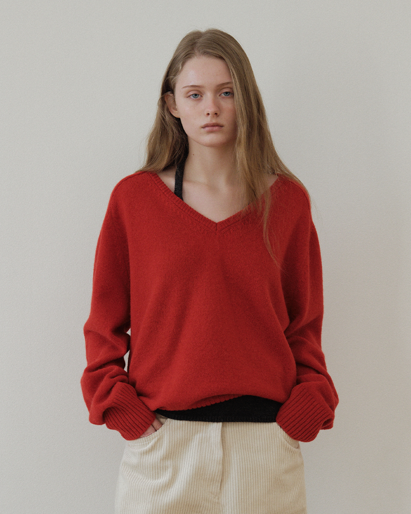 Baby Alpaca V-Neck Knit_Red