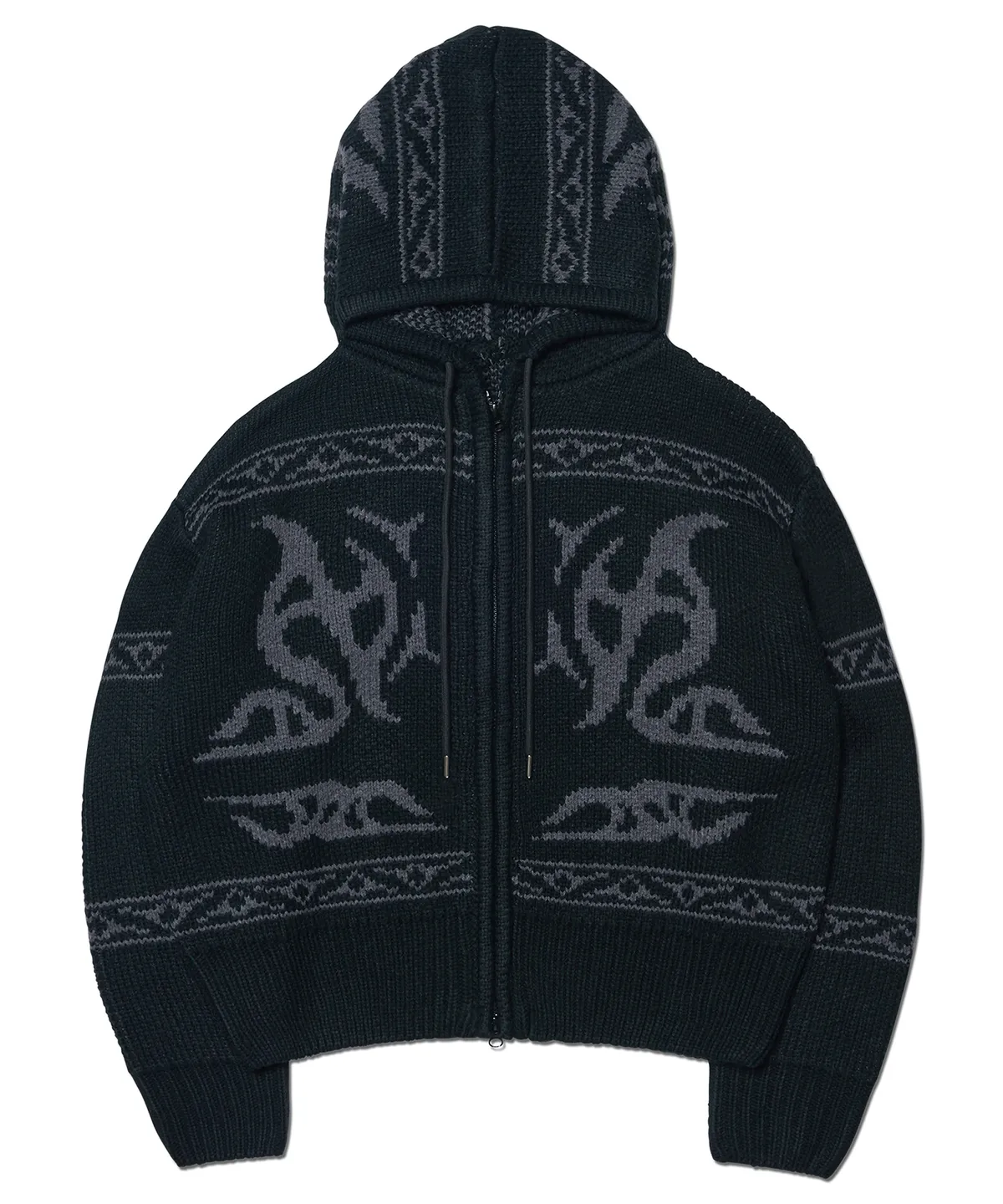 (24FW)COWICHAN HOODED ZIP-UP BLACK