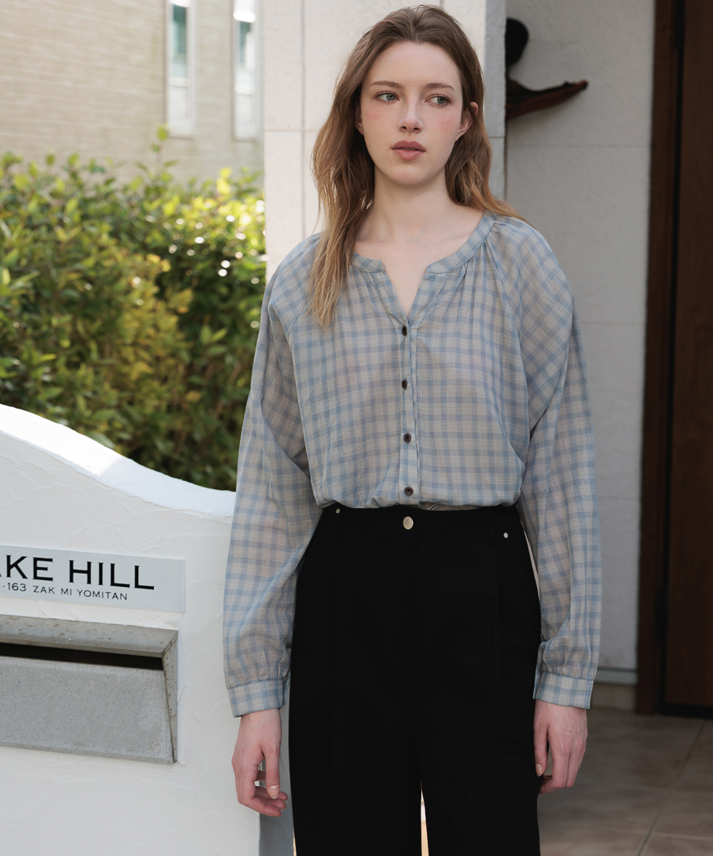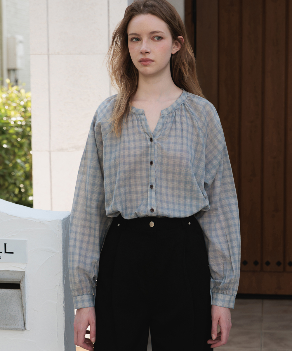 Check Pattern Volume Blouse [Blue]