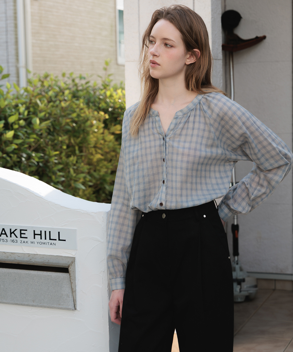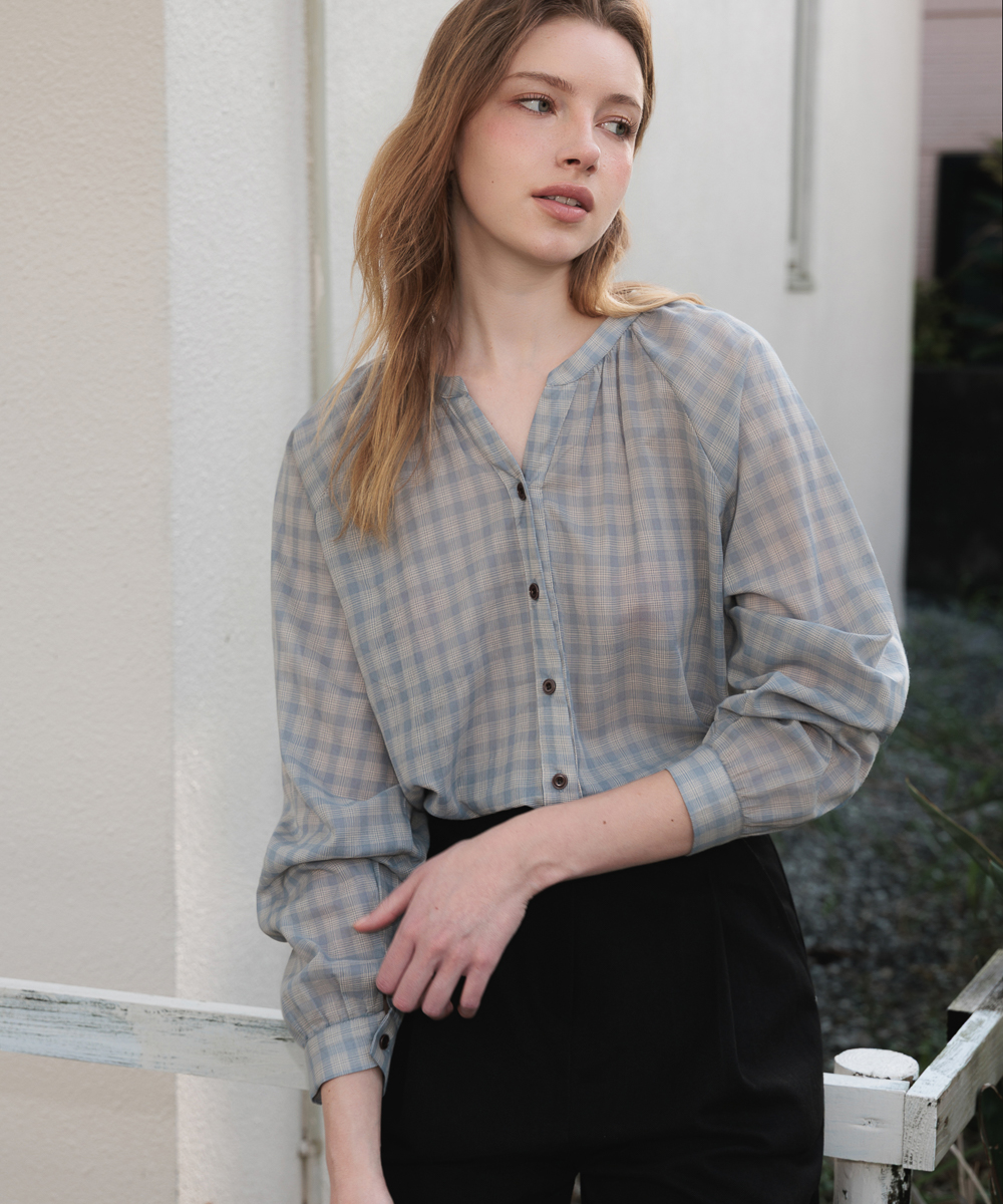 繊細なチェックパターンがクラシックでありながらカジュアルなムードを加えるチェックブラウスです。