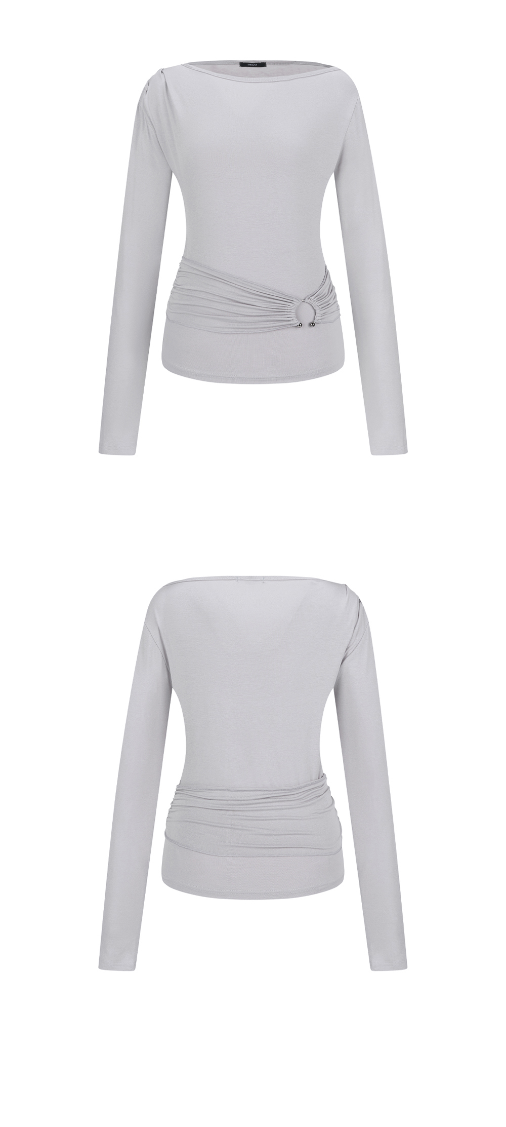 [mnem] Ring Panel Boat Neck Top (gray)