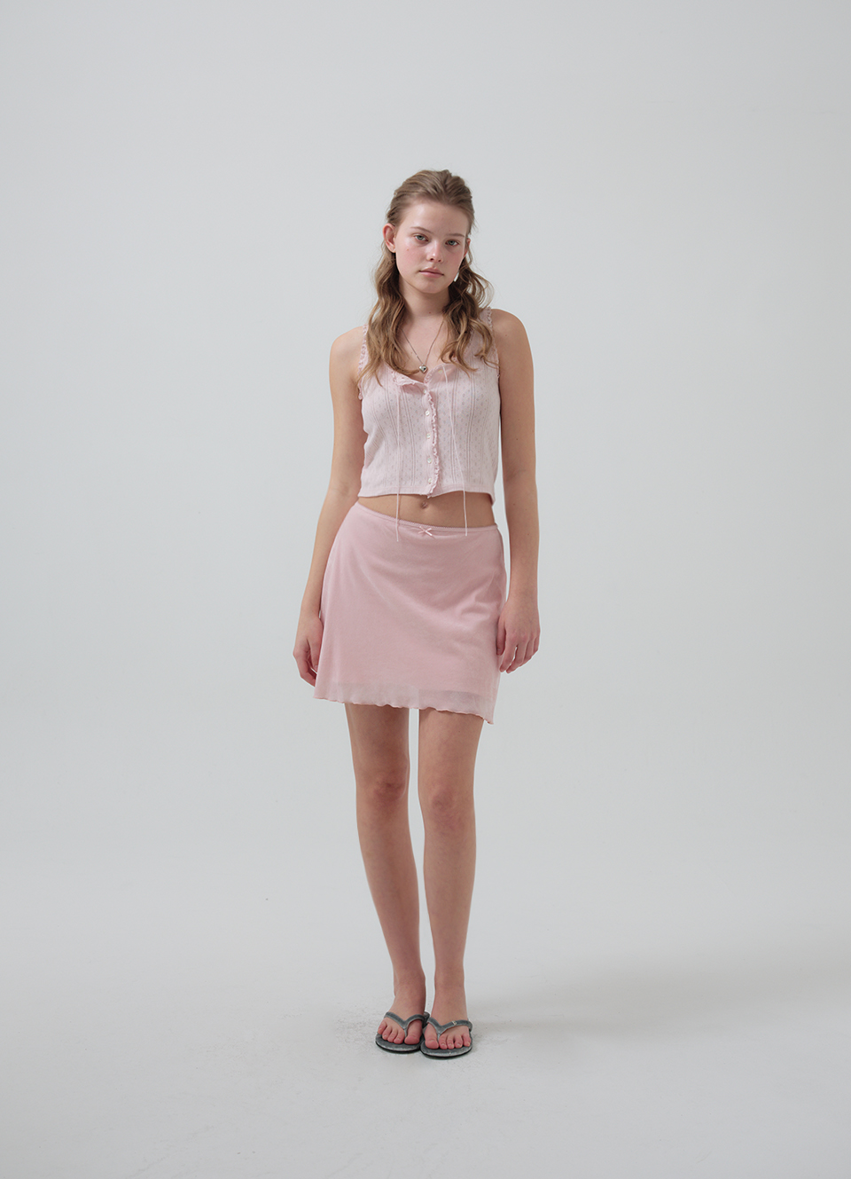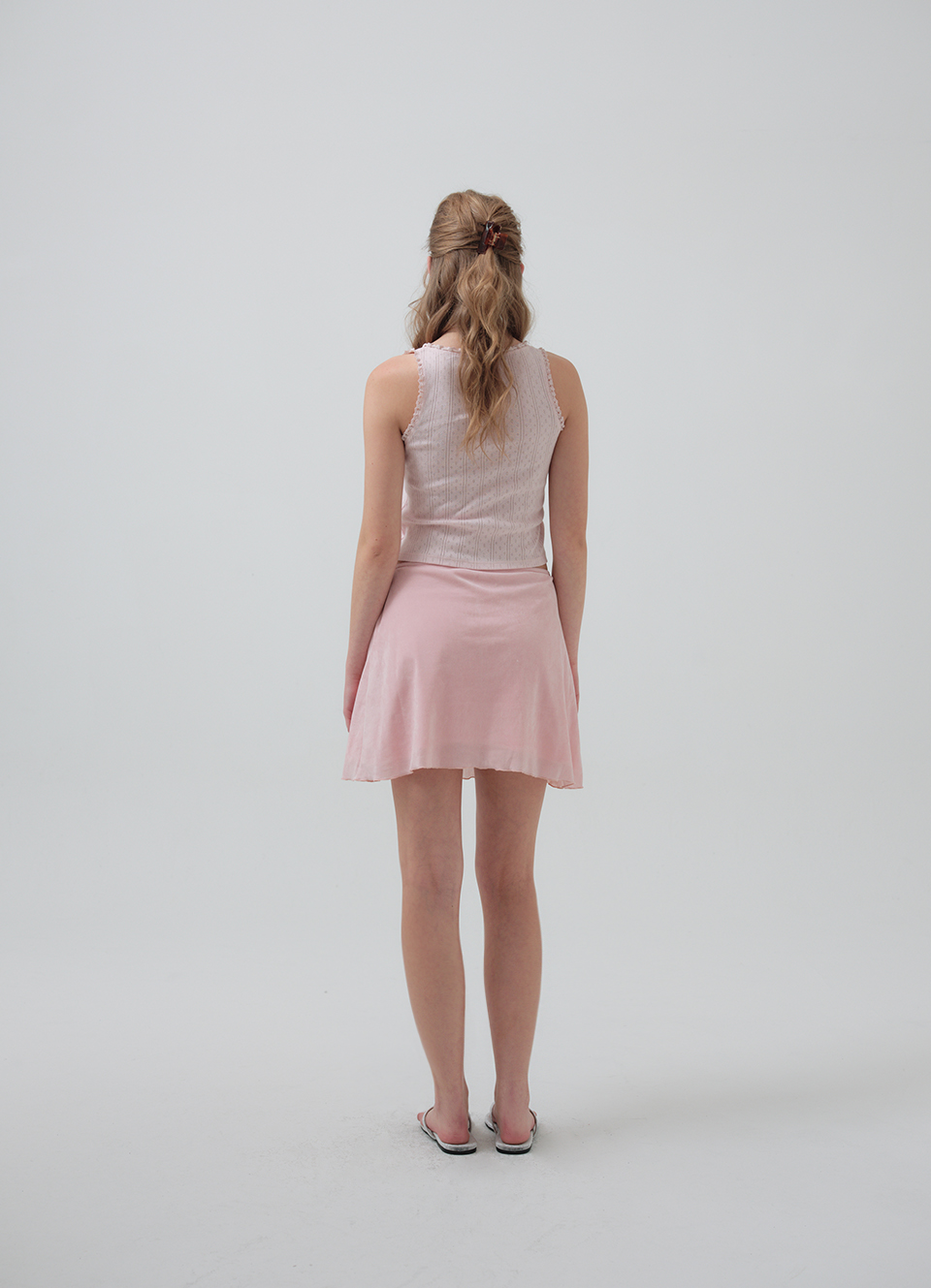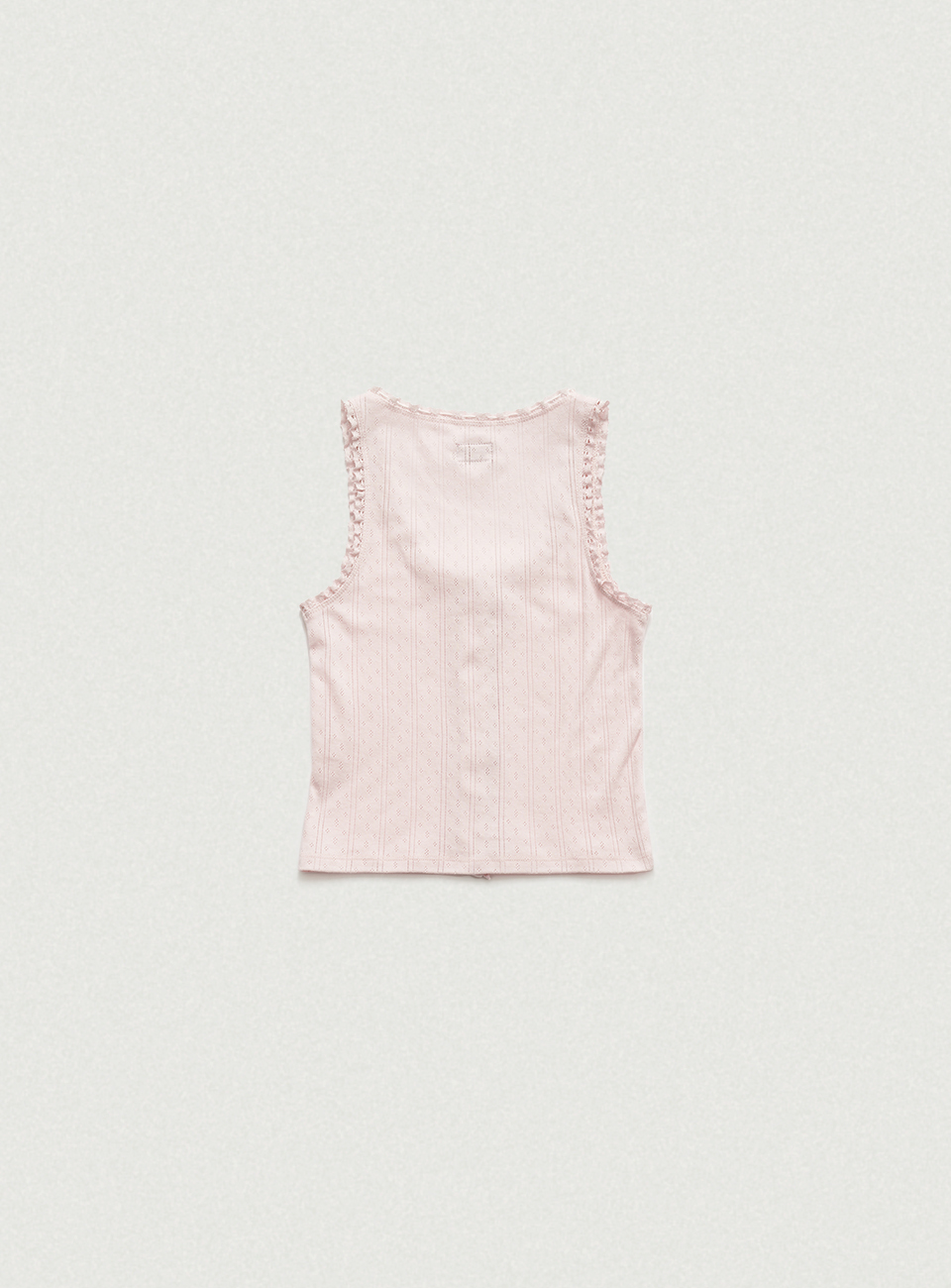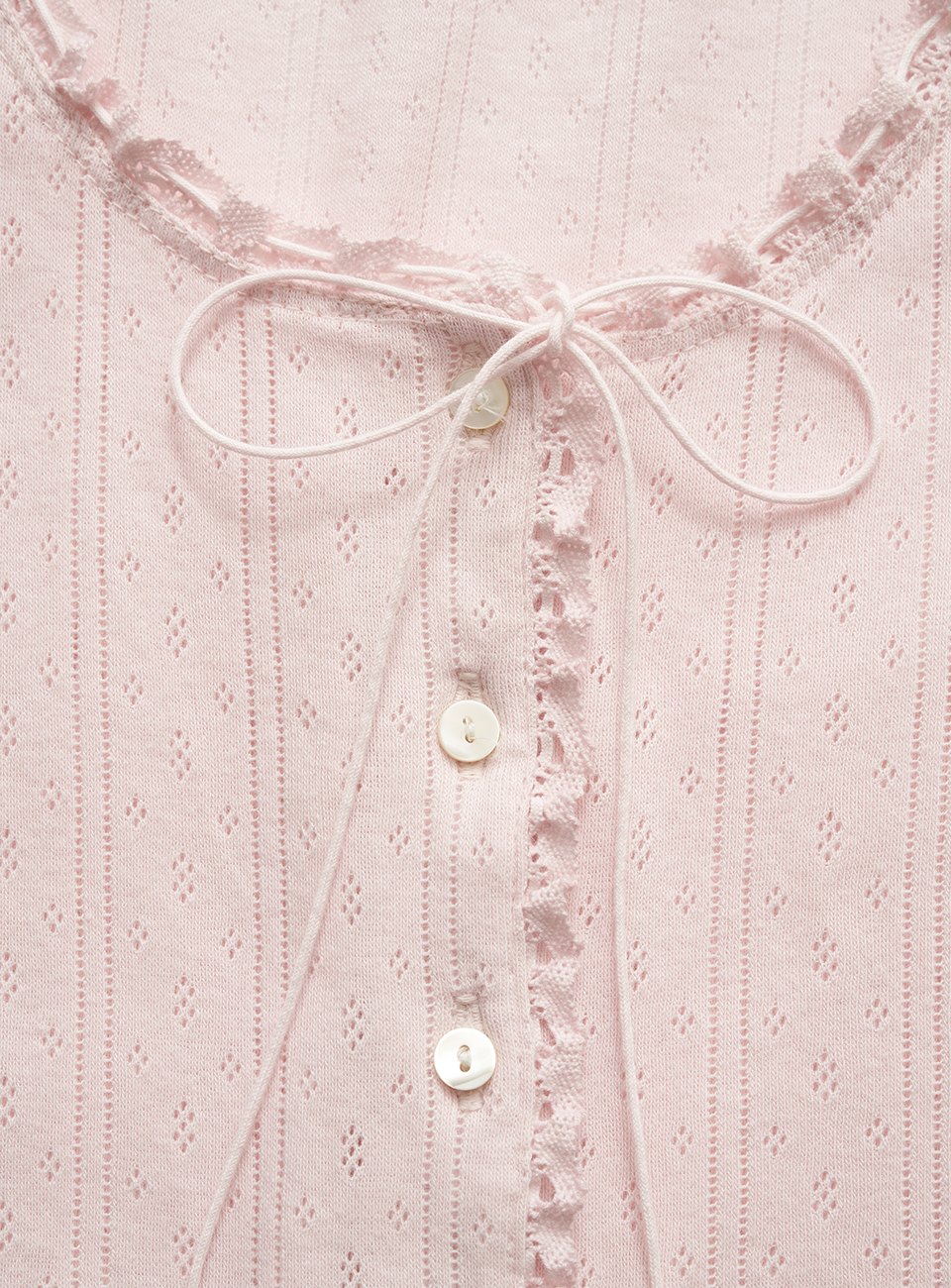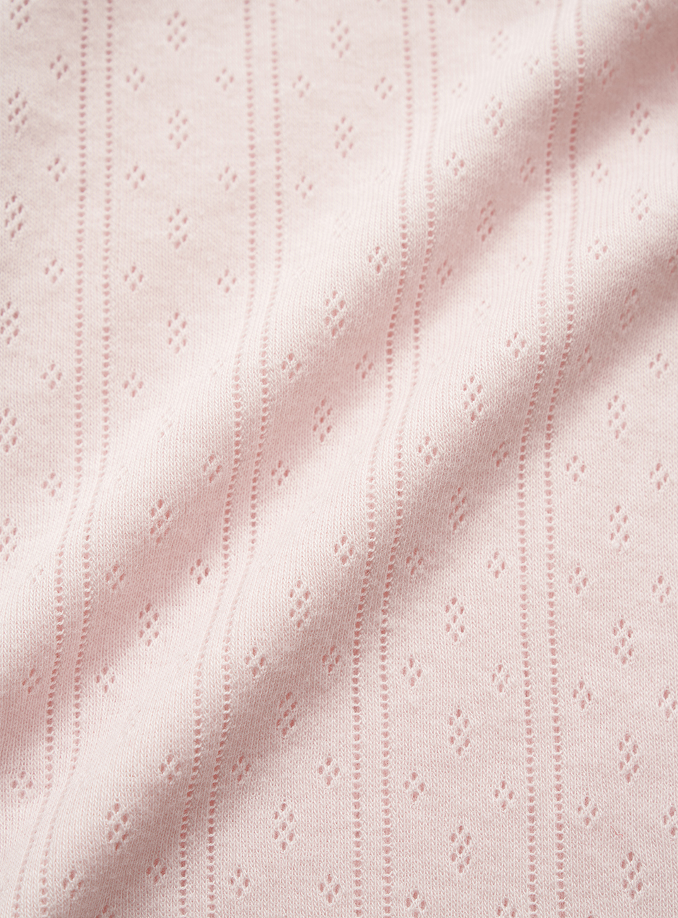 ピンクカラーとアイレットテクスチャーが印象的なコットンファブリック