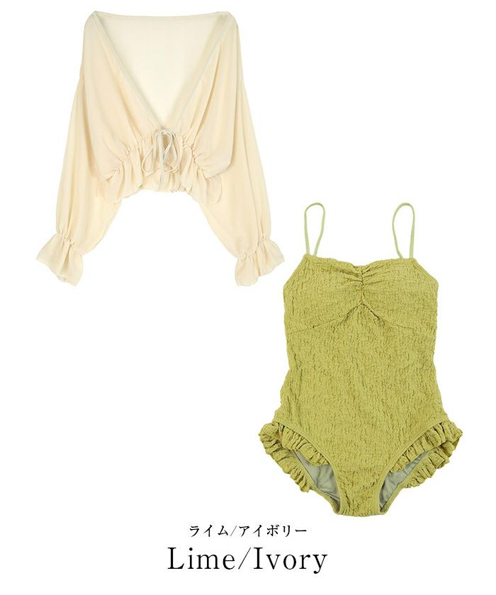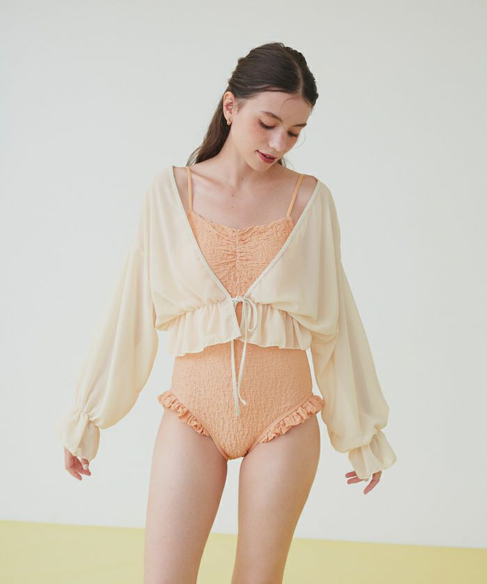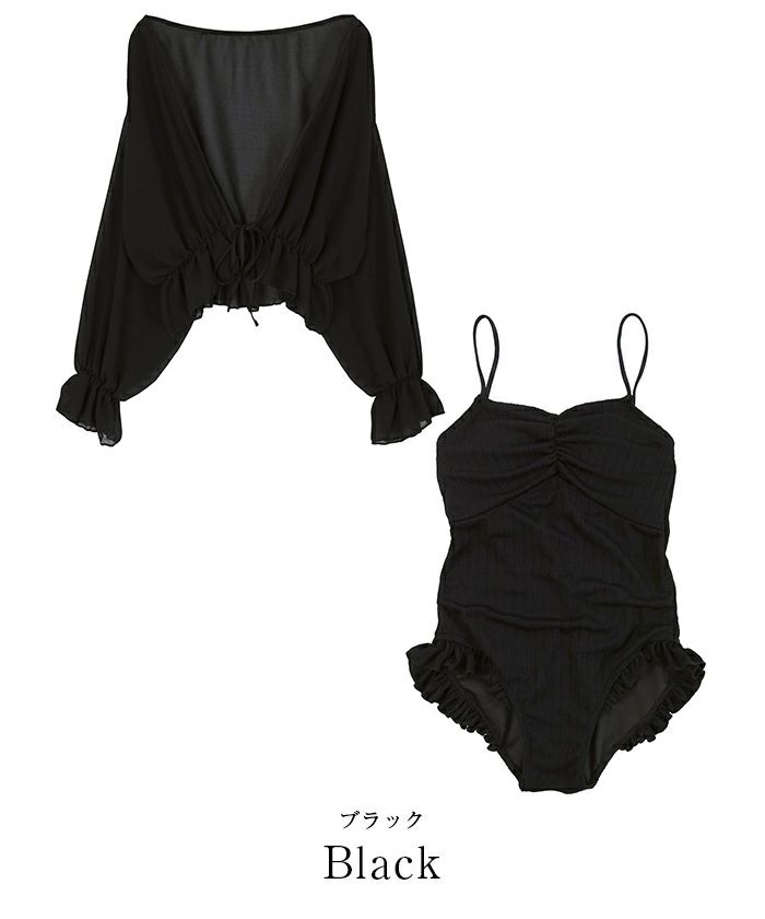 ・フリルデザインが大人可愛いボレロ付きセット水着。