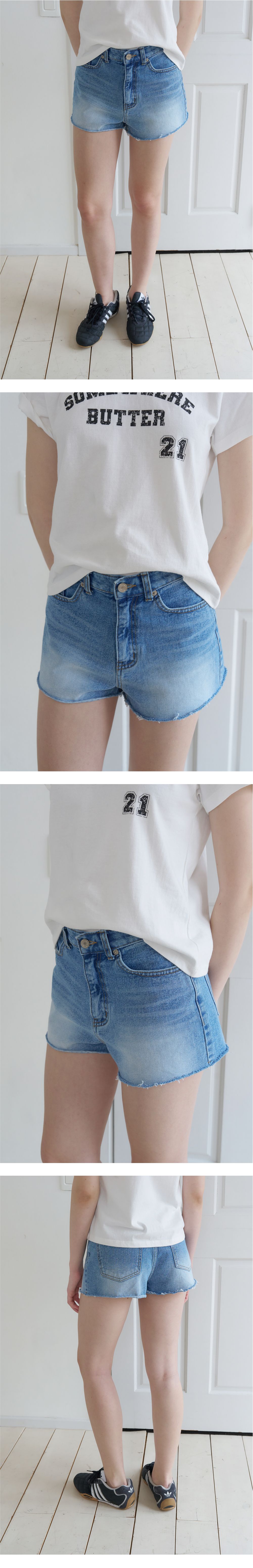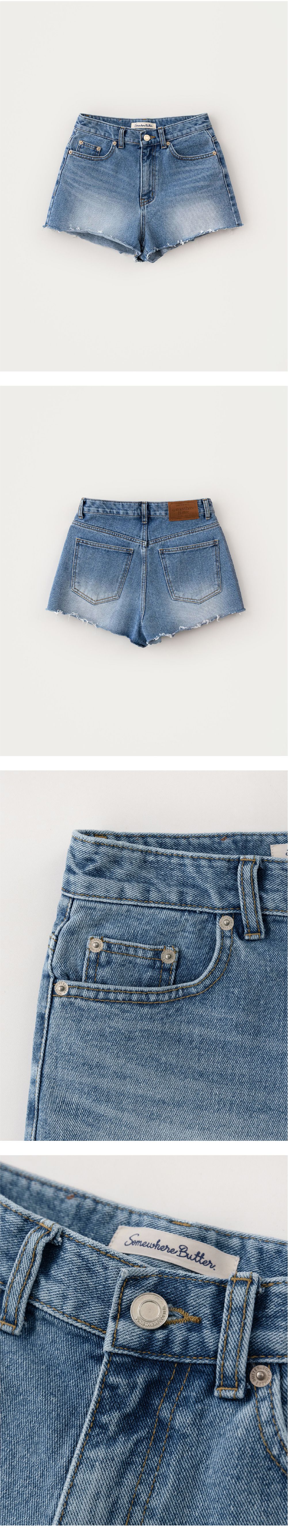 Pento Cutting Denim Shorts - Middle Blue