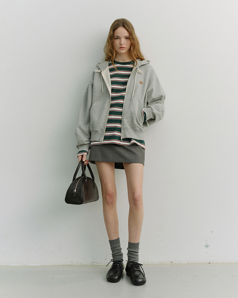 UNISEX LEATHER LOGO ZIP-UP HOODIE MELANGE GREY_UDTS6A108G2