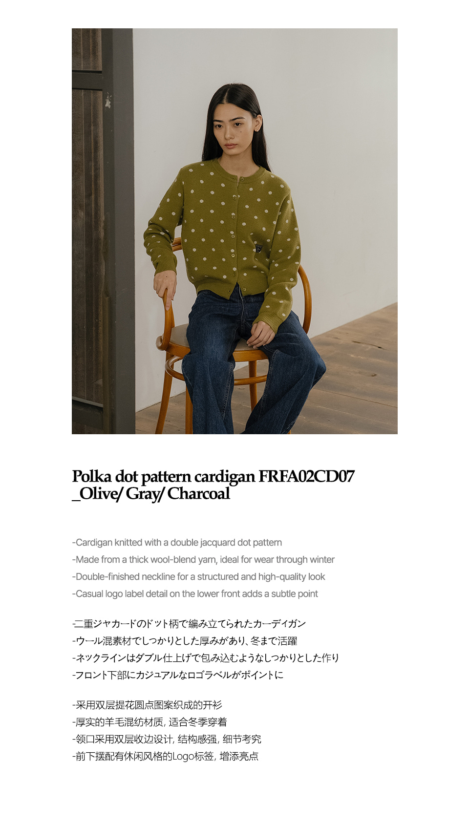 Polka dot pattern cardigan FRFA02CD07_Olive