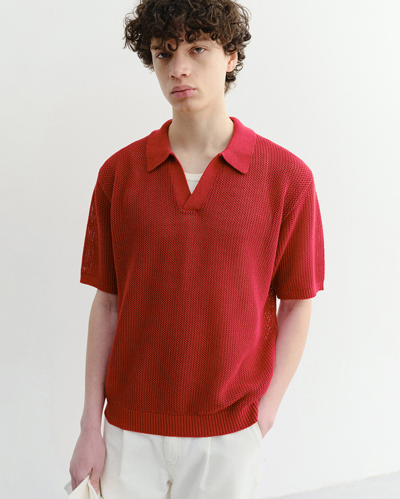 UNISEX CHUNKY POLO KNIT RED_M_UDSW6B126R2
