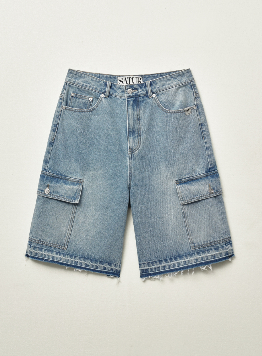 Cargo Bermuda Denim Shorts - Light Blue