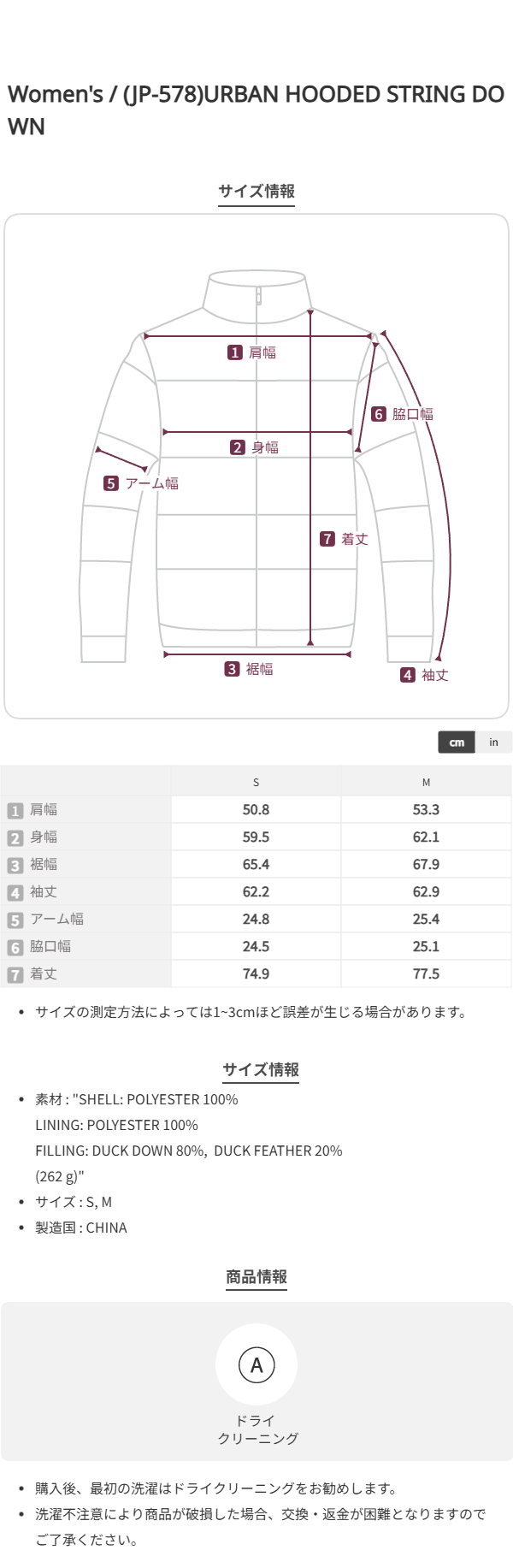 (JP-578)URBAN HOODED STRING DOWN