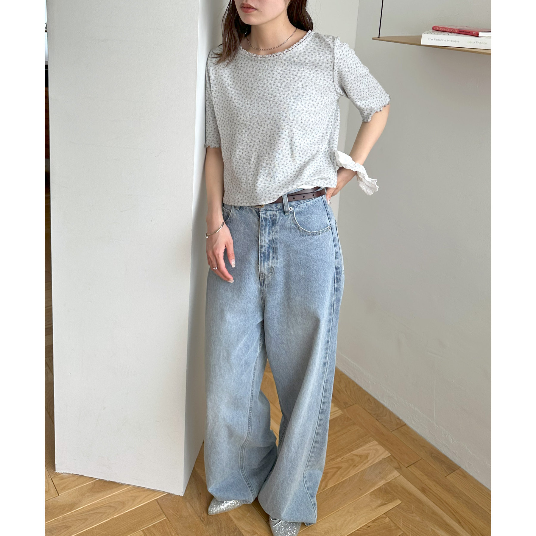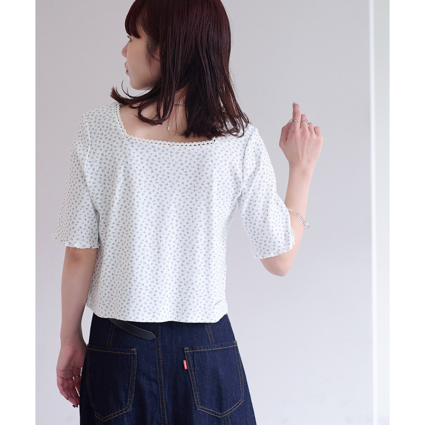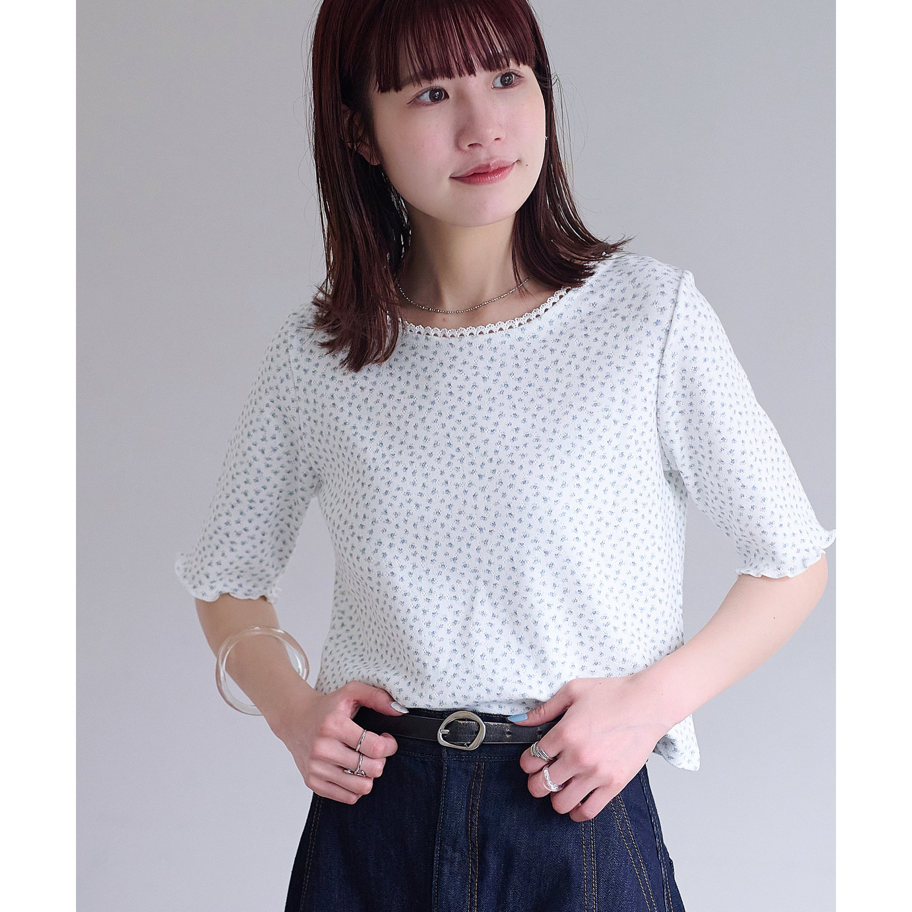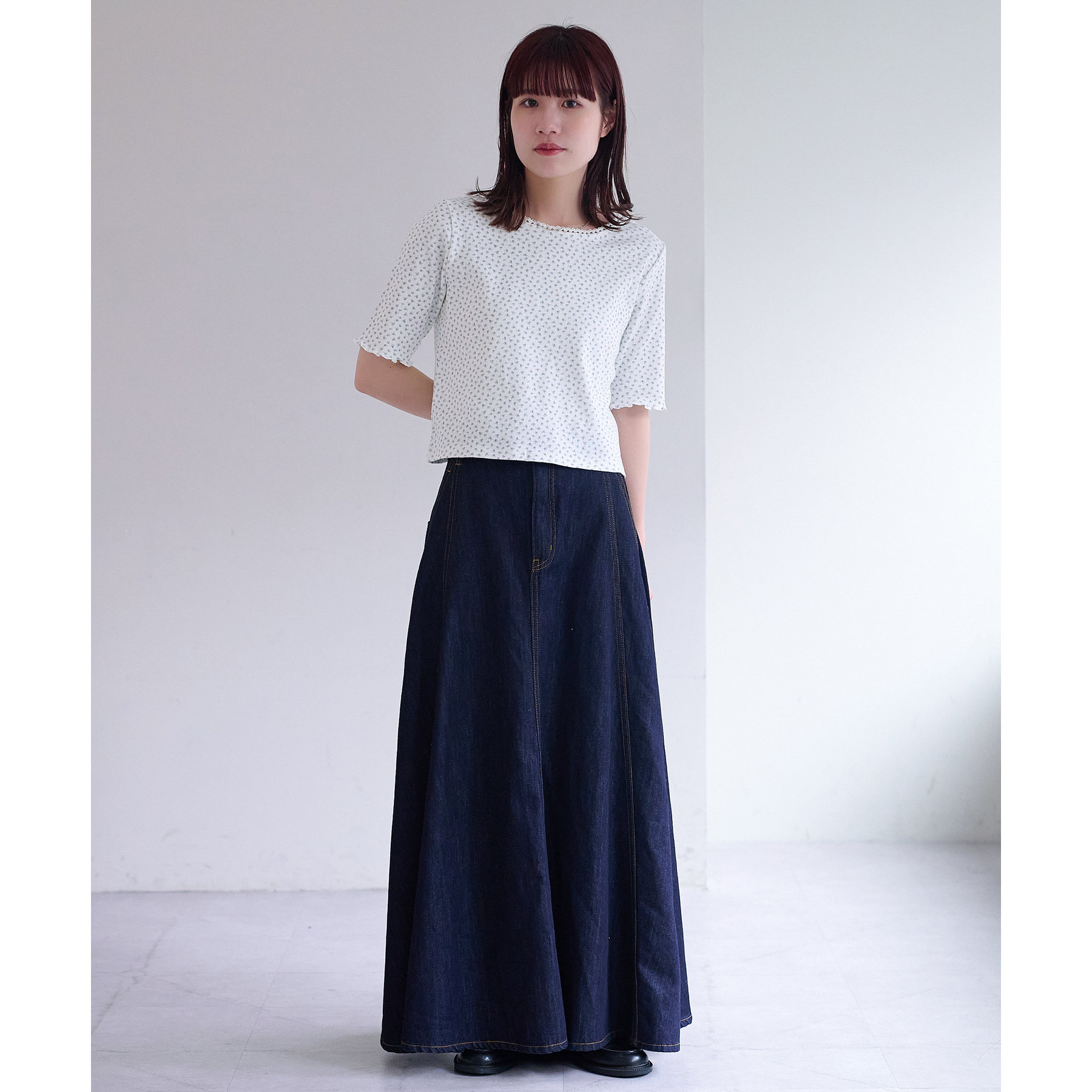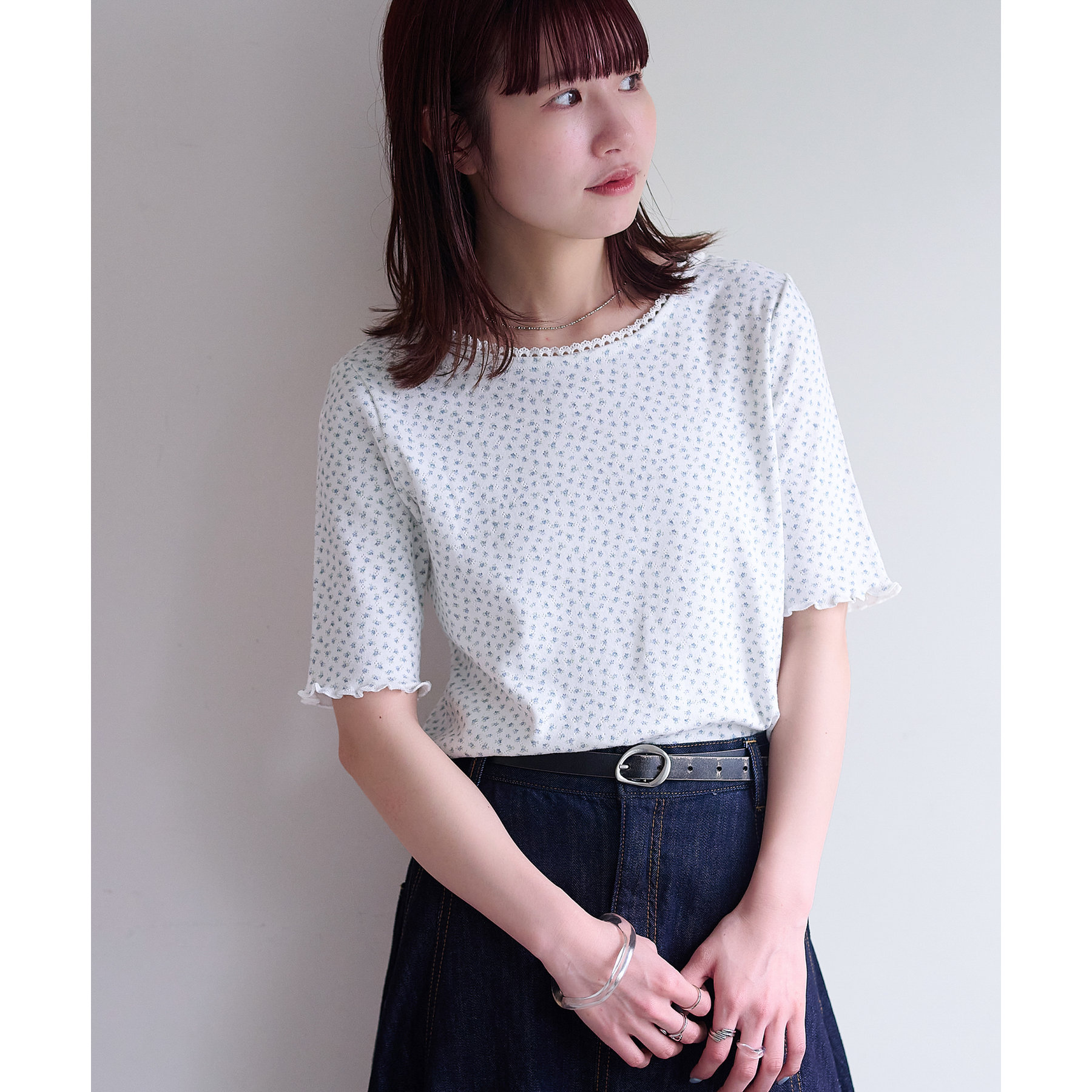 小花柄トップスでガーリー感をプラス