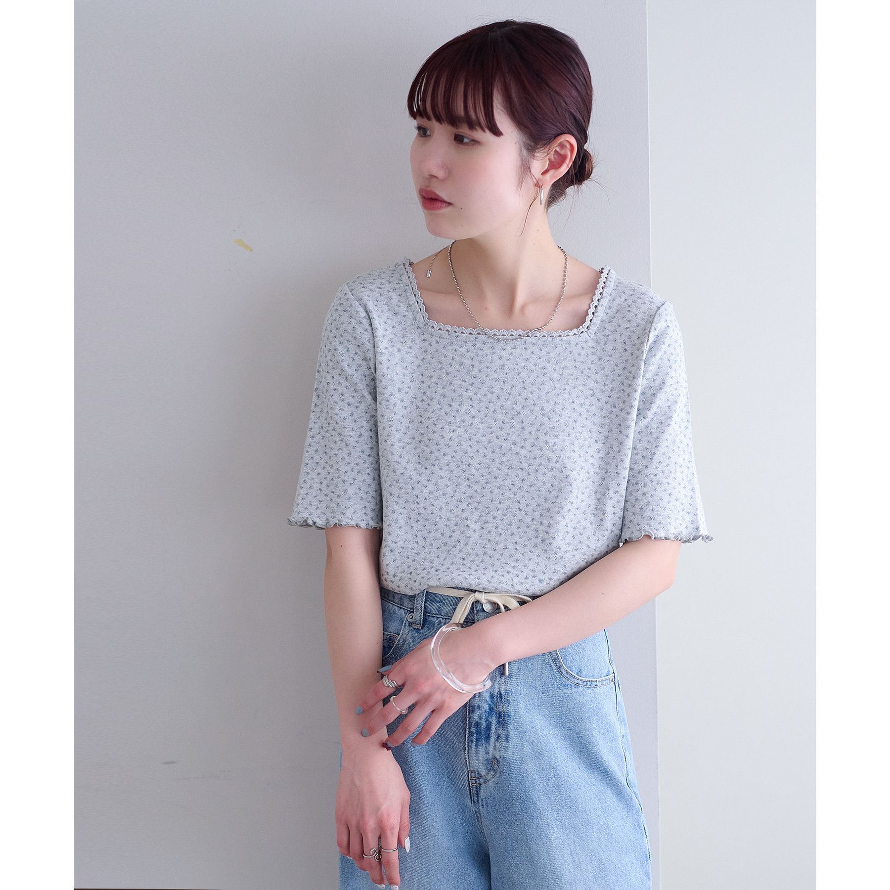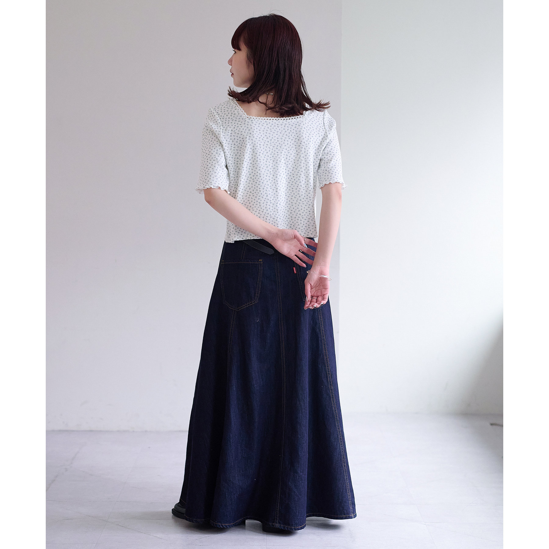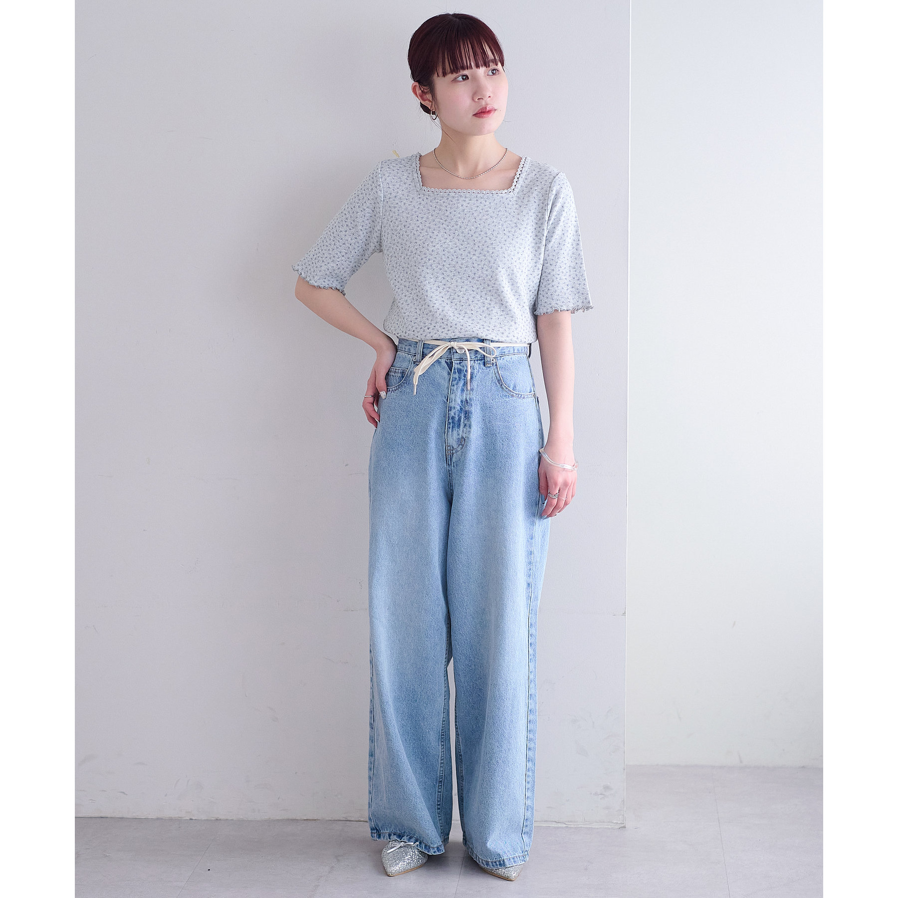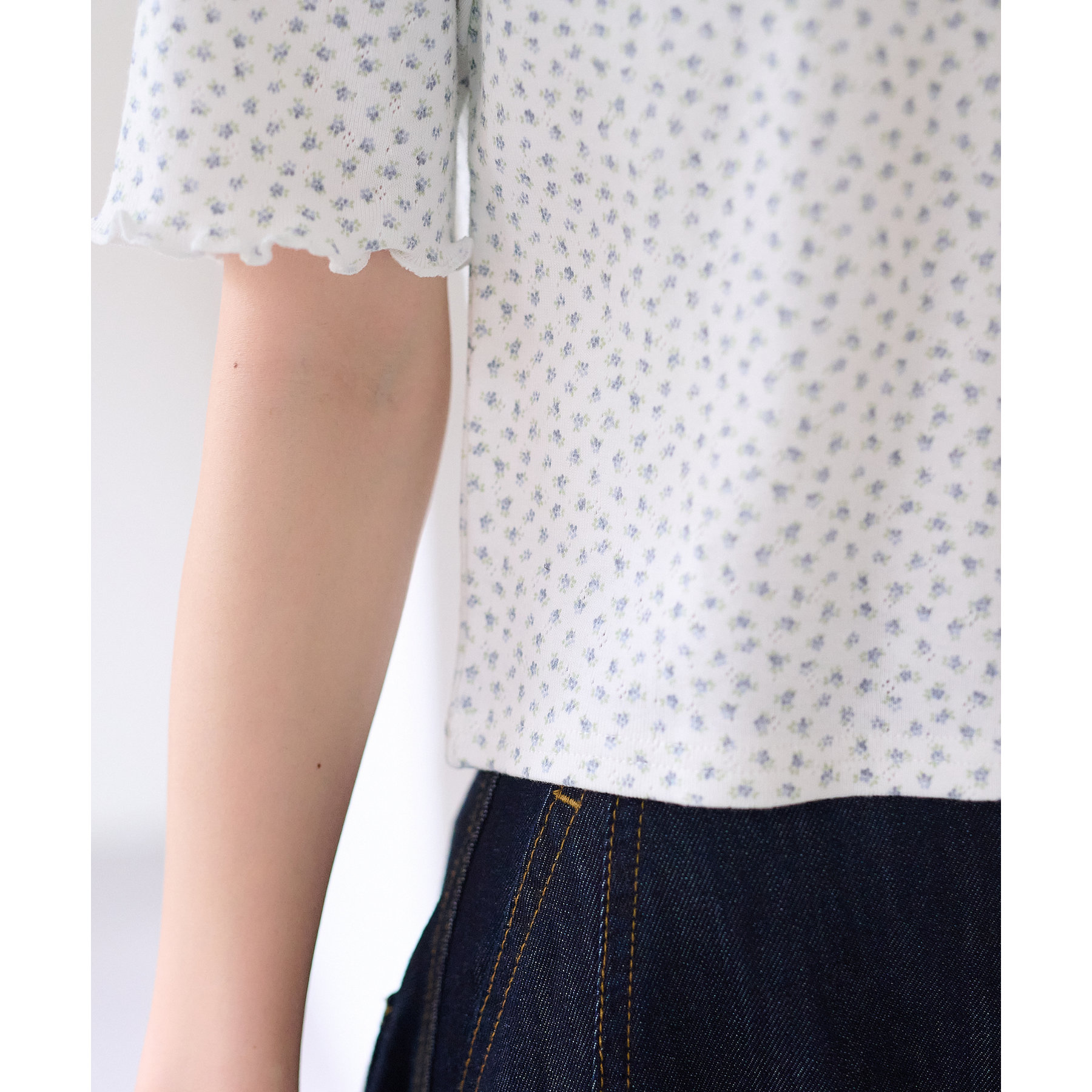 小花柄トップスでガーリー感をプラス