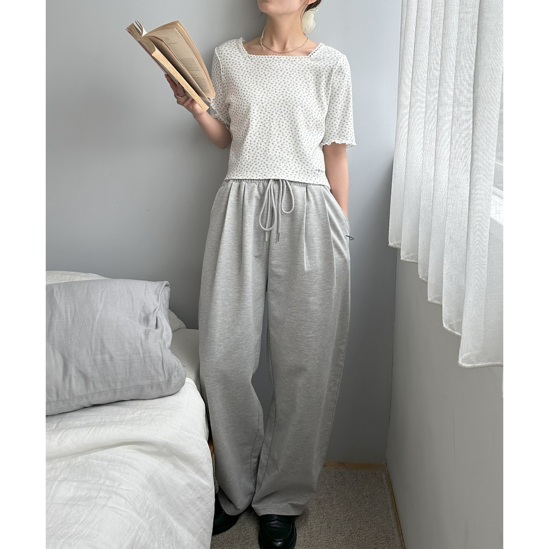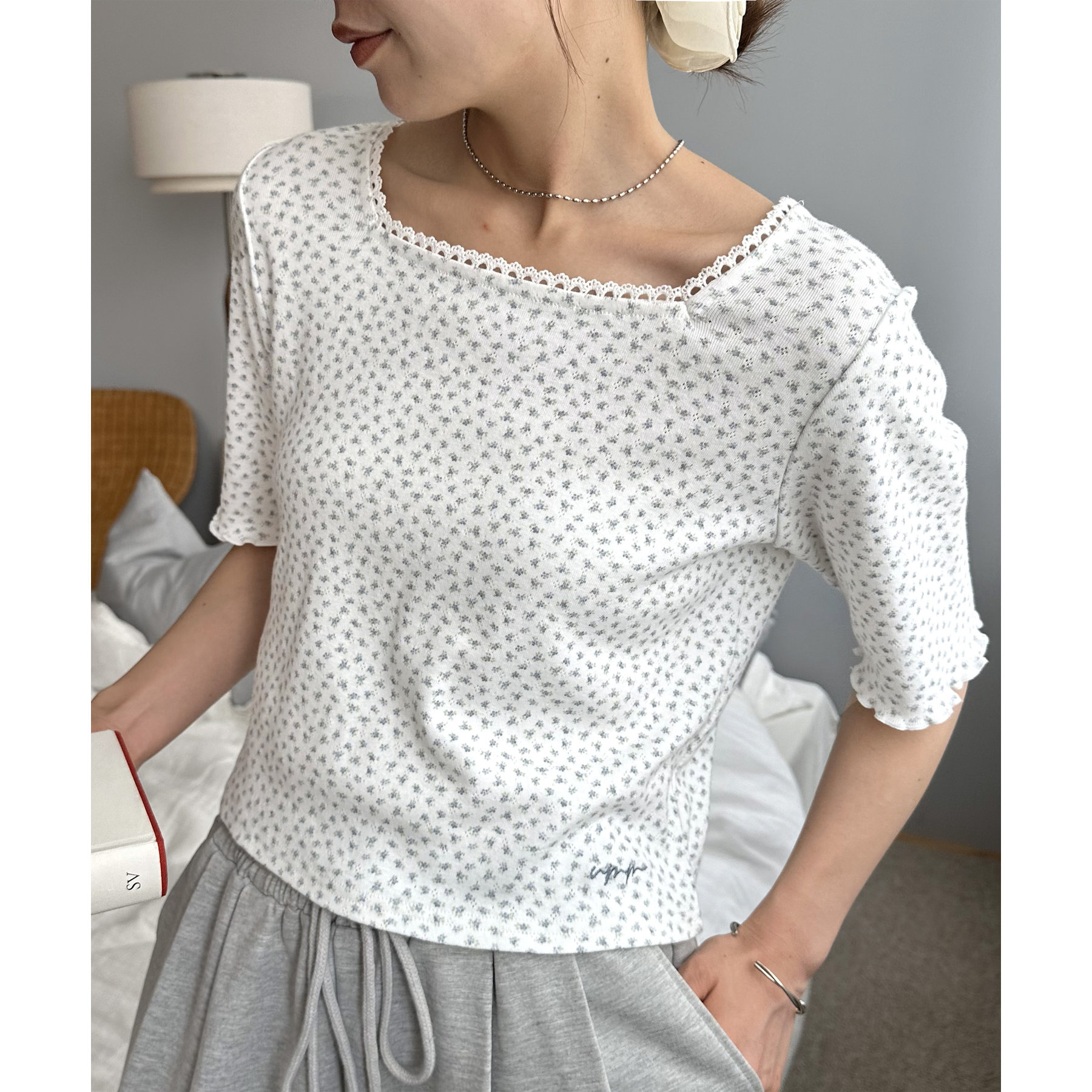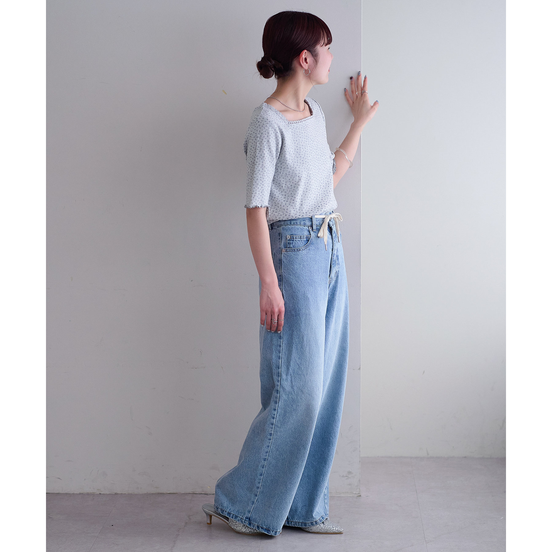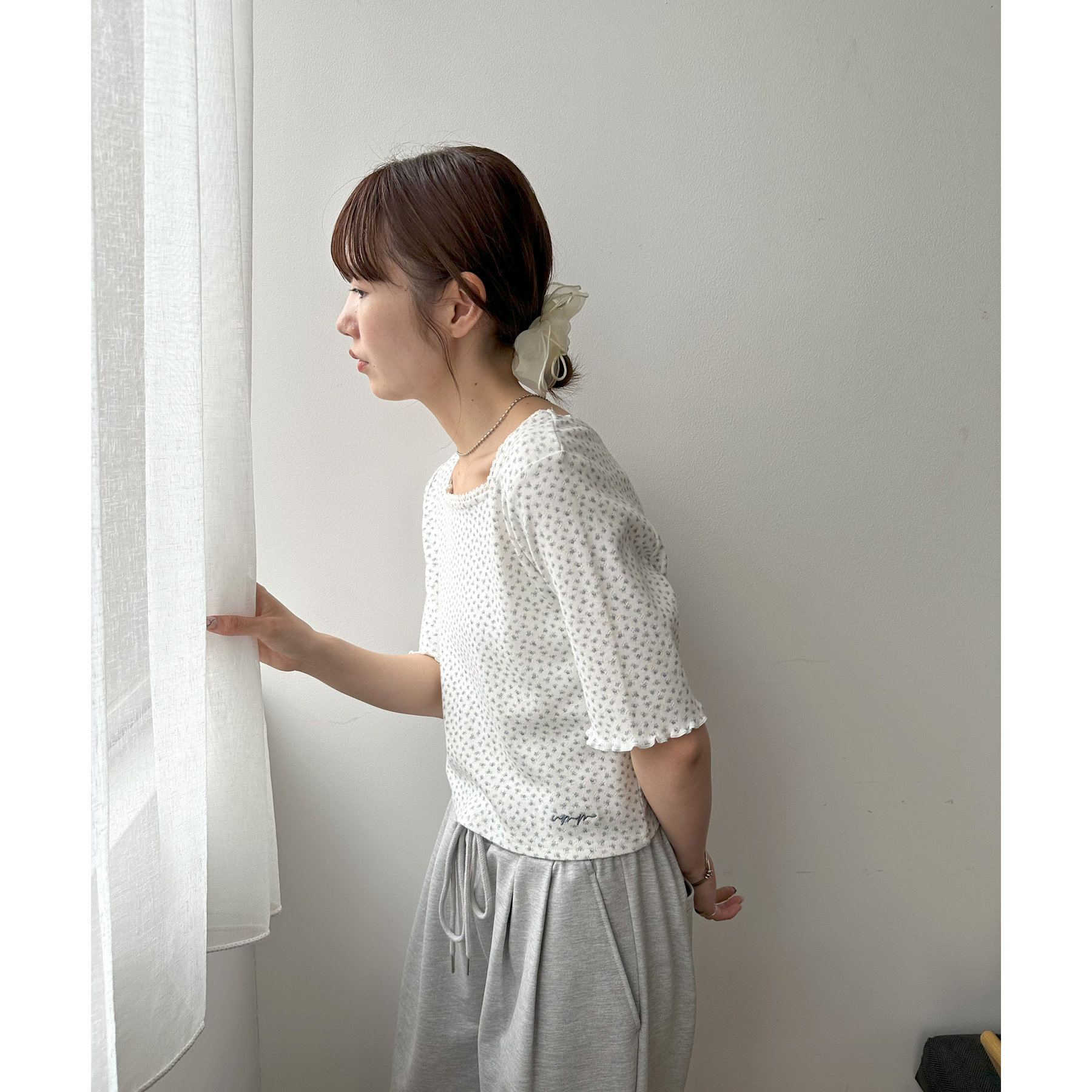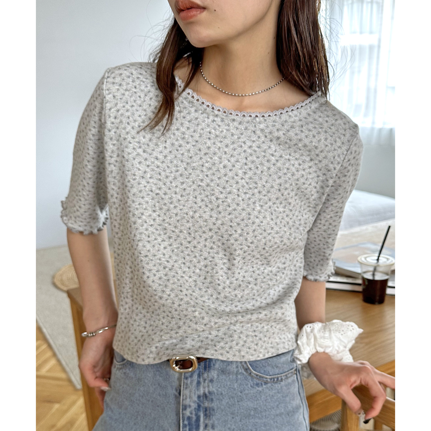 小花柄トップスでガーリー感をプラス