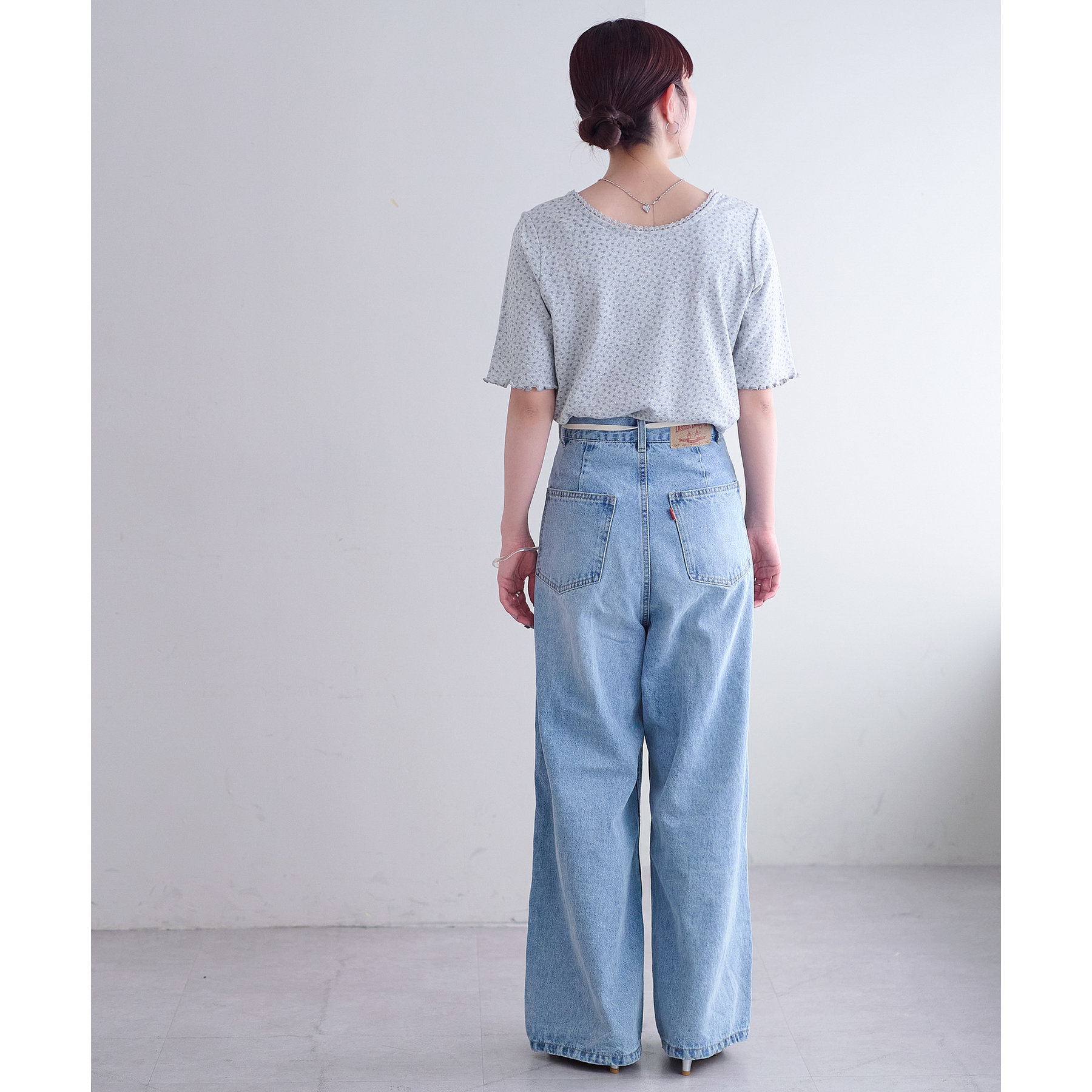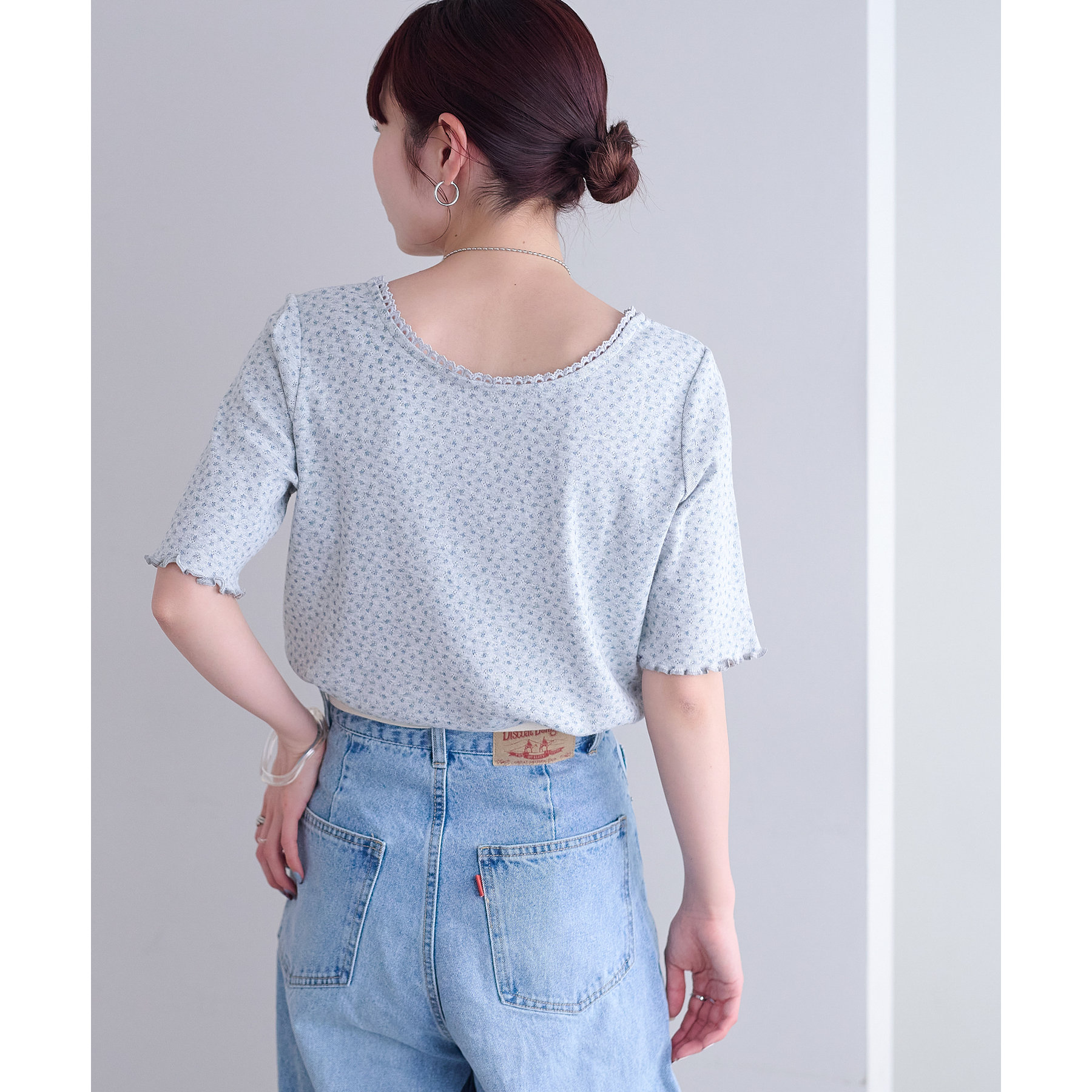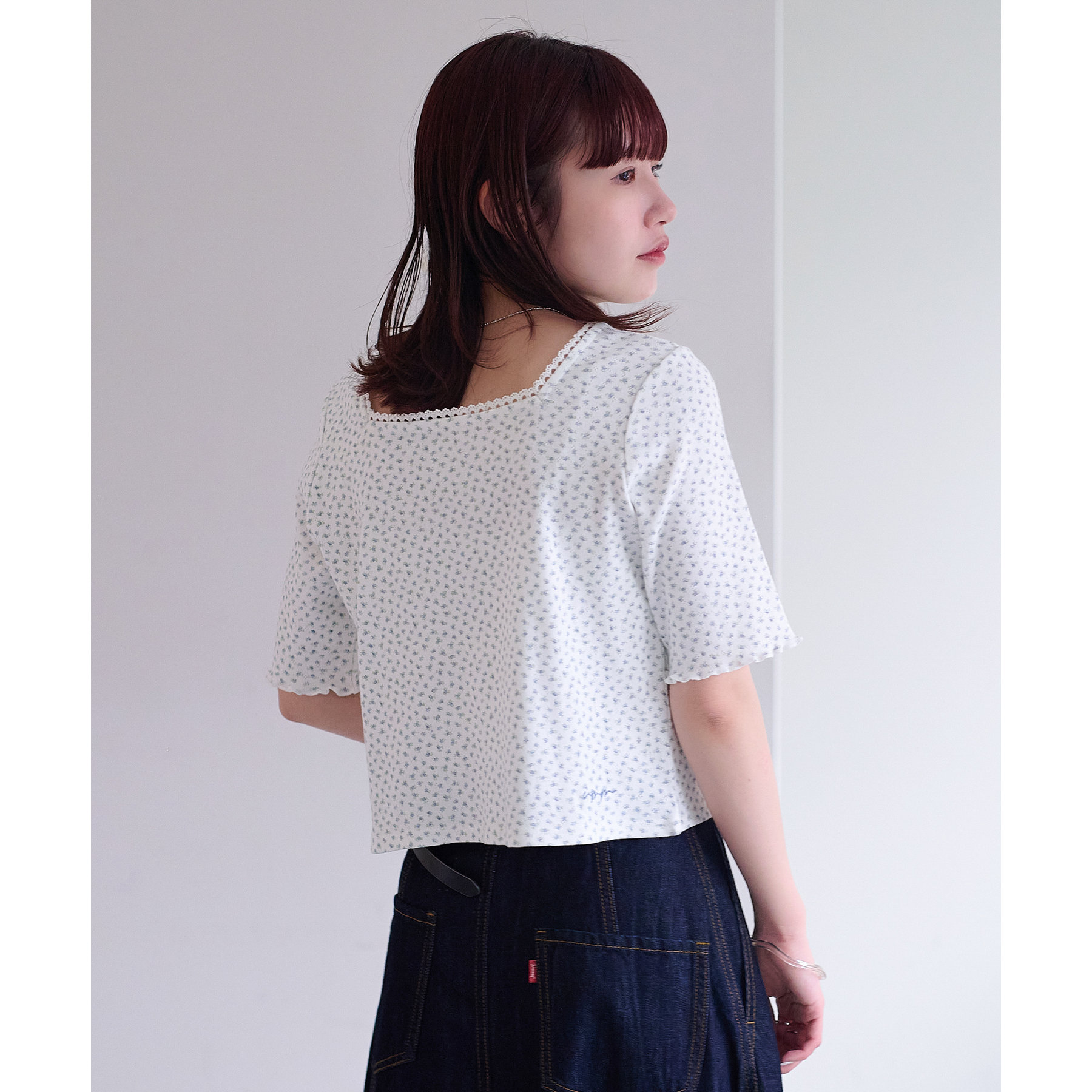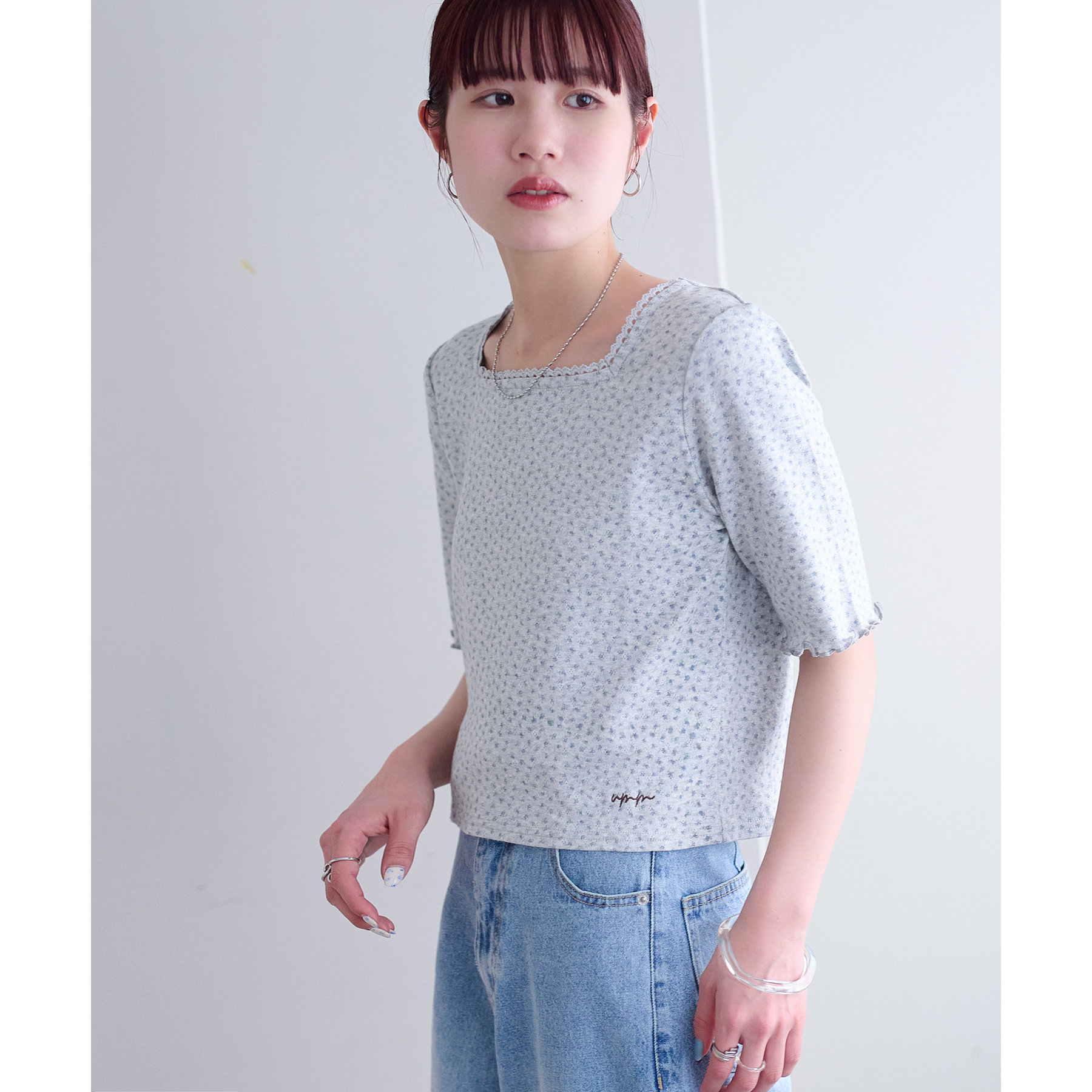 【umm.】小花柄刺繍ロゴTシャツ《前後2WAY》