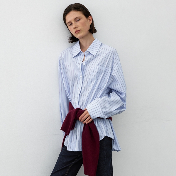 (Z-BL-4367)ESSENTIAL COTTON STRIPE RELAXED SHIRT