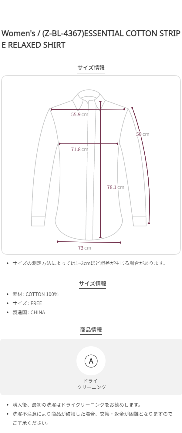 エッセンシャルラインのオーバーサイズ・ストライプコットンシャツです。