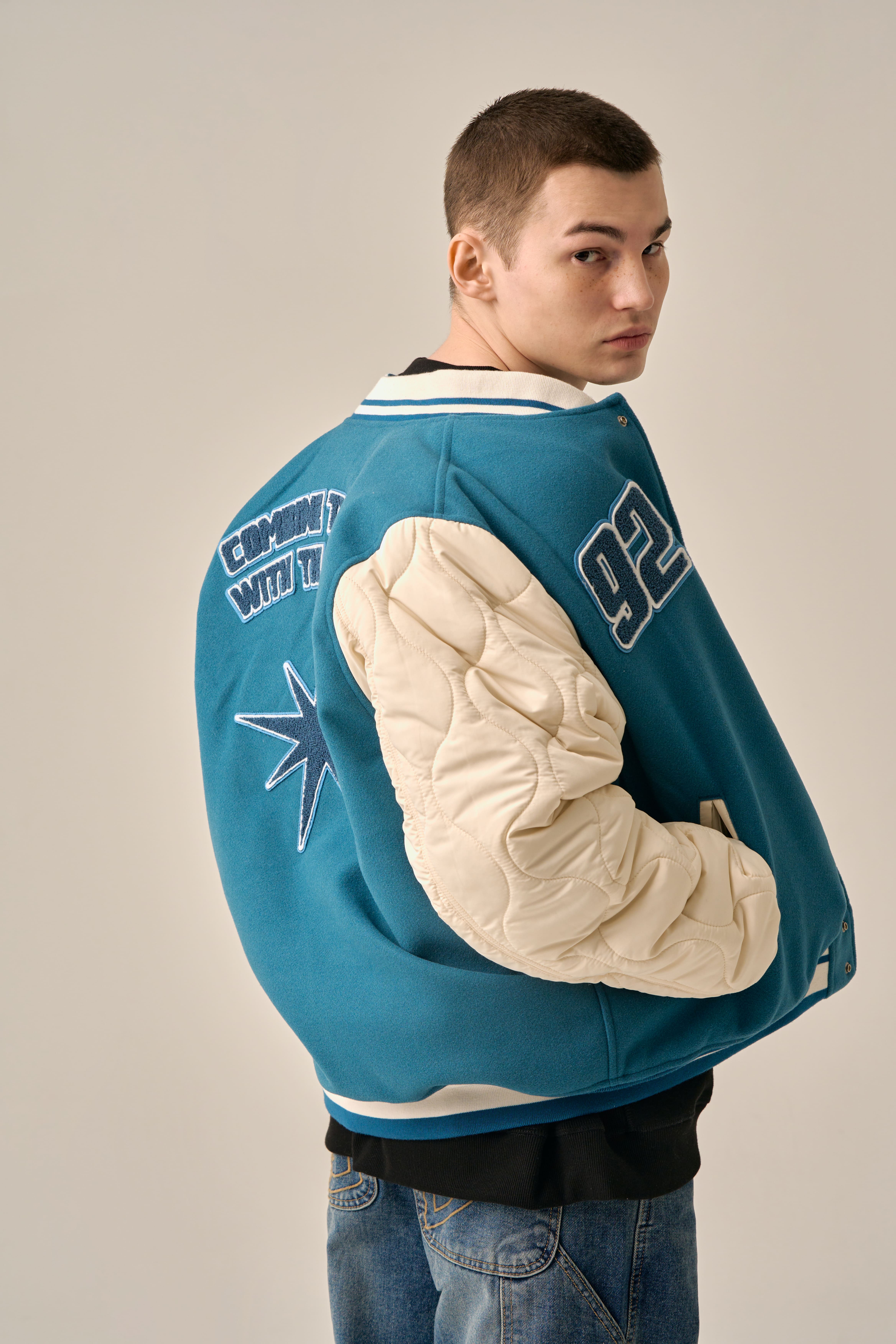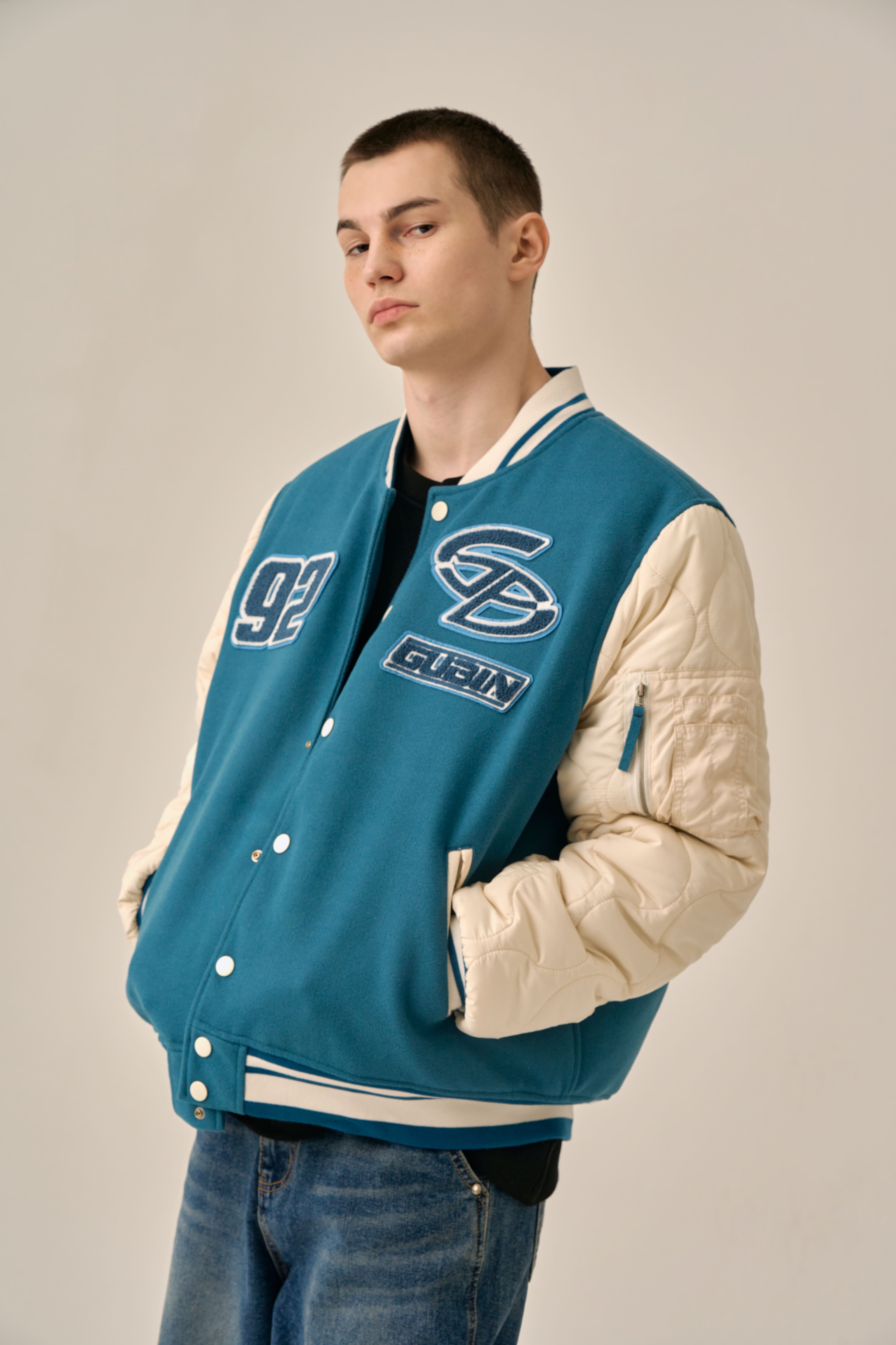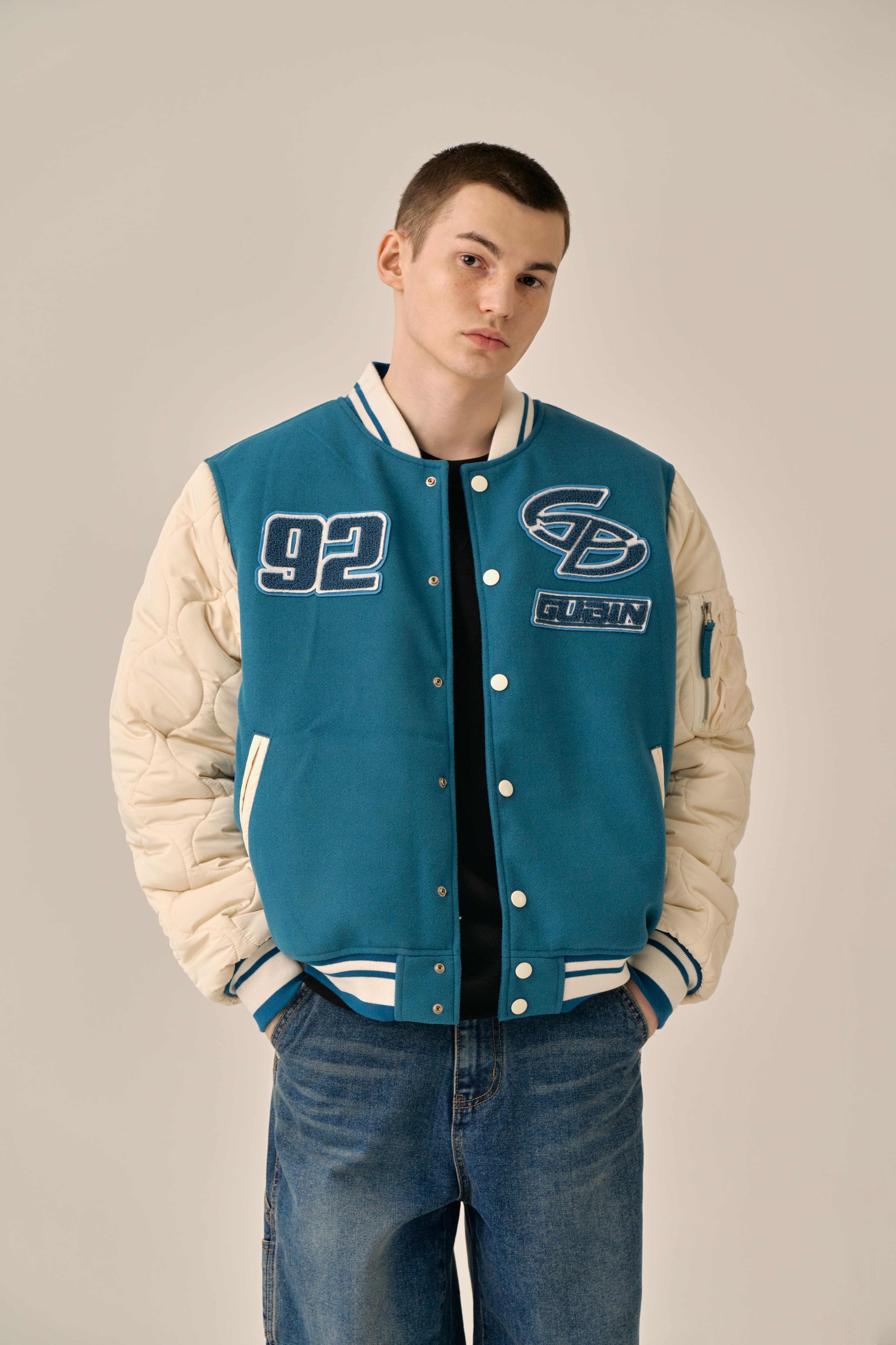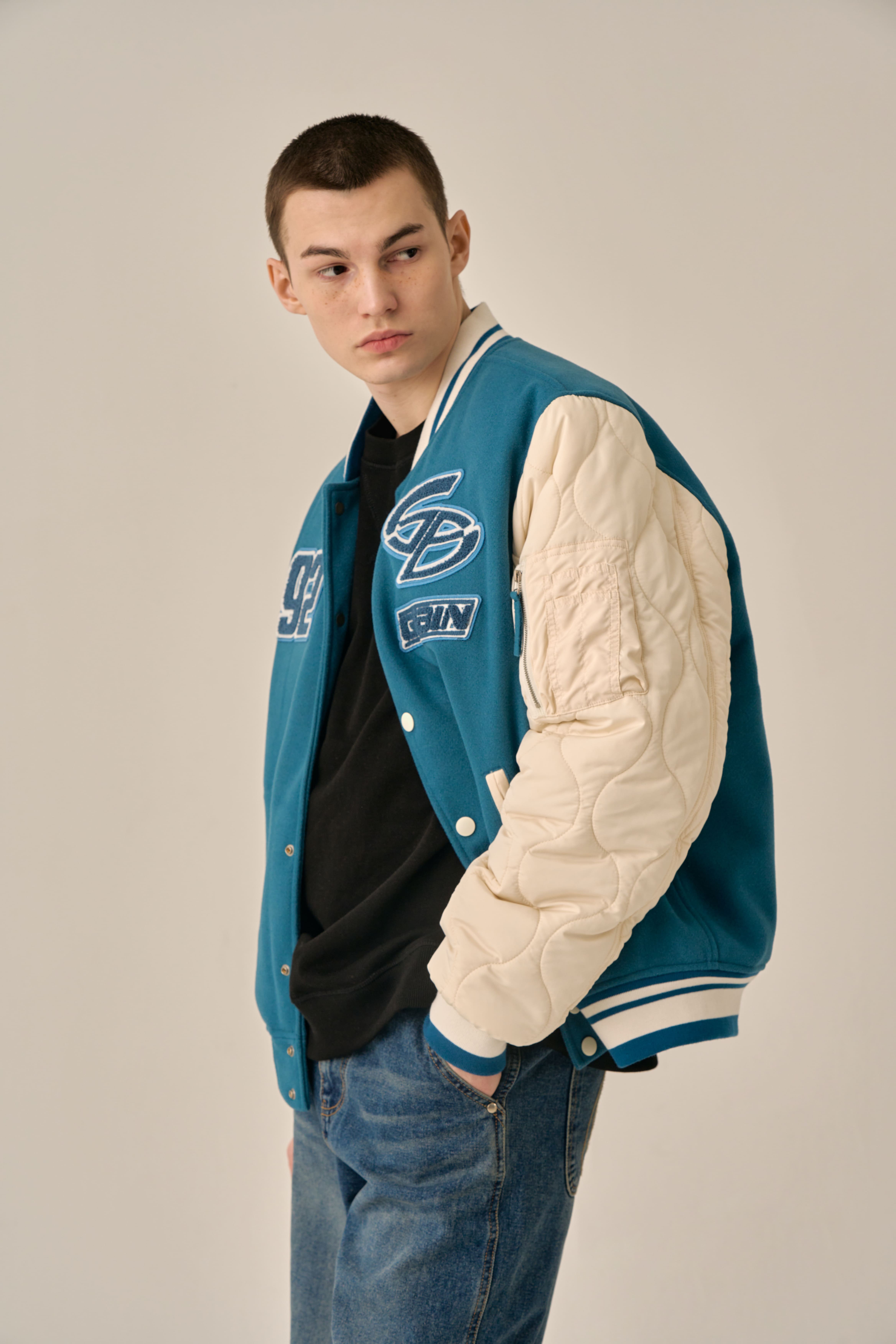 QUILTING POINT VARSITY JACKET - BLUE
