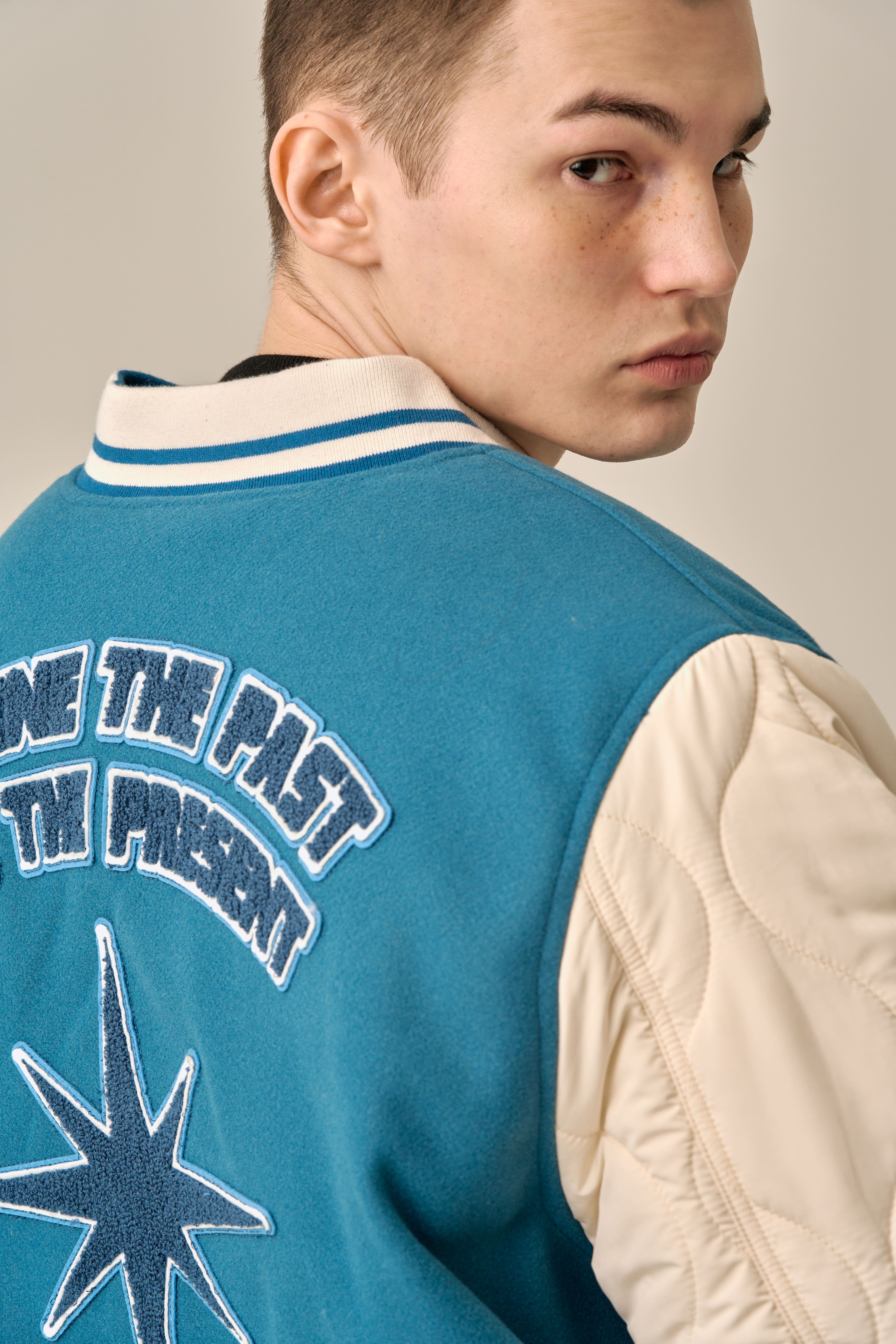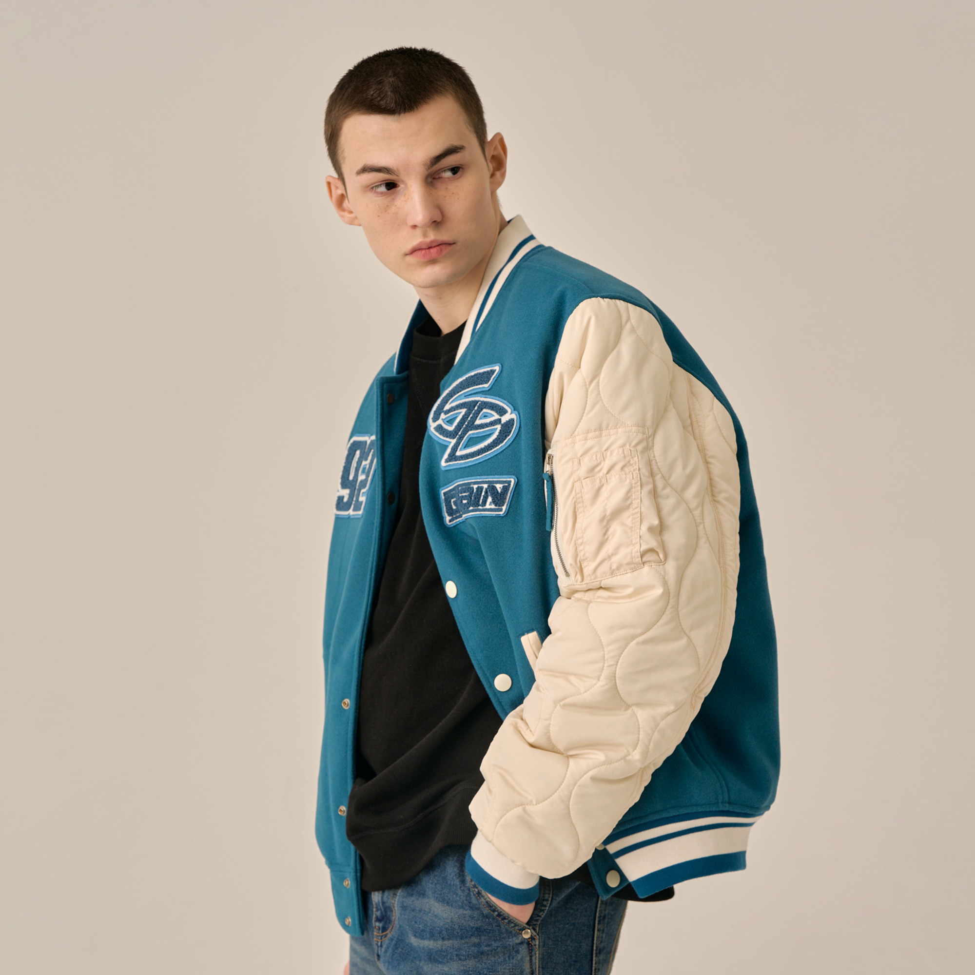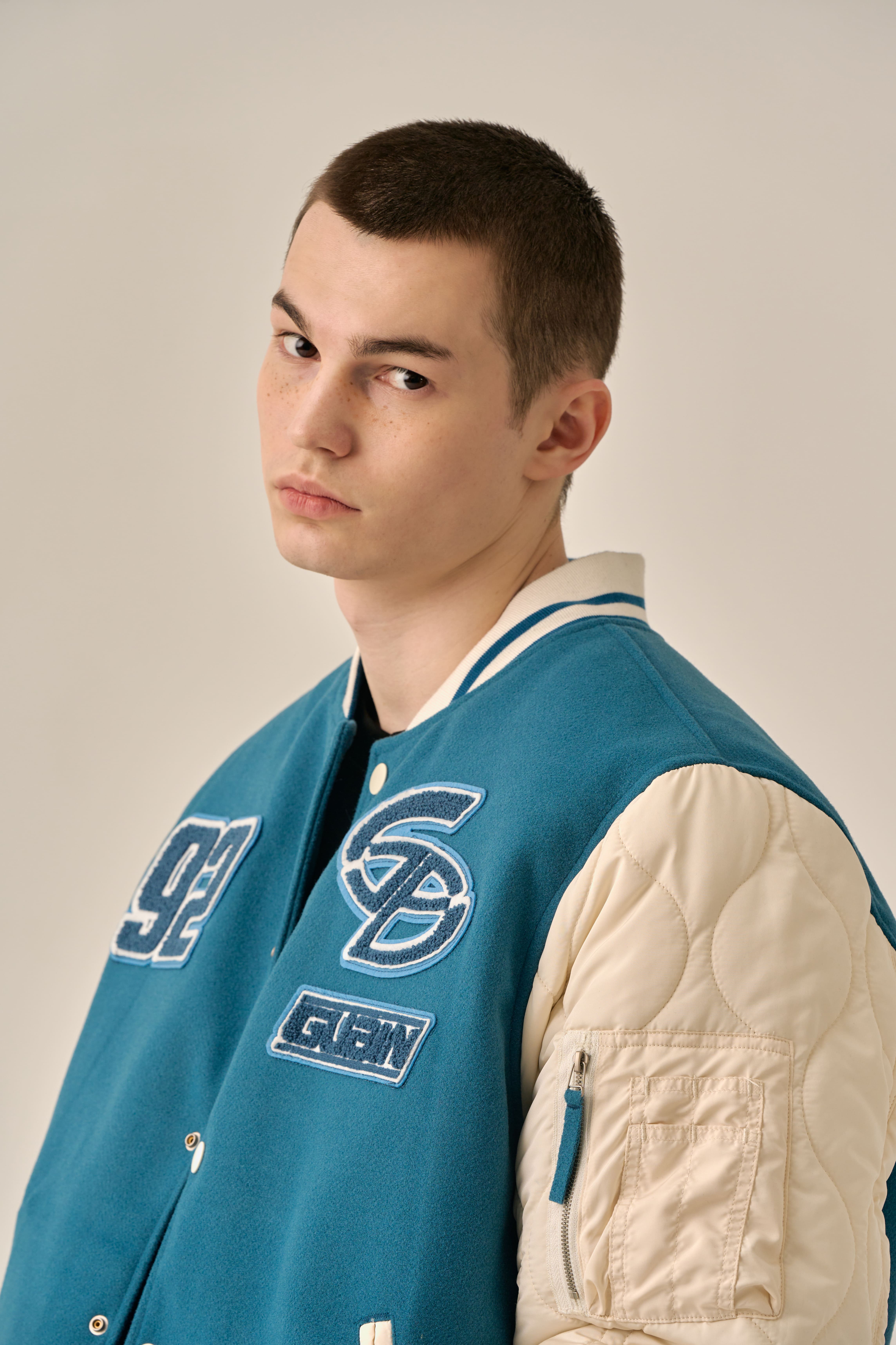 QUILTING POINT VARSITY JACKET - BLUE