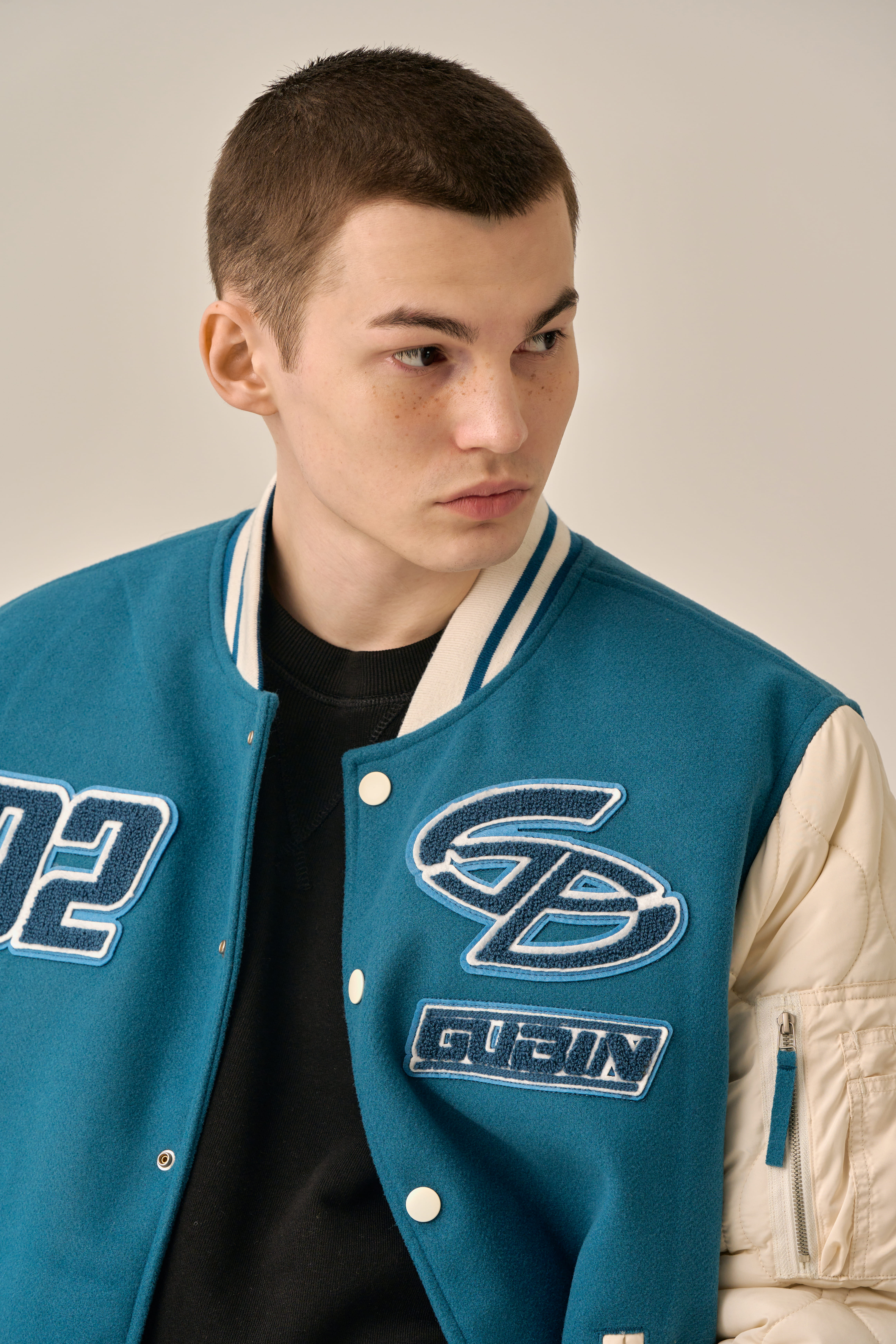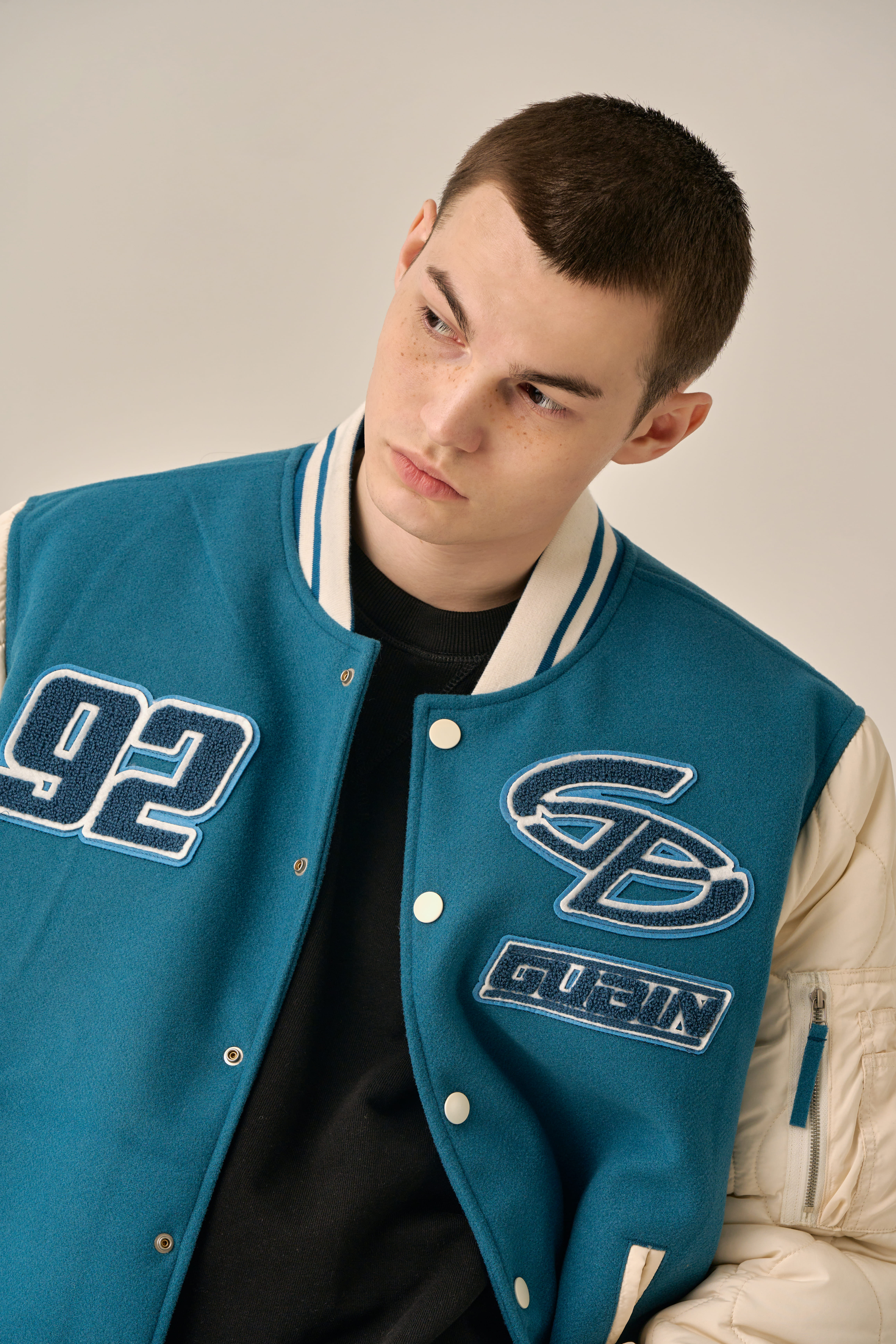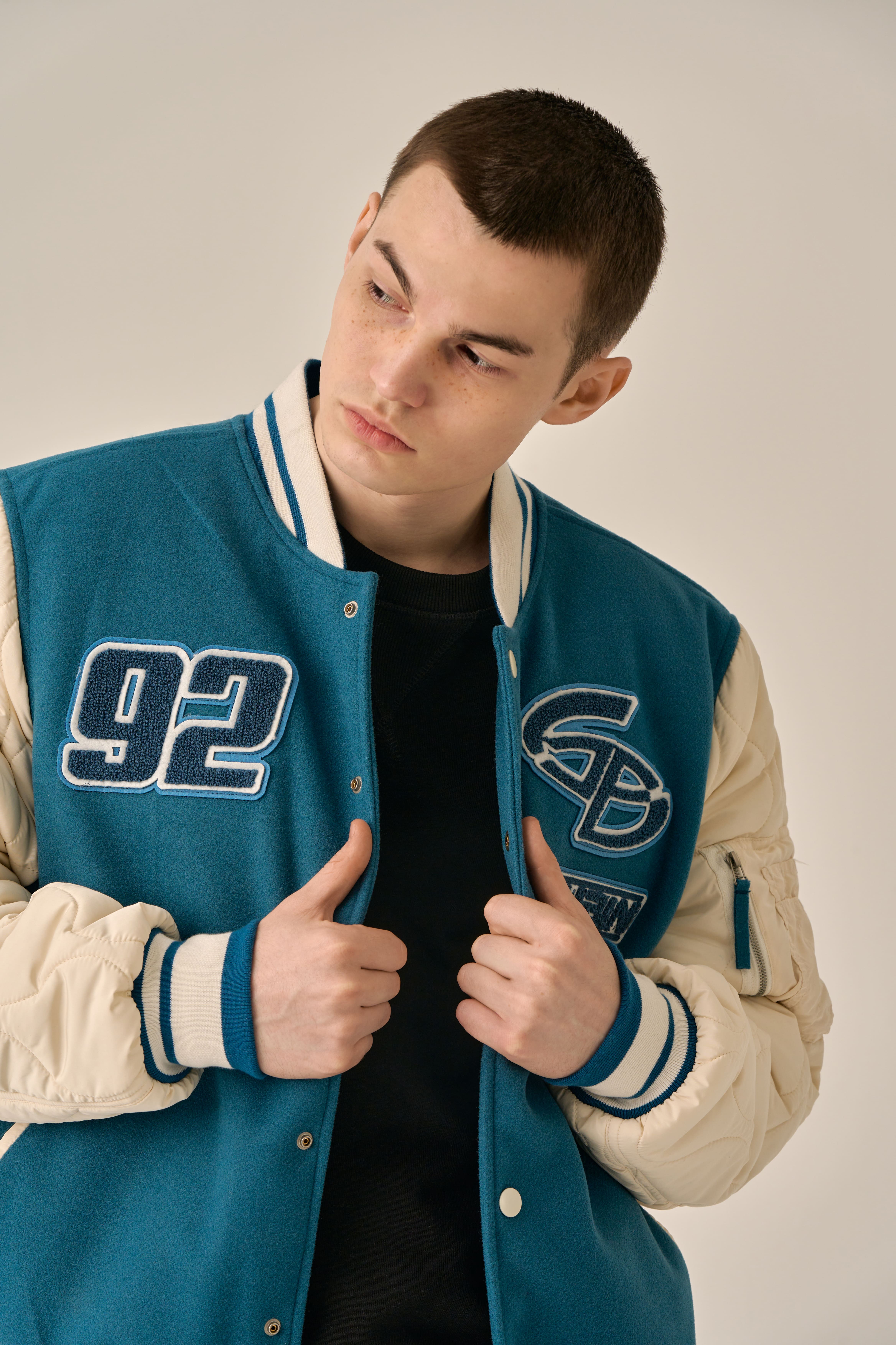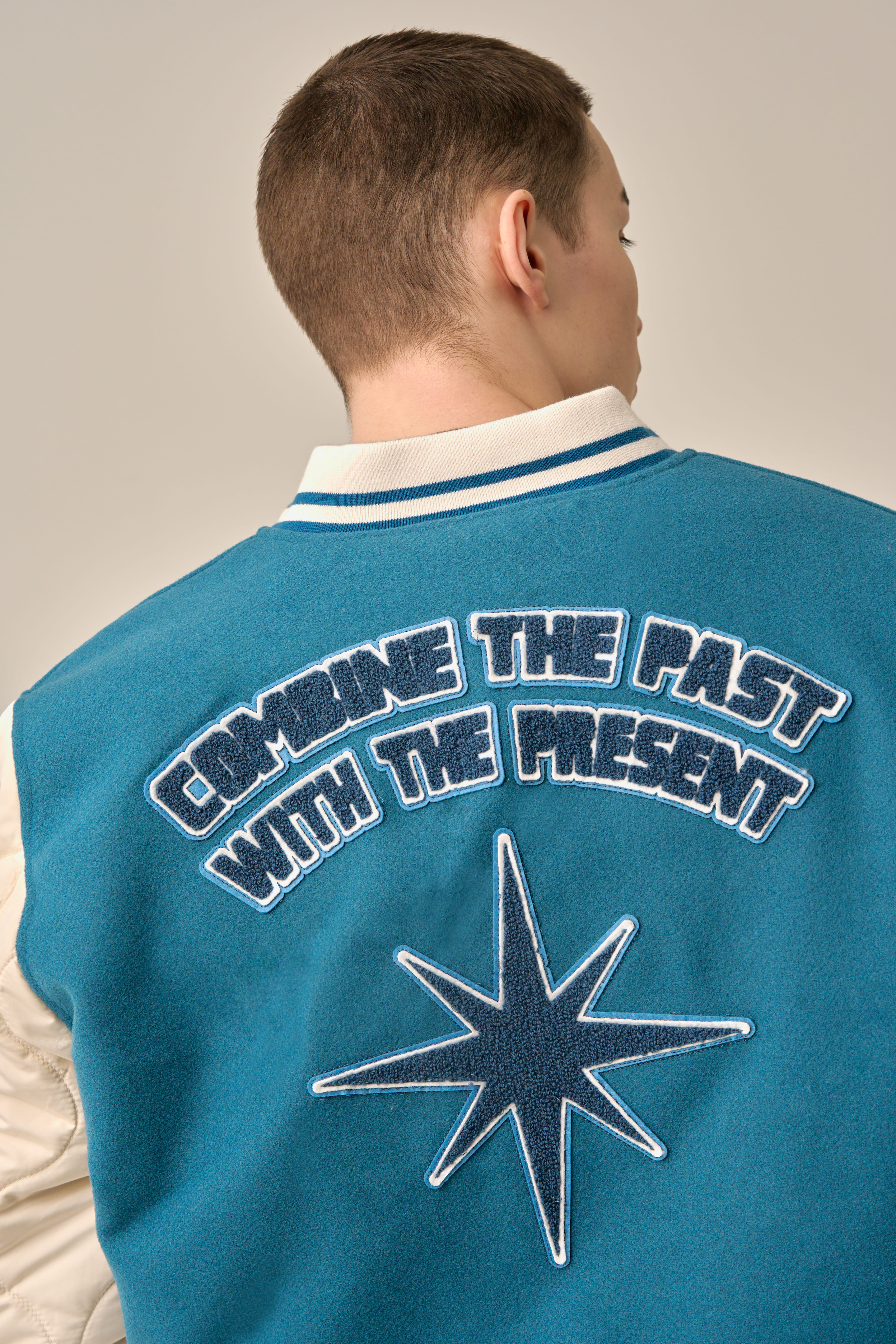 QUILTING POINT VARSITY JACKET - BLUE