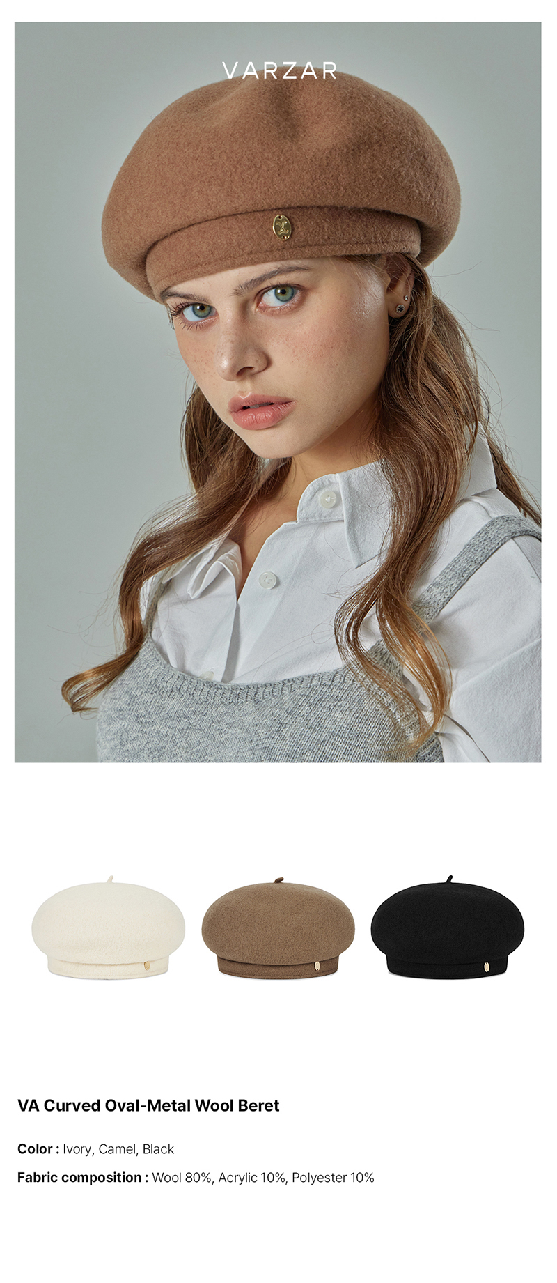 VA Oval-Metal Wool Beret Camel