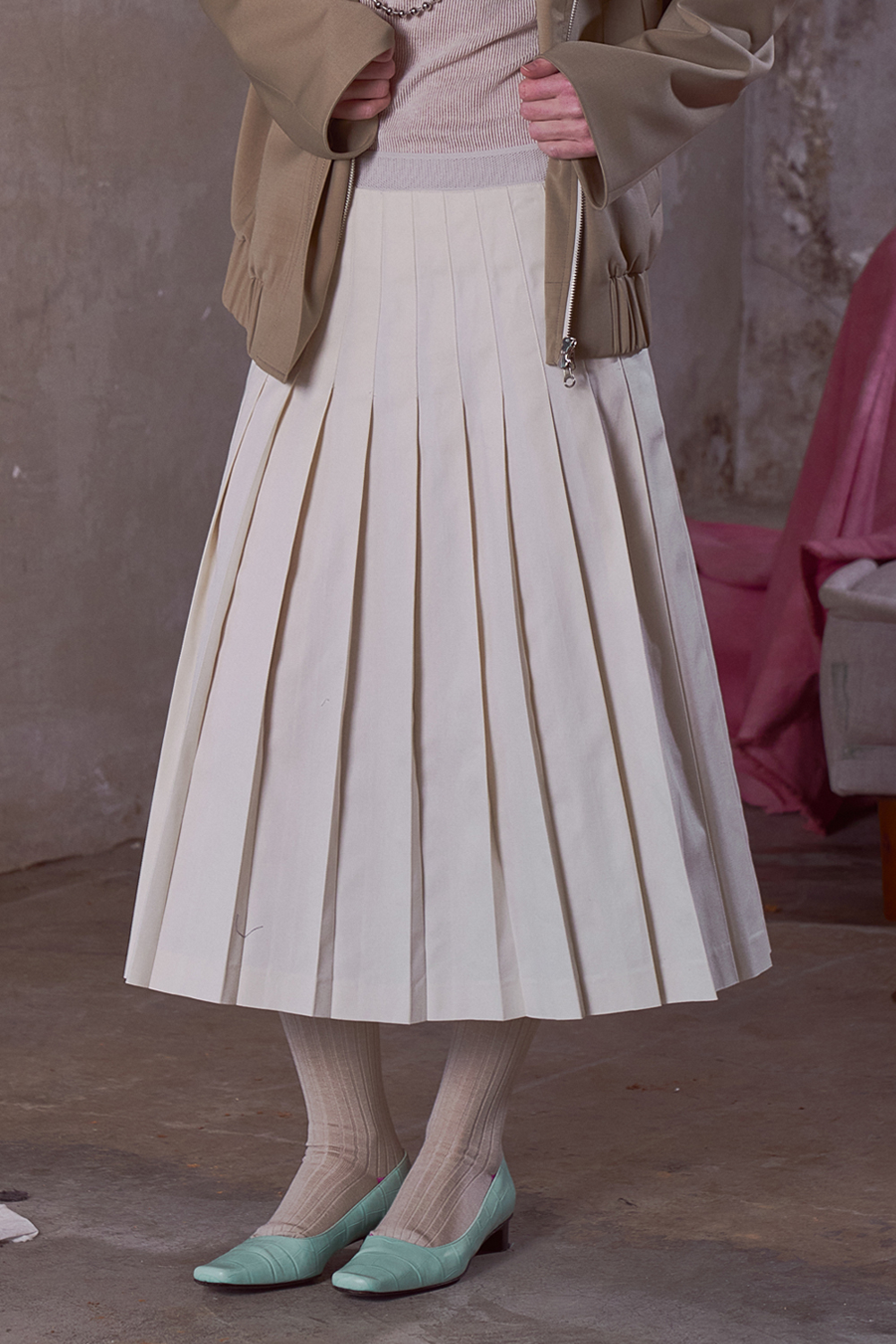 COTTON PLEATS SKIRT (IVORY)