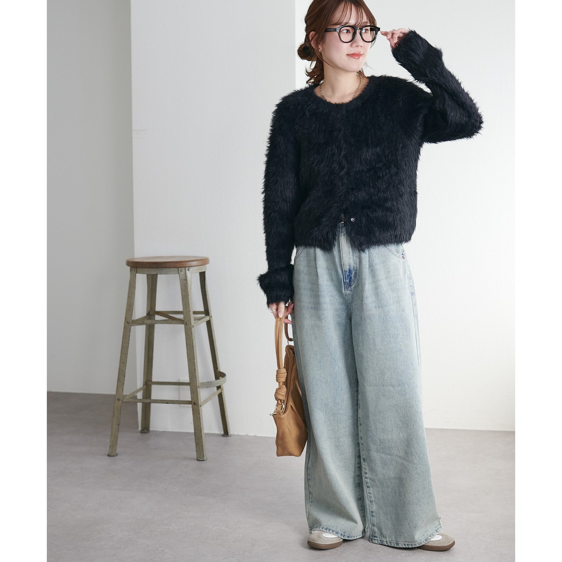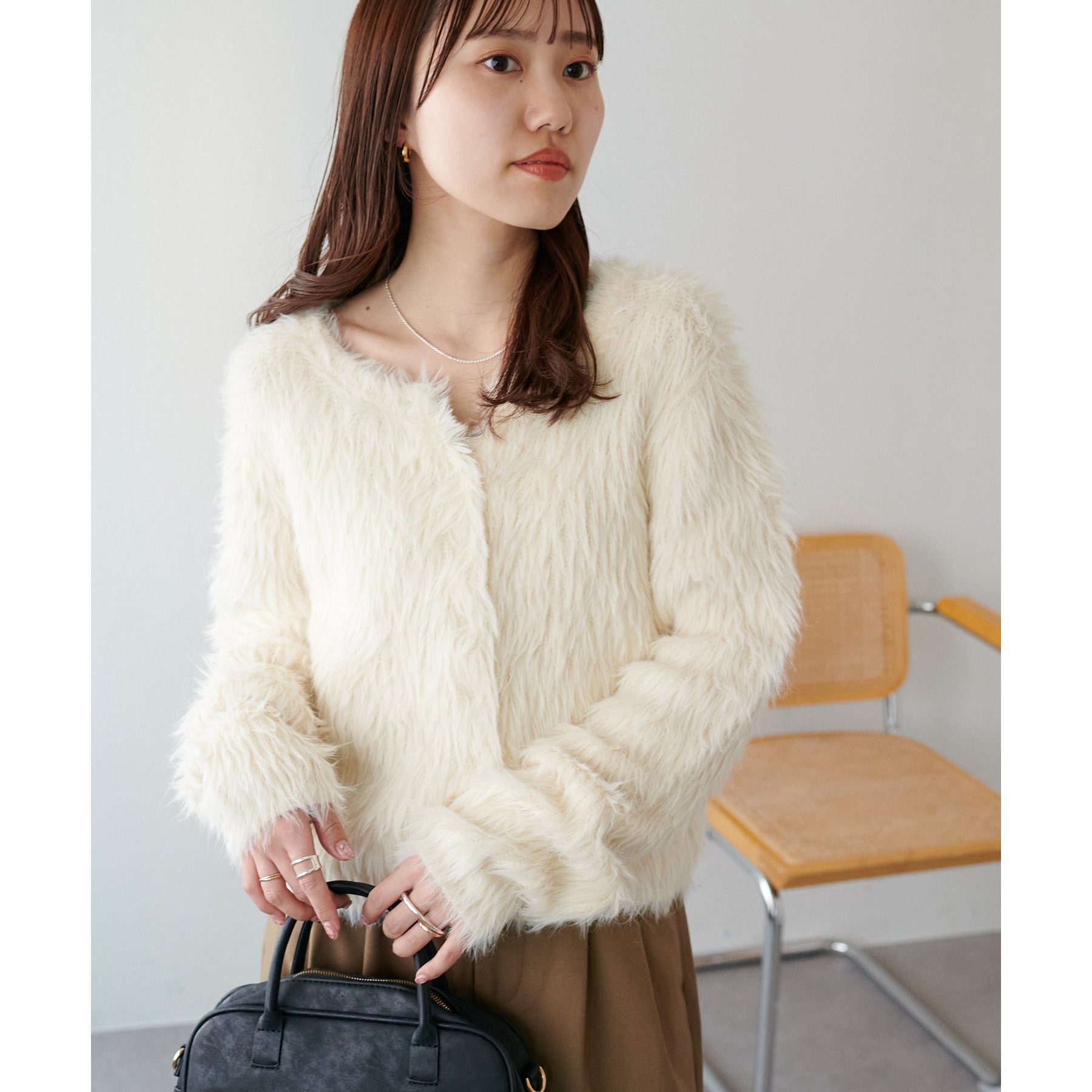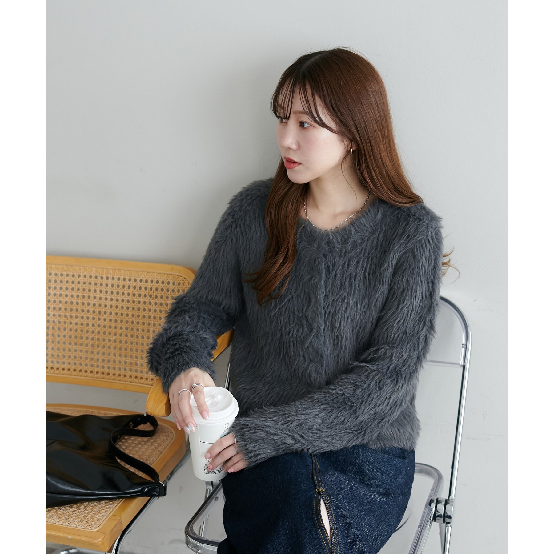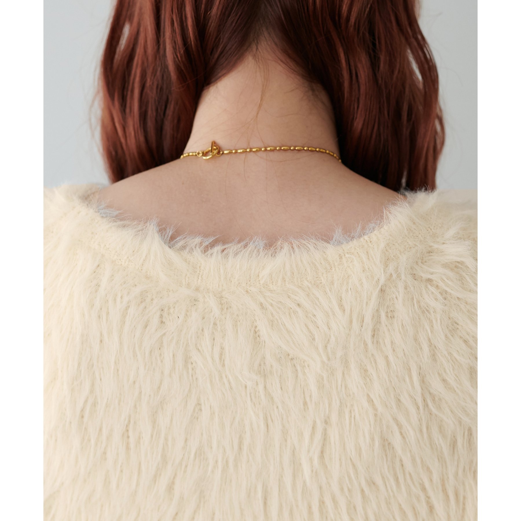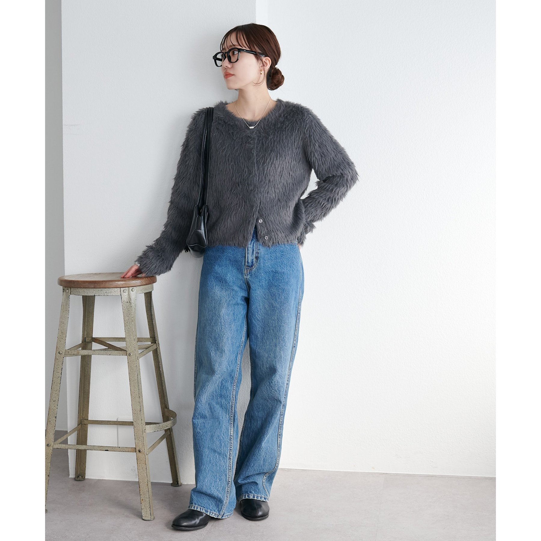 全体に毛足の長いロングフェザーヤーンを贅沢に使用した、ふんわりとした質感が魅力のカーディガン。