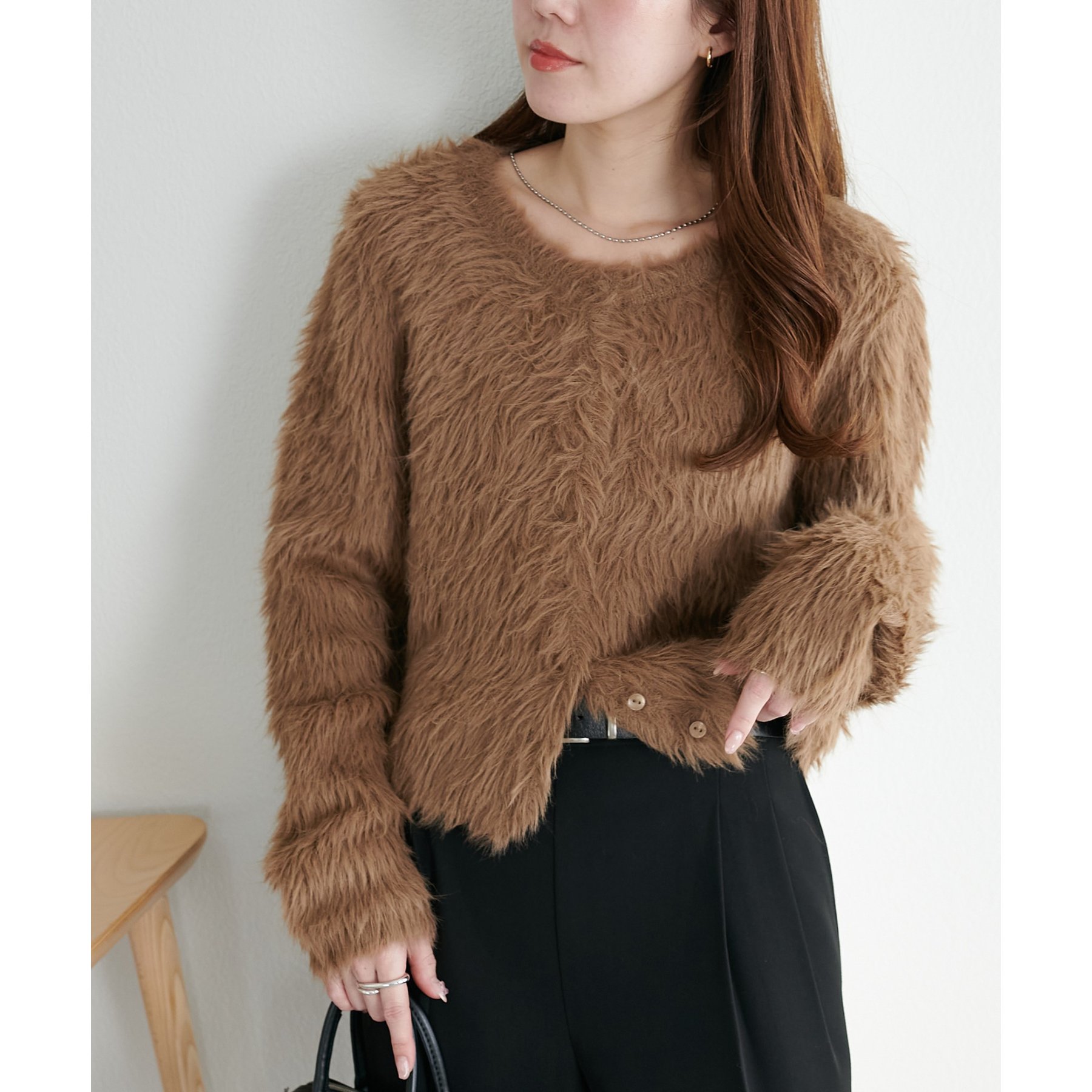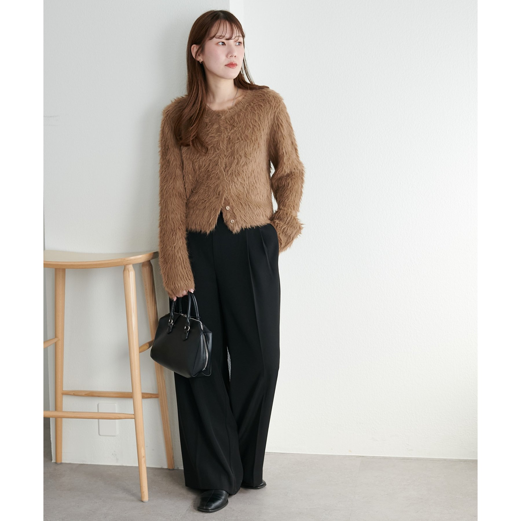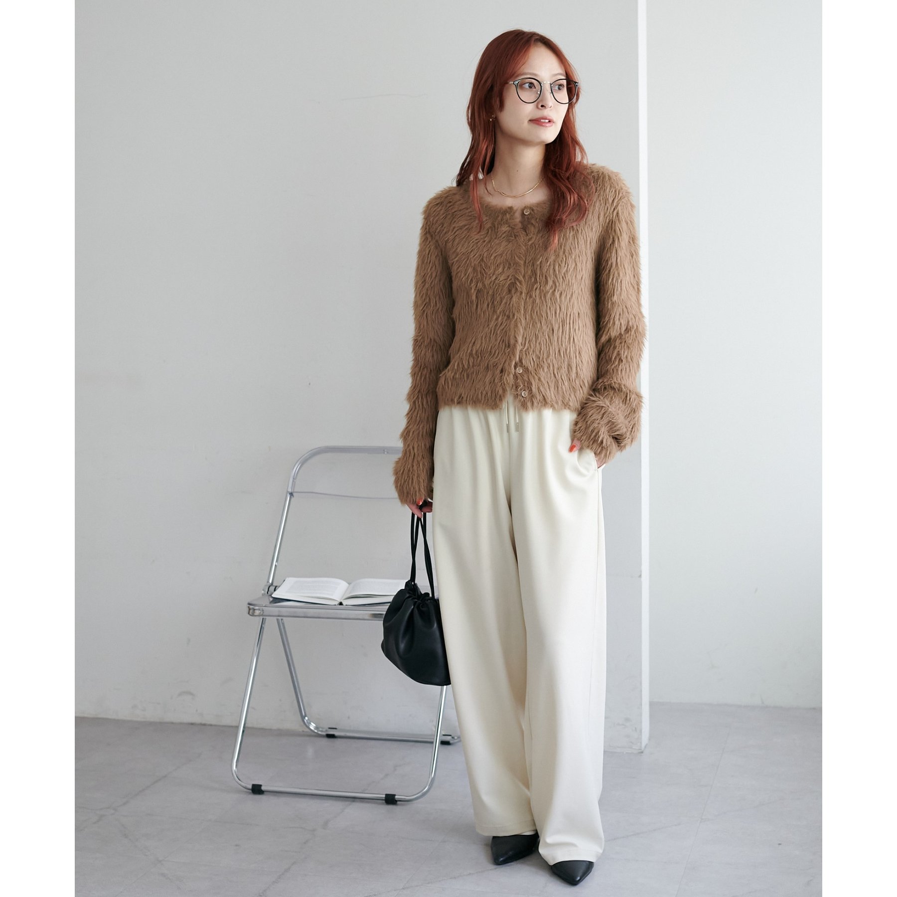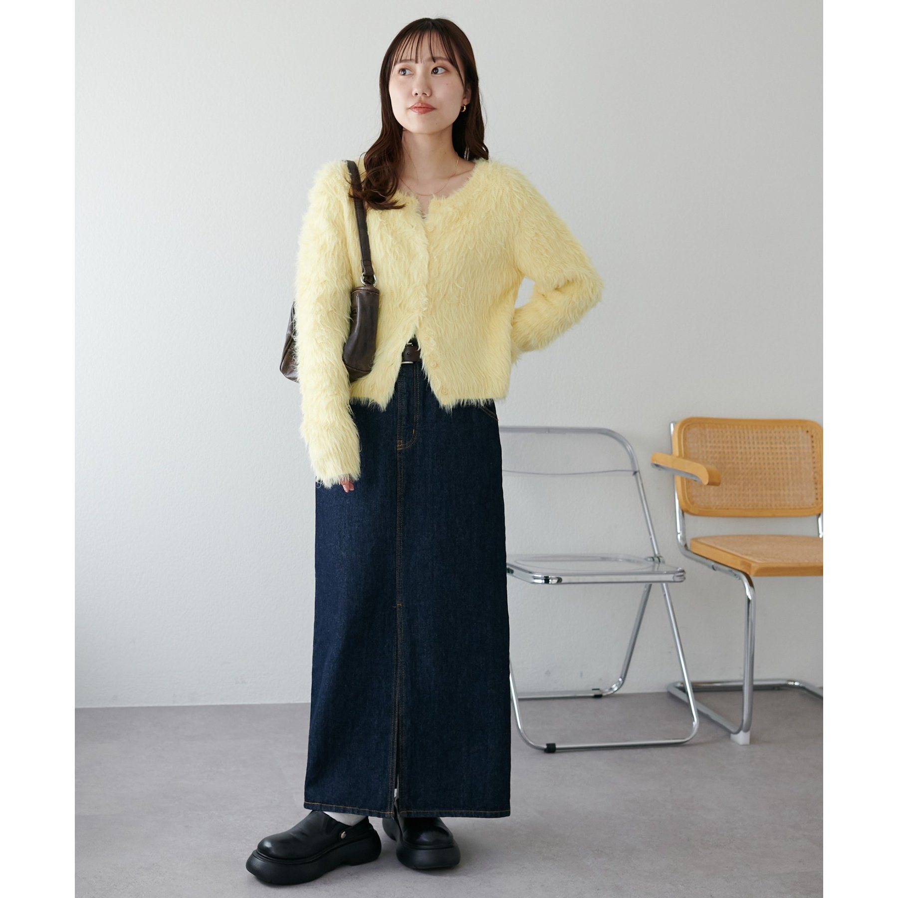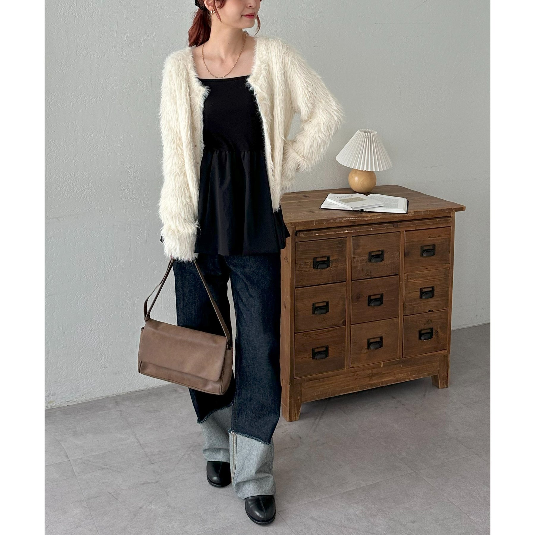 全体に毛足の長いロングフェザーヤーンを贅沢に使用した、ふんわりとした質感が魅力のカーディガン。