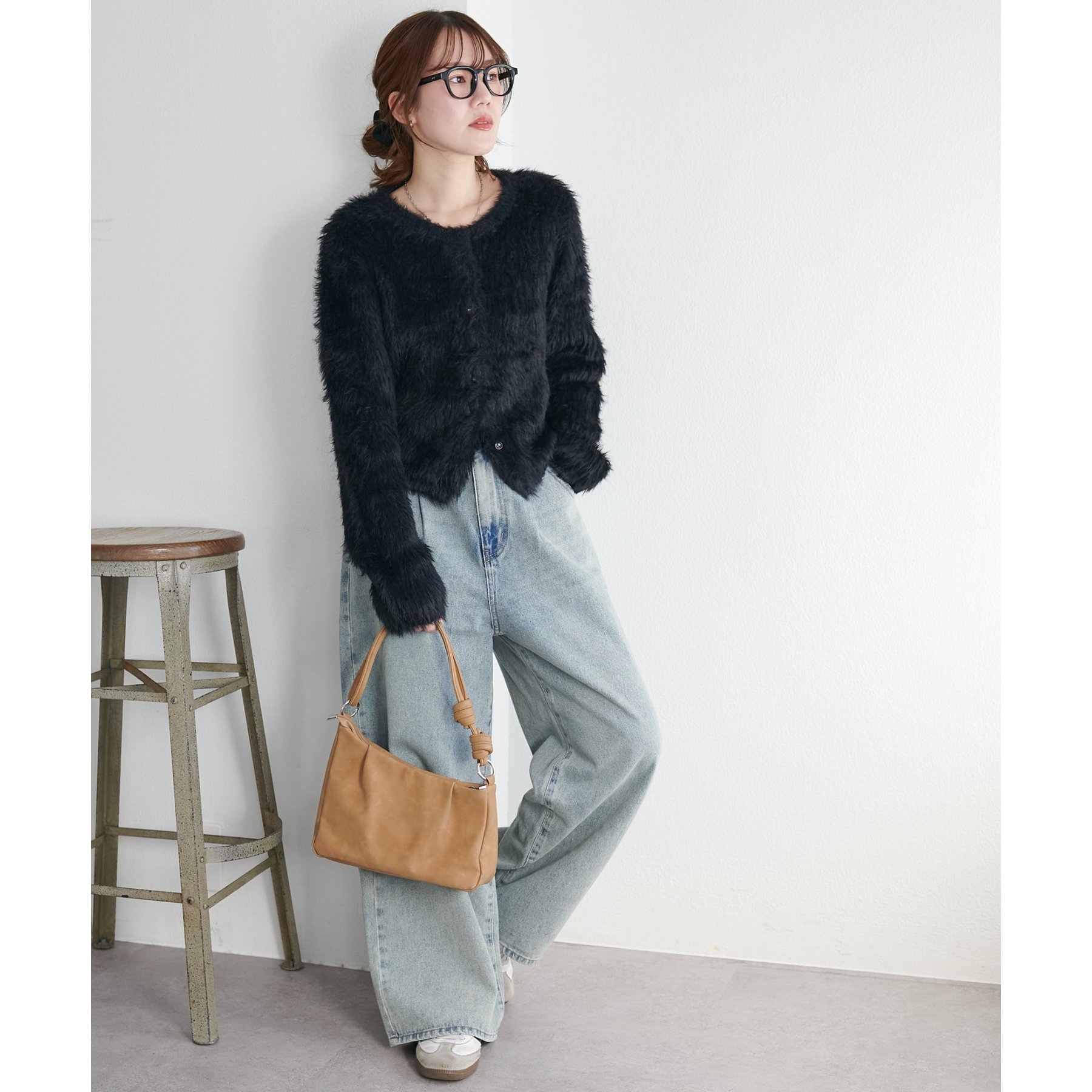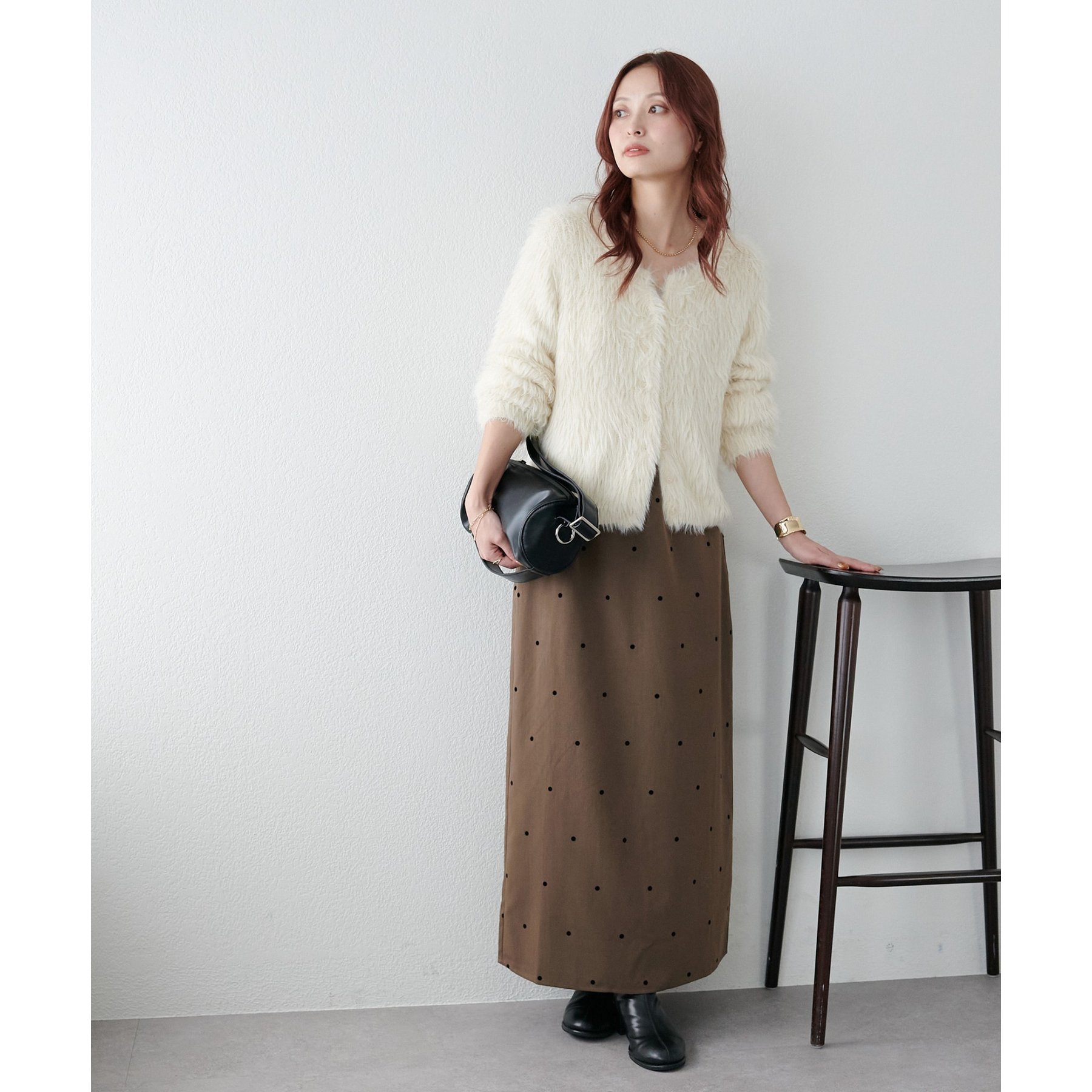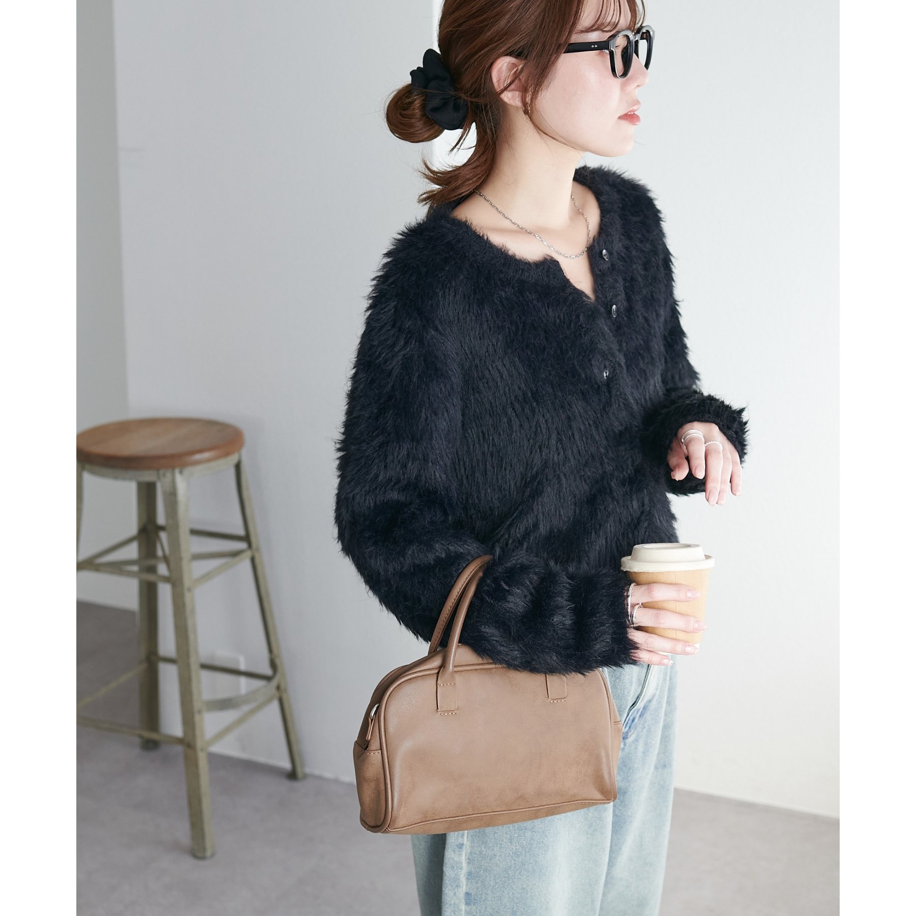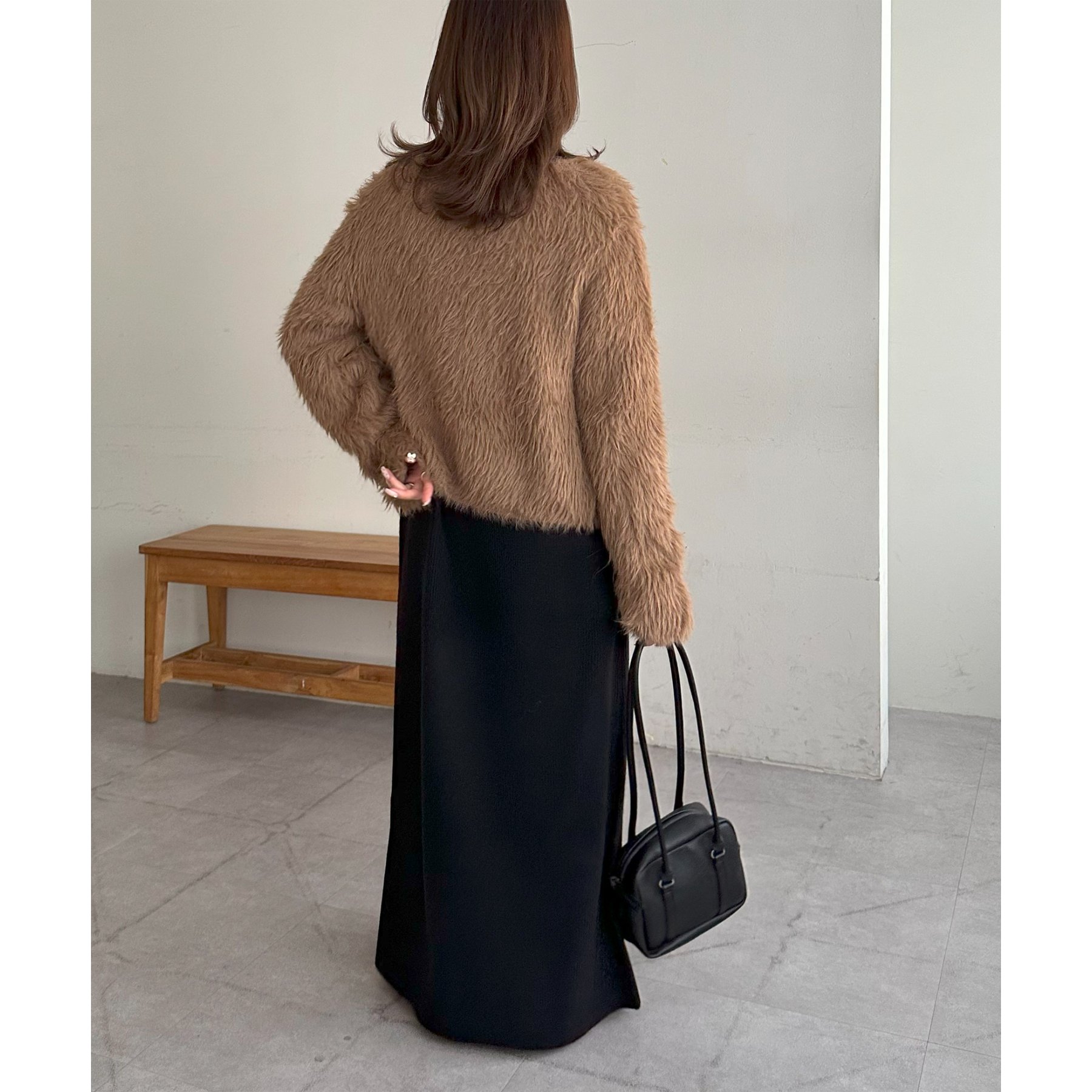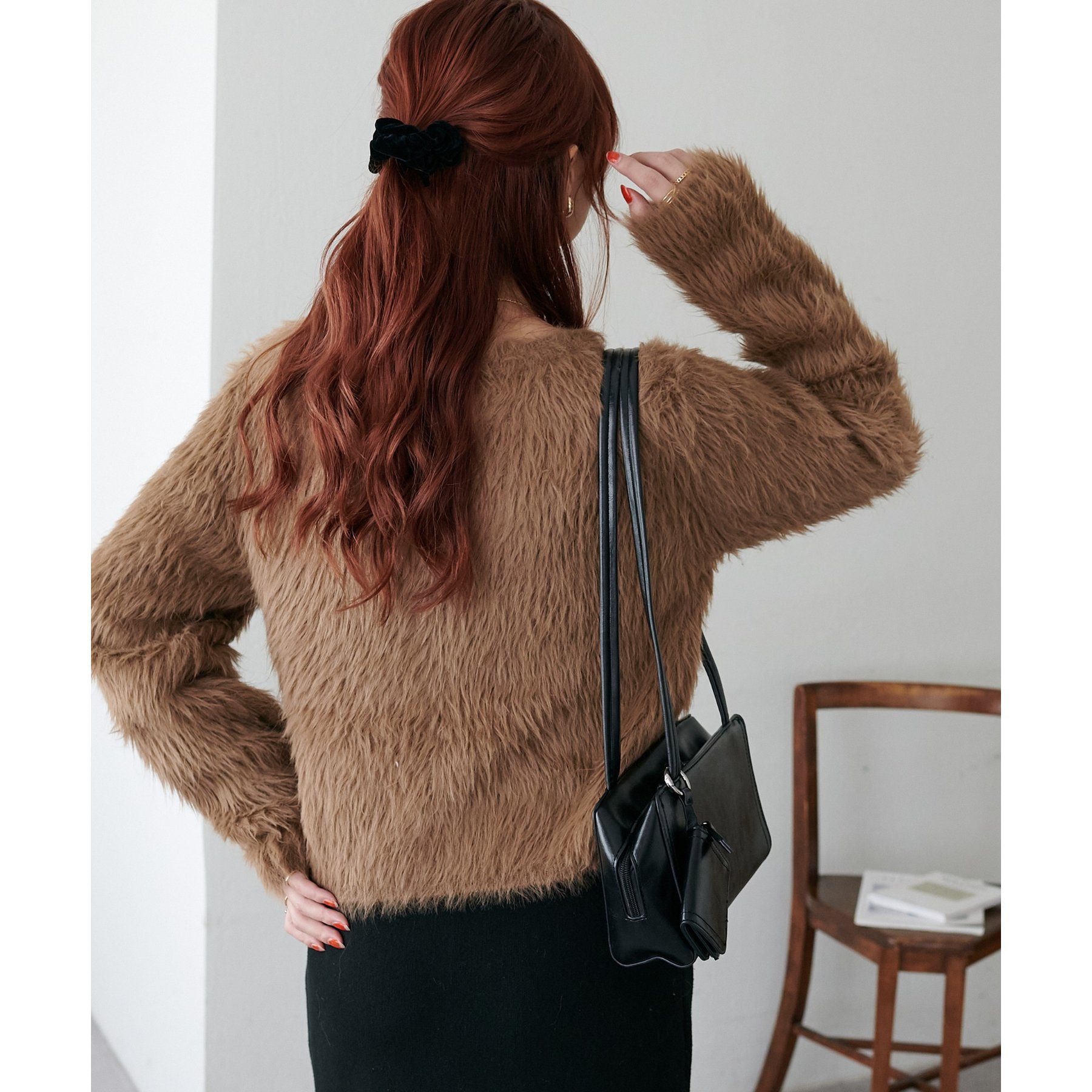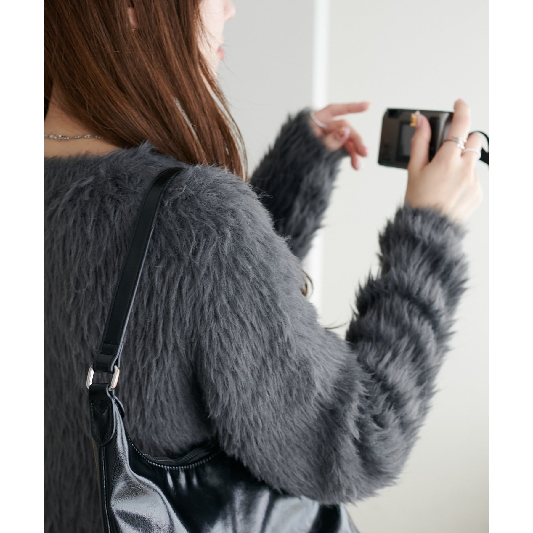 全体に毛足の長いロングフェザーヤーンを贅沢に使用した、ふんわりとした質感が魅力のカーディガン。