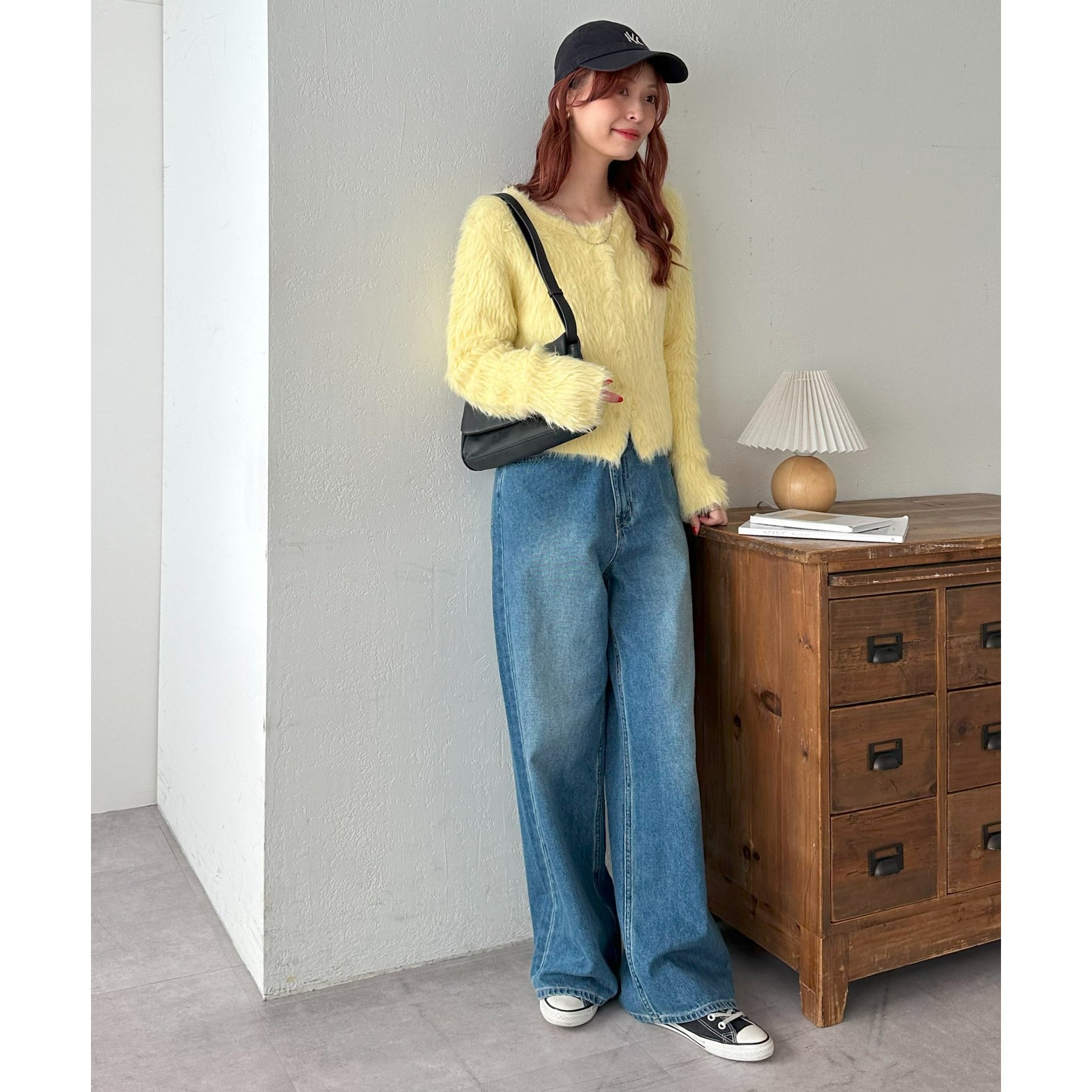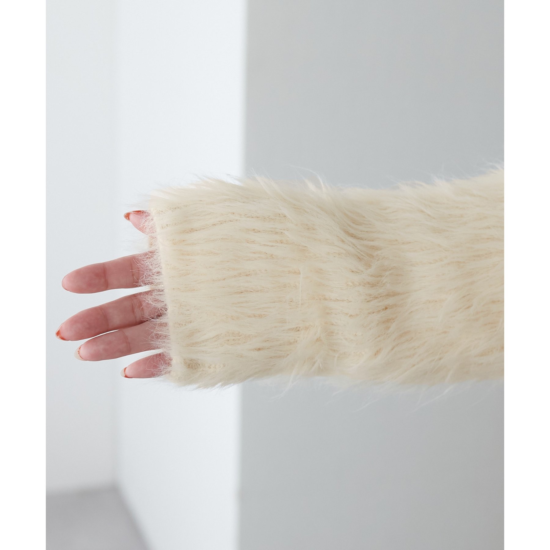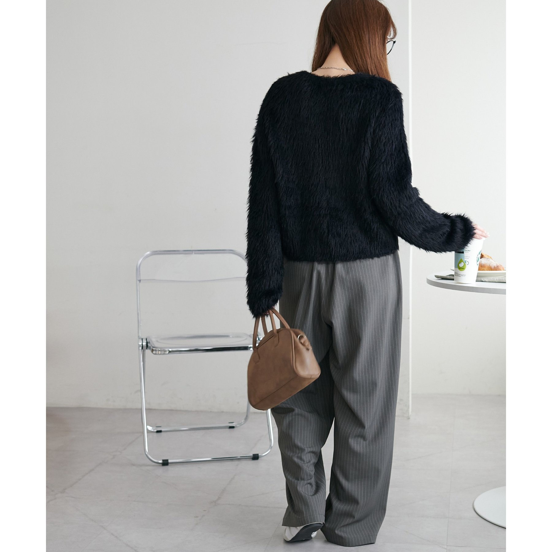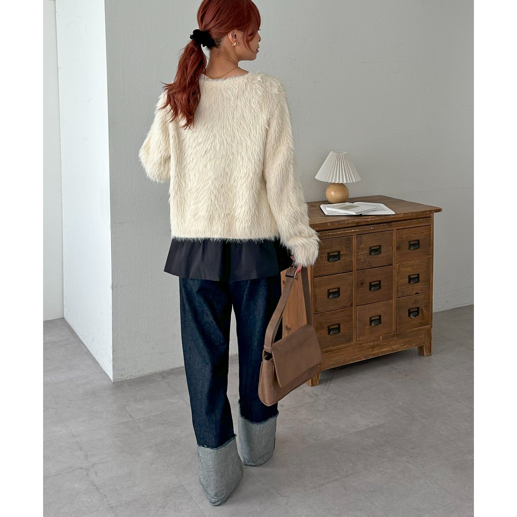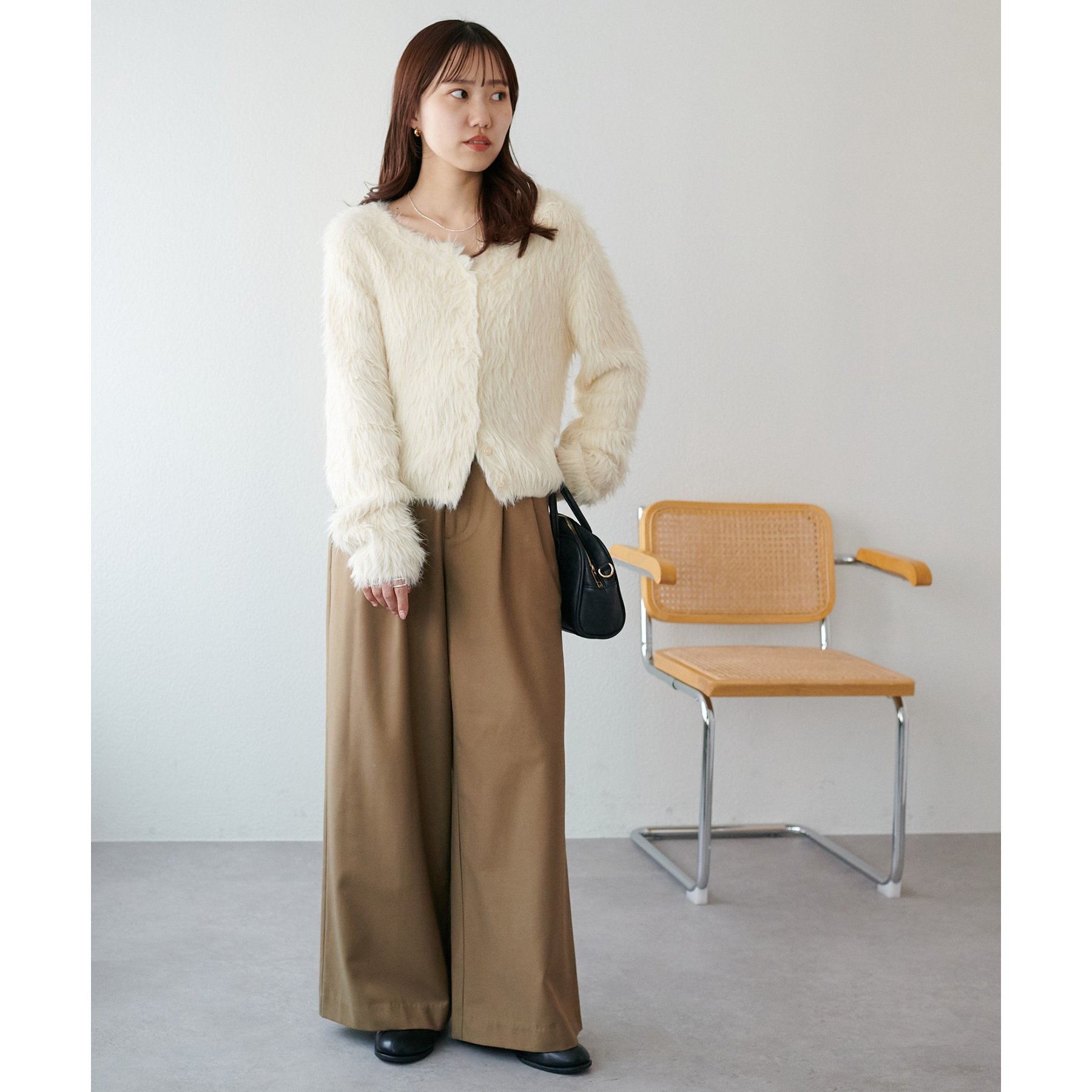全体に毛足の長いロングフェザーヤーンを贅沢に使用した、ふんわりとした質感が魅力のカーディガン。
