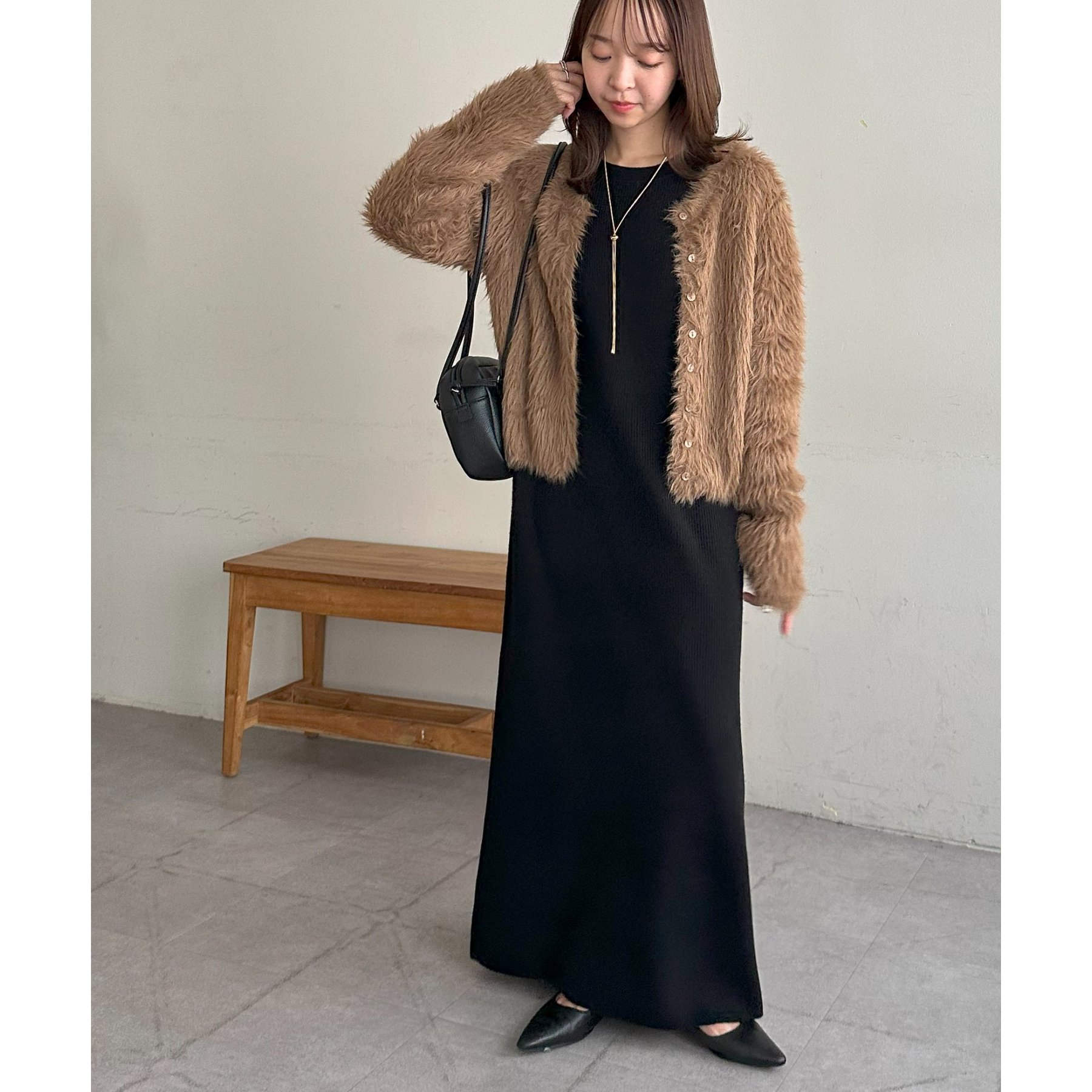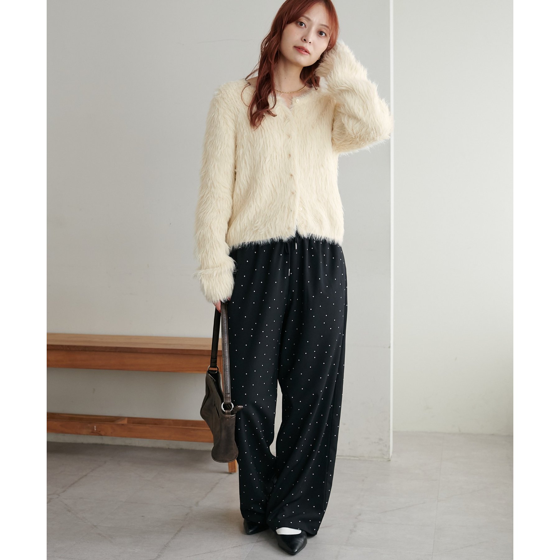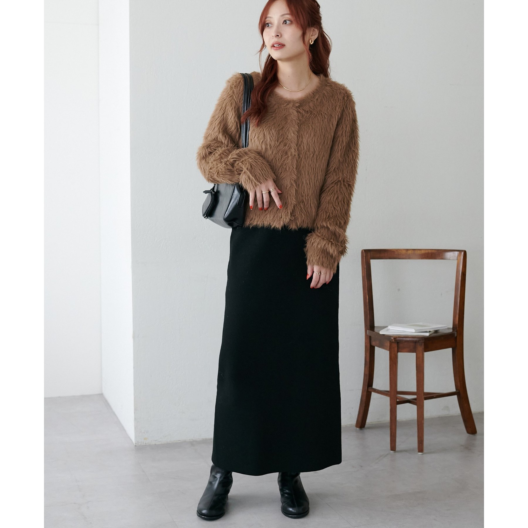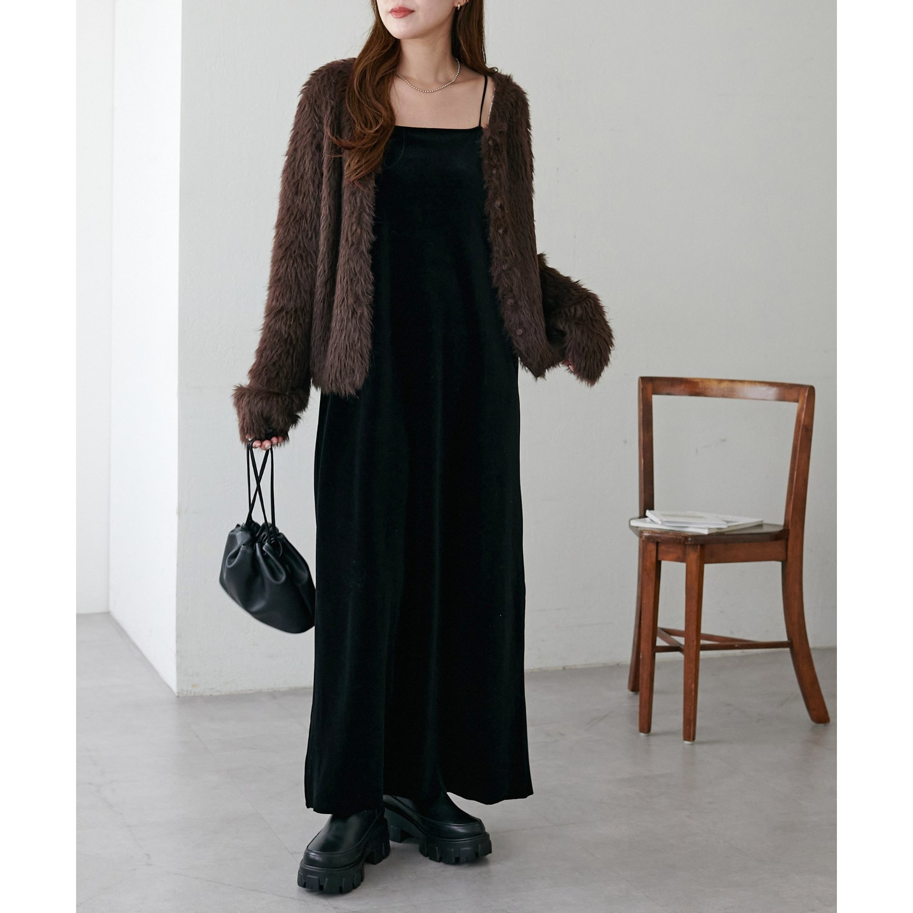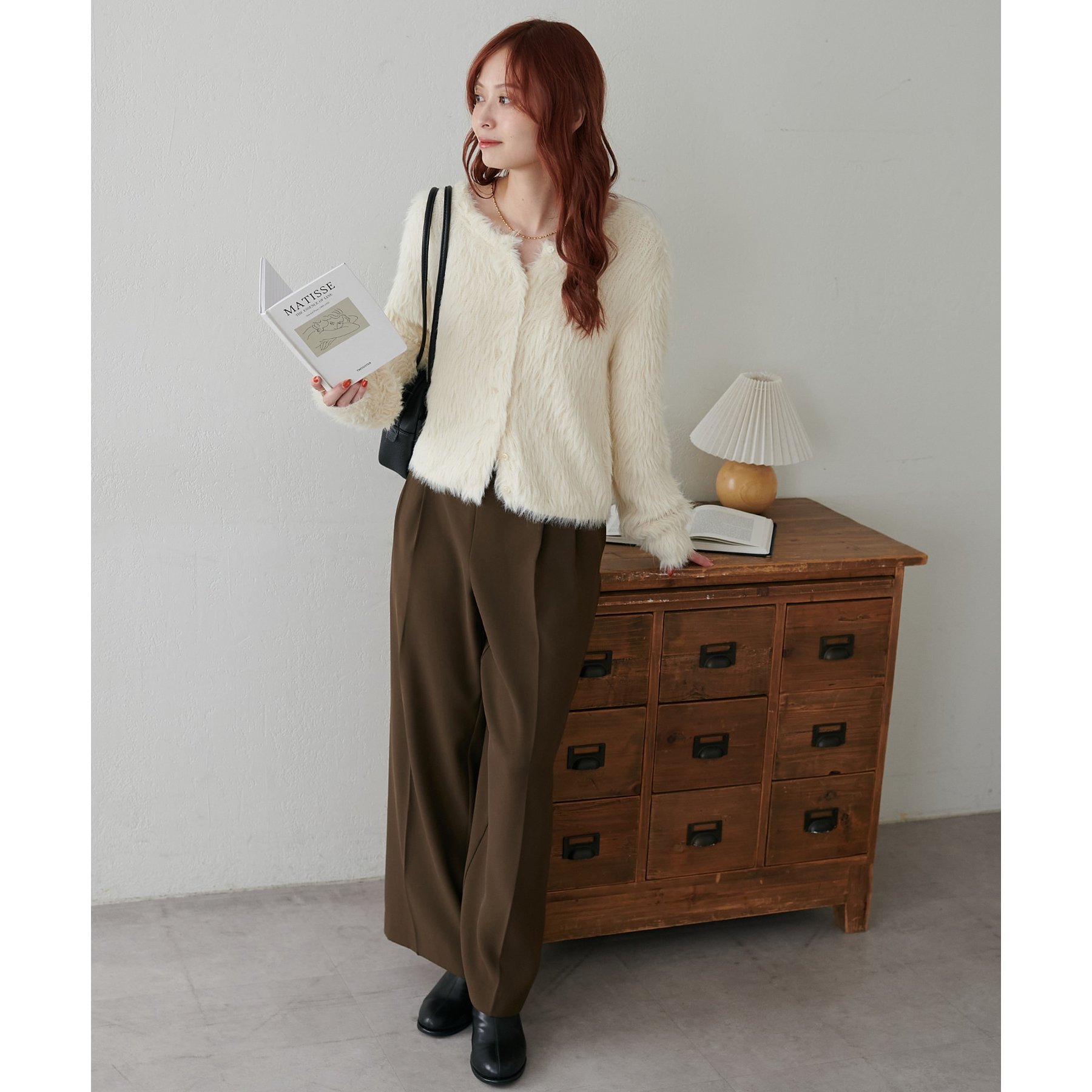全体に毛足の長いロングフェザーヤーンを贅沢に使用した、ふんわりとした質感が魅力のカーディガン。