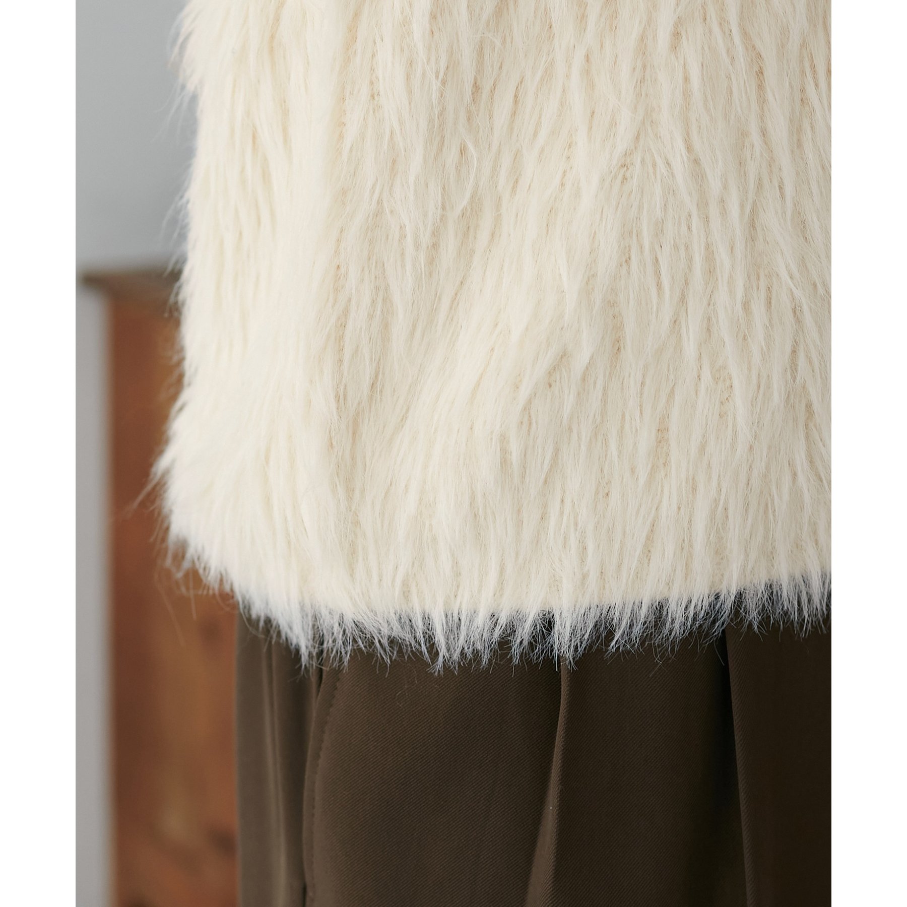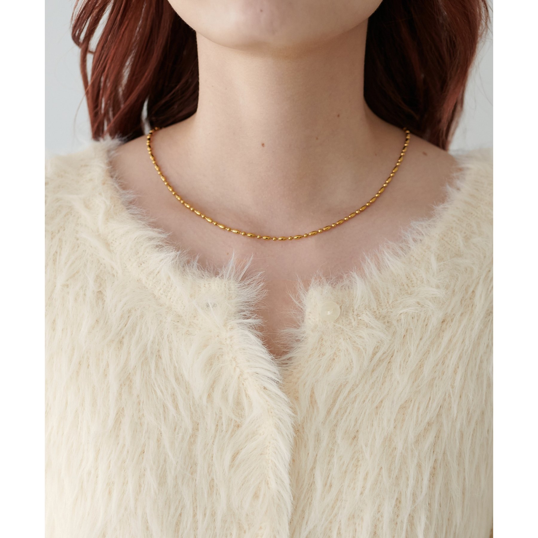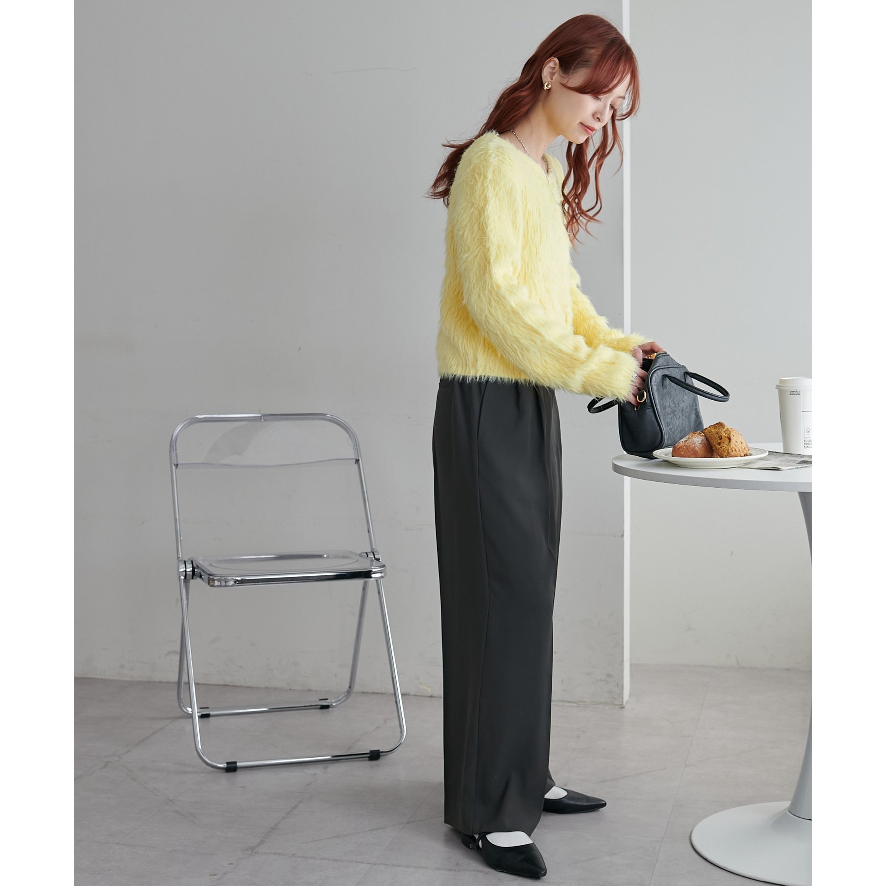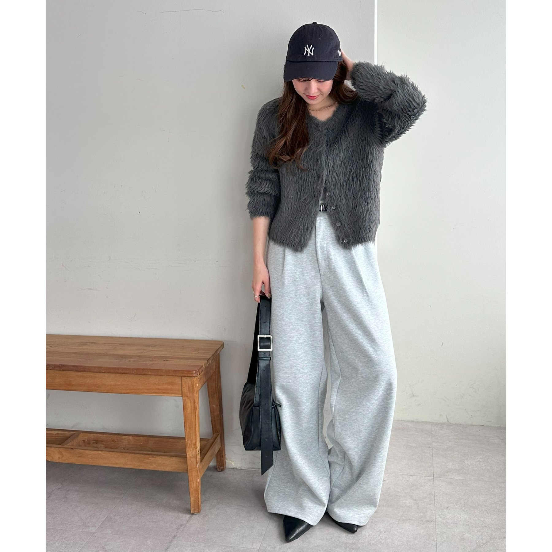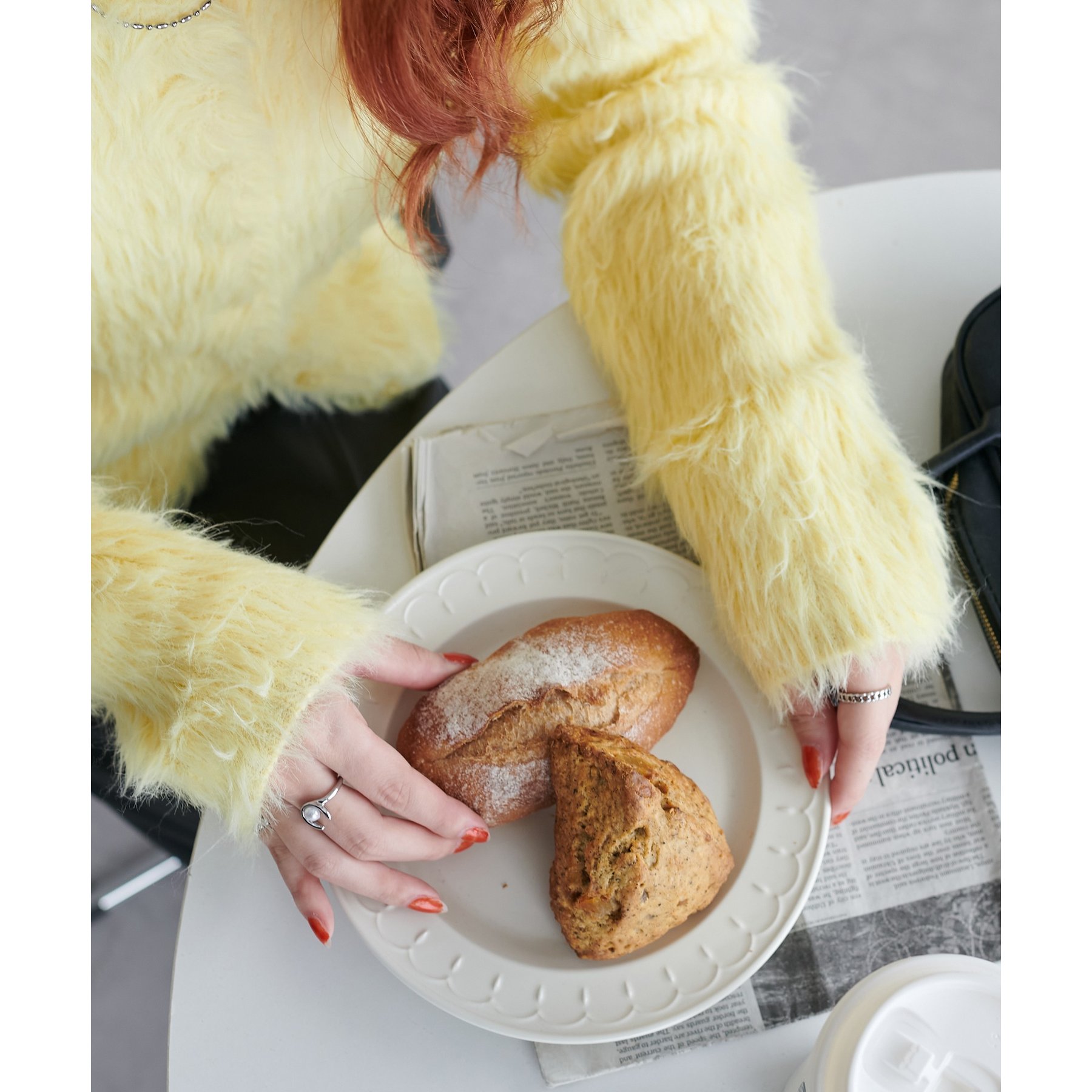 全体に毛足の長いロングフェザーヤーンを贅沢に使用した、ふんわりとした質感が魅力のカーディガン。