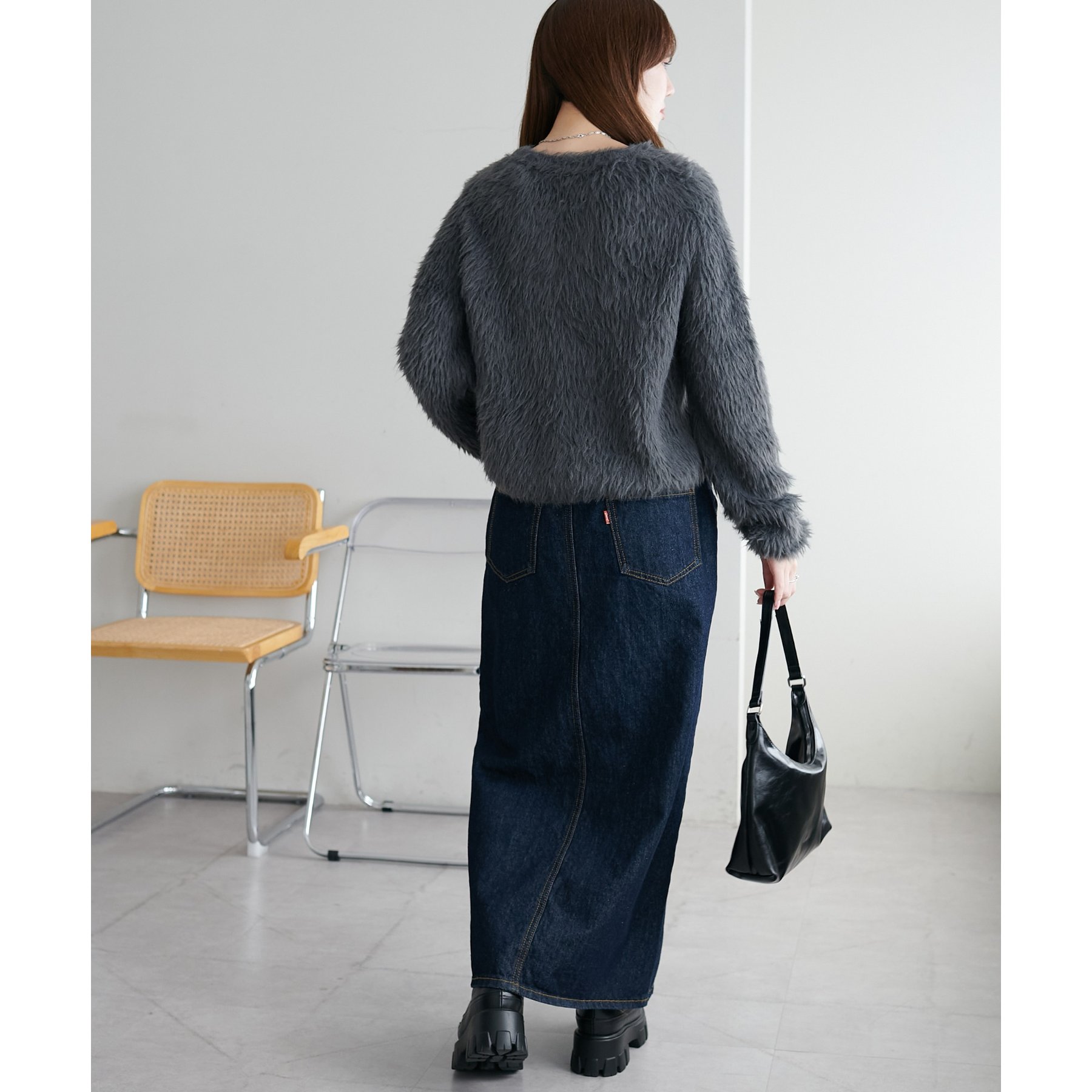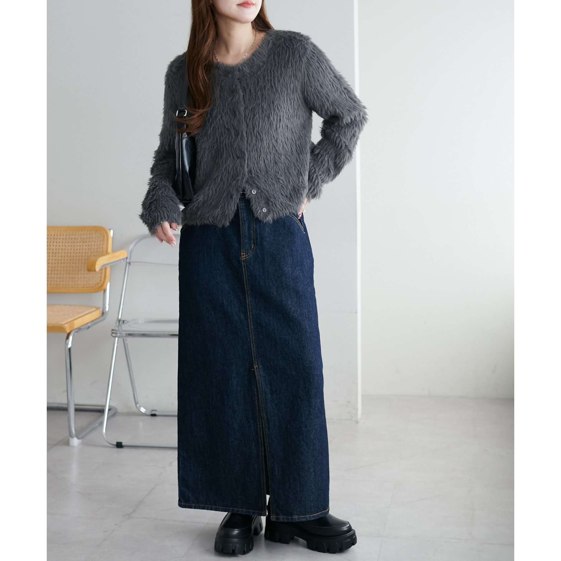 ロングフェザーヤーンクルーカーディガン《WEB限定カラーあり》