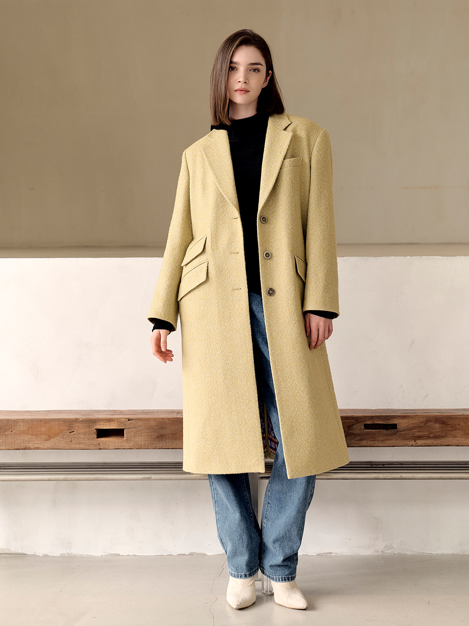Eco Recycle Japan Wool Boy Fit Herringbone Coat_Dusky Citron Yellow