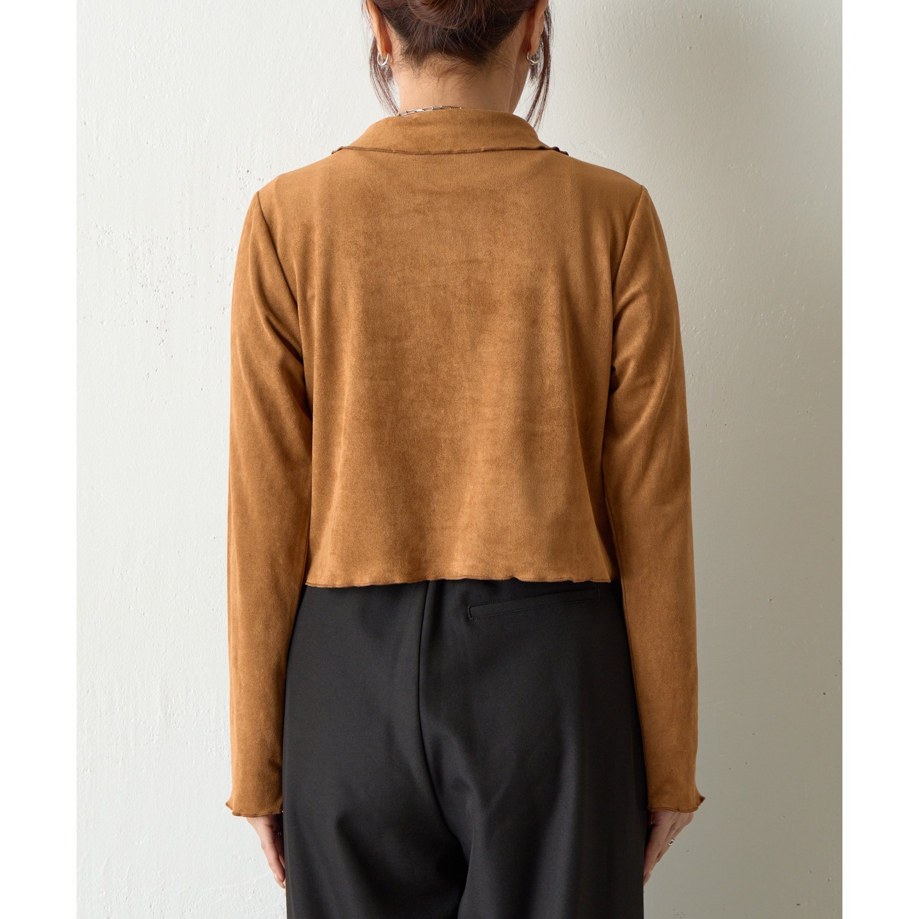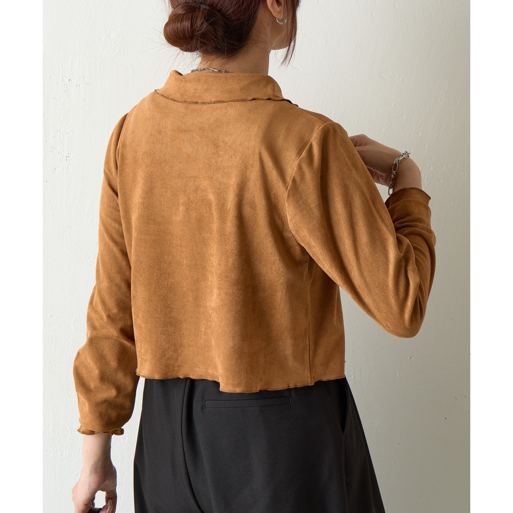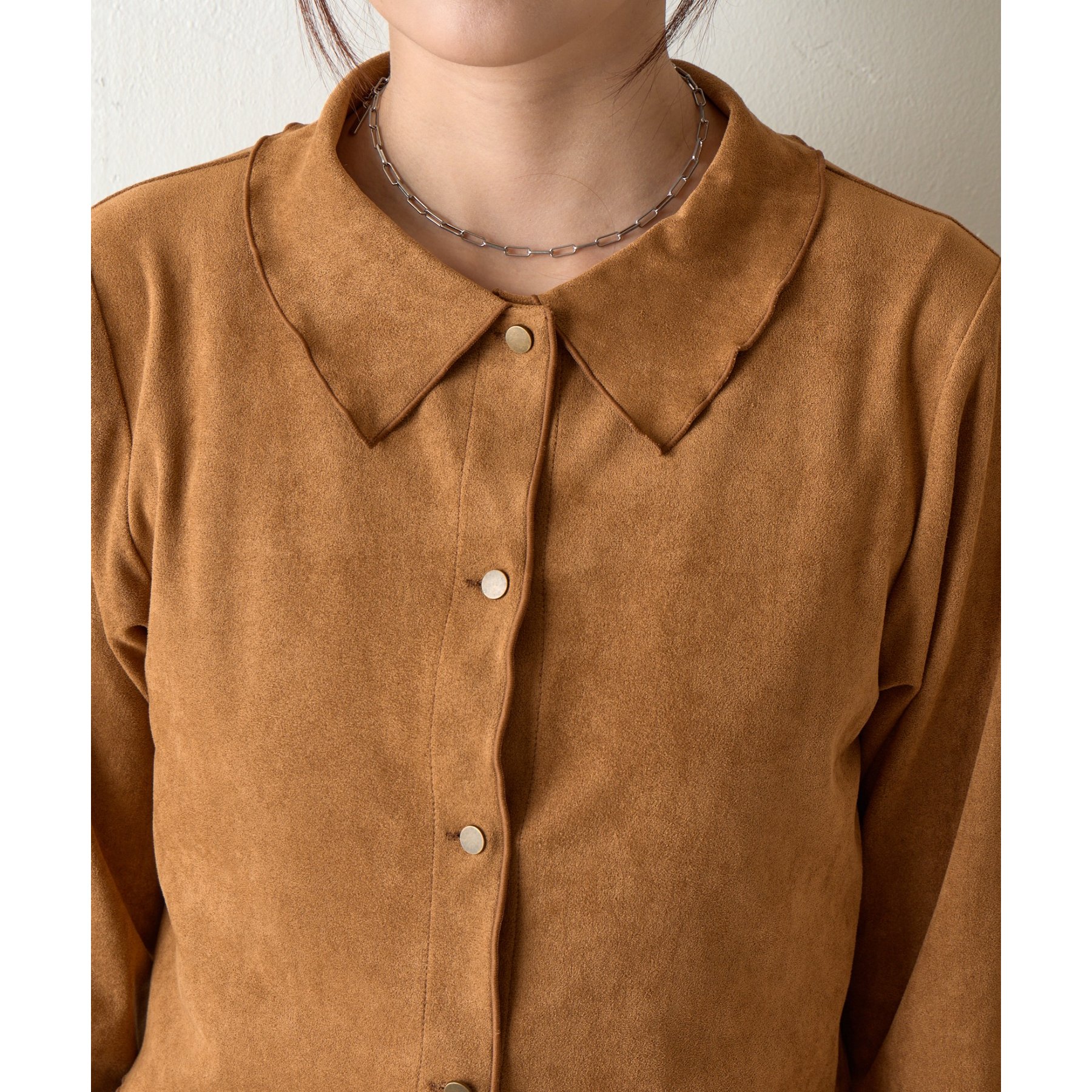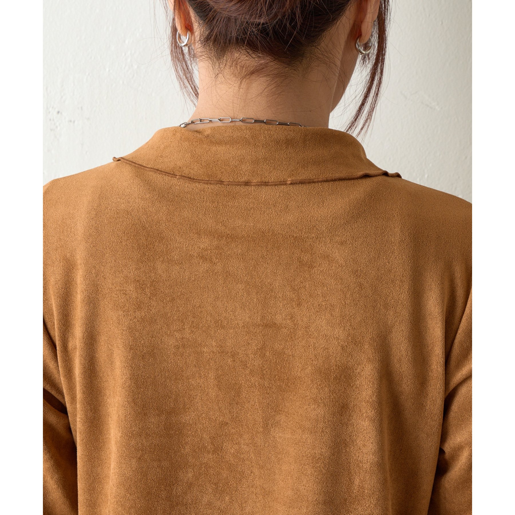 微起毛感のあるフェイクスエード生地が、上品な艶感と秋冬らしい温もりを演出し、ややとろみのある素材で身体のラインに沿うような美しい落ち感が特徴です。
