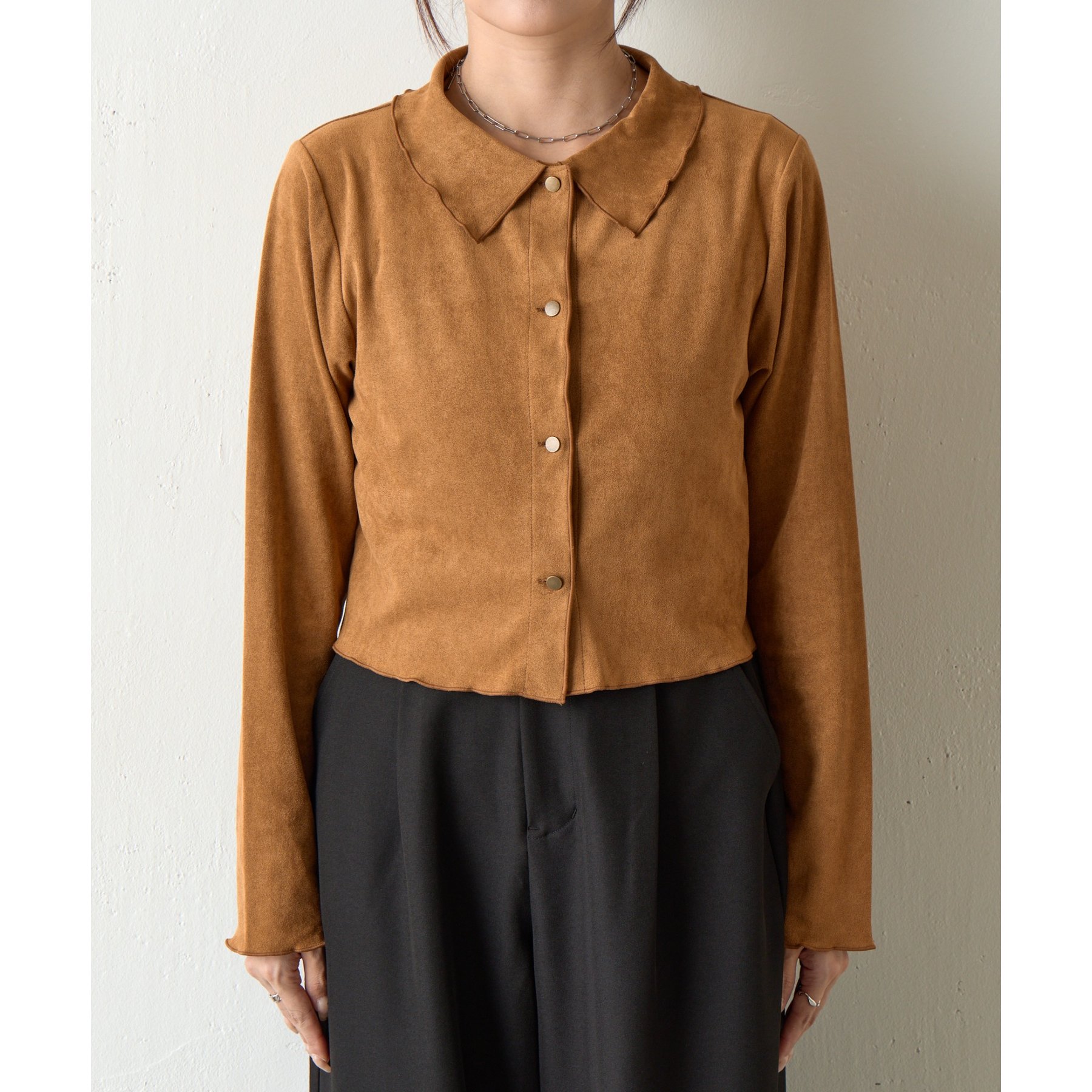 フェイクスエードの質感とメロウ加工が特徴のフェイクスエードメロウシャツです。