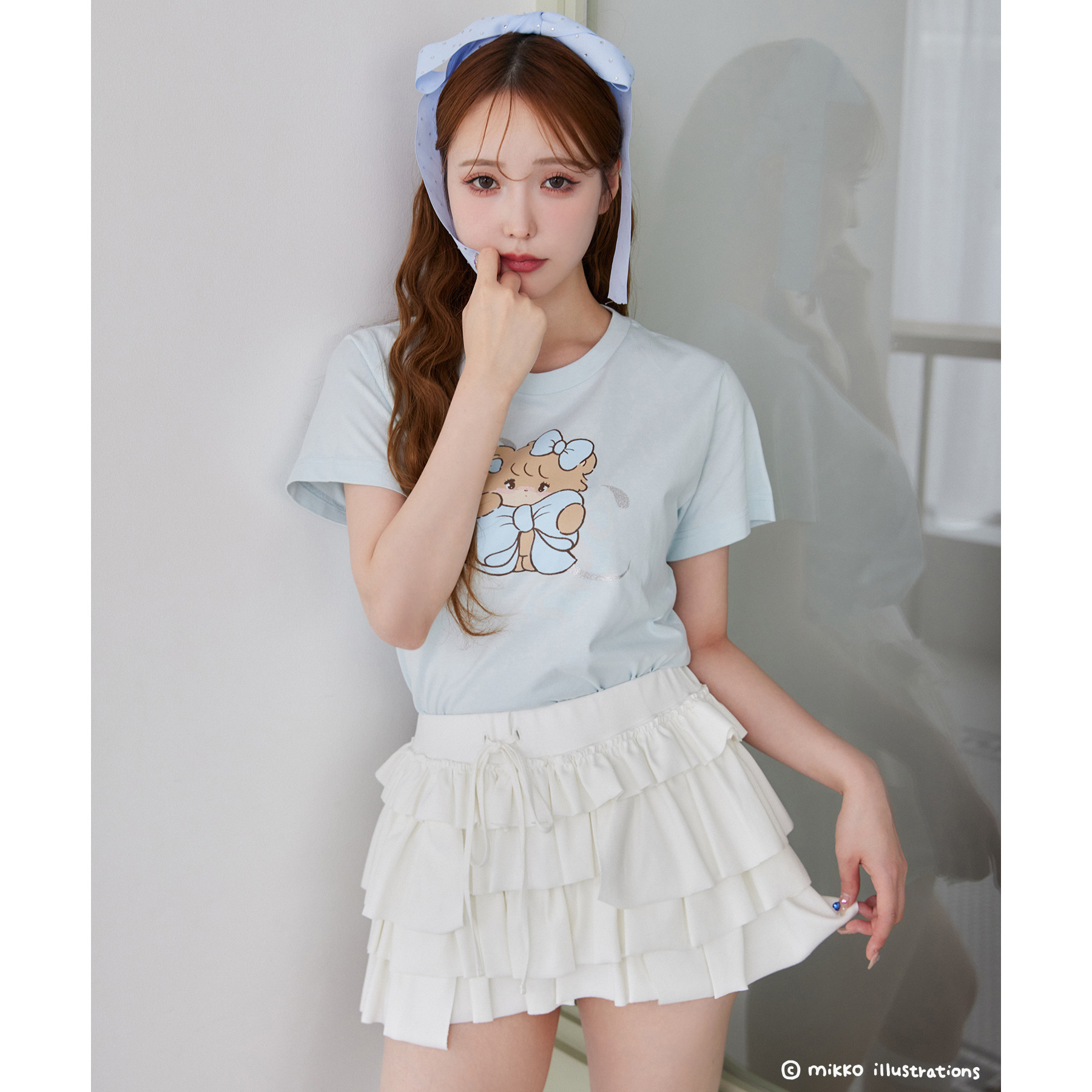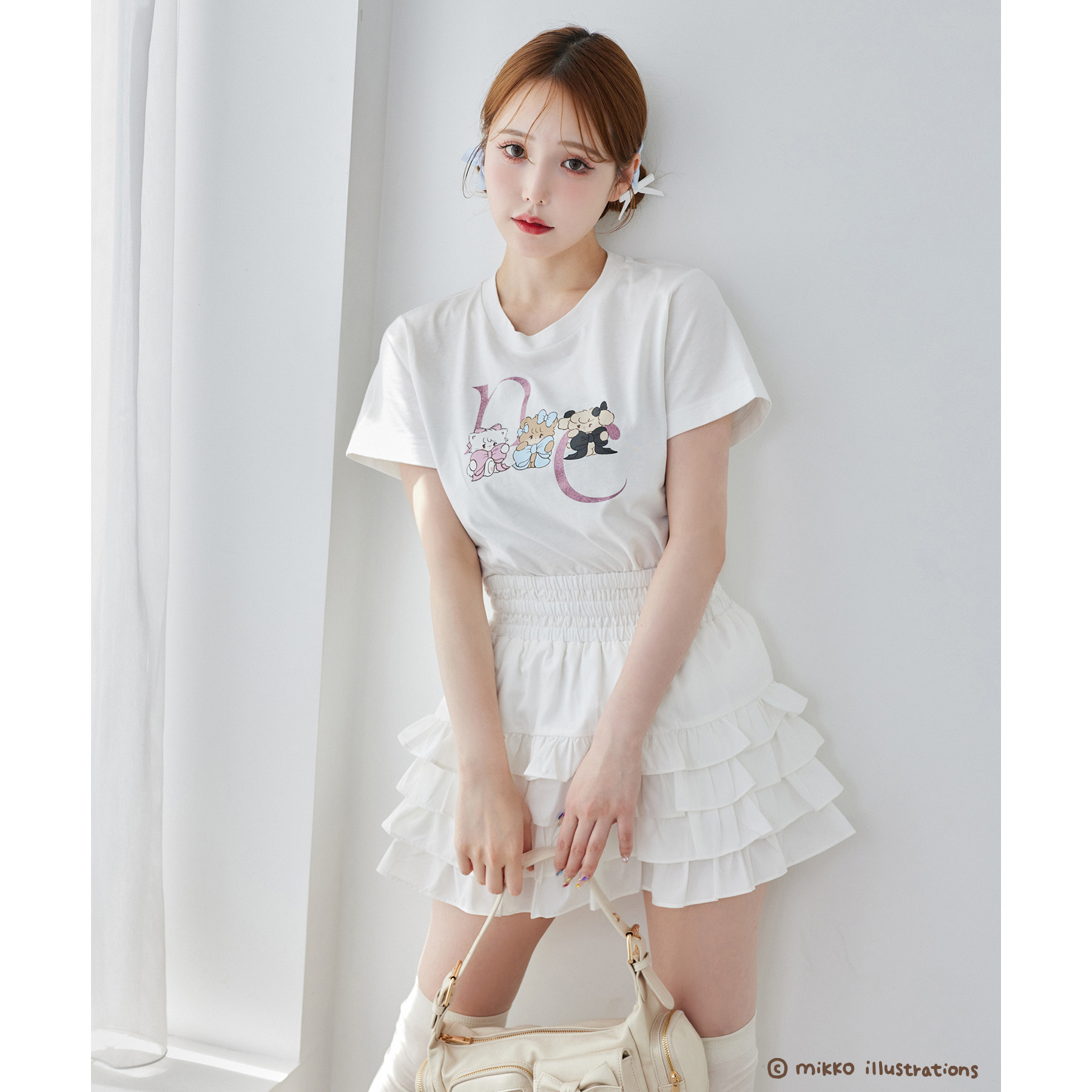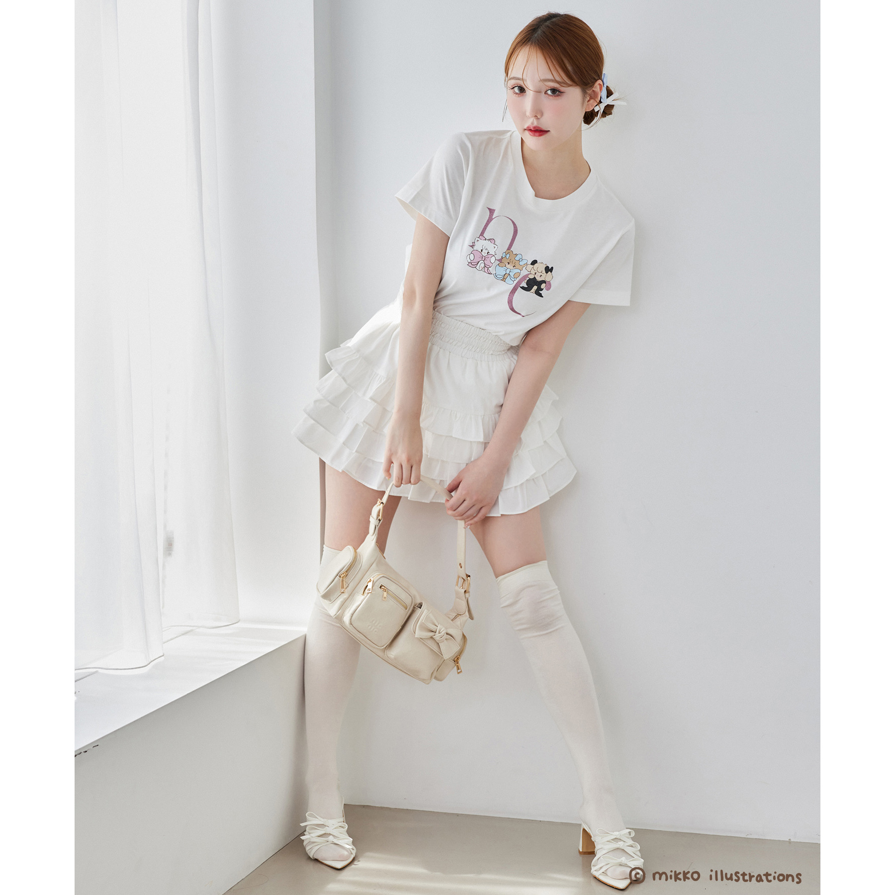 フリルミニスカートとコーデすれば一気にトレンド感も楽しめます。