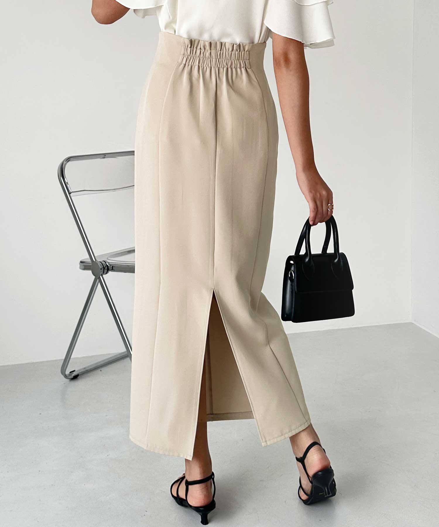 身に着けた時のシルエットがキレイに見える、立体的なパターンが特徴的なIラインのロングスカート。
