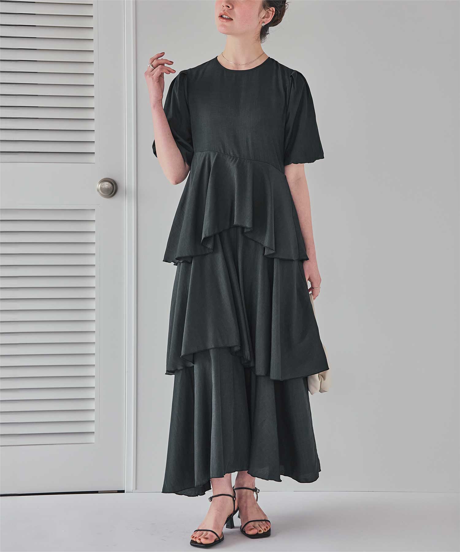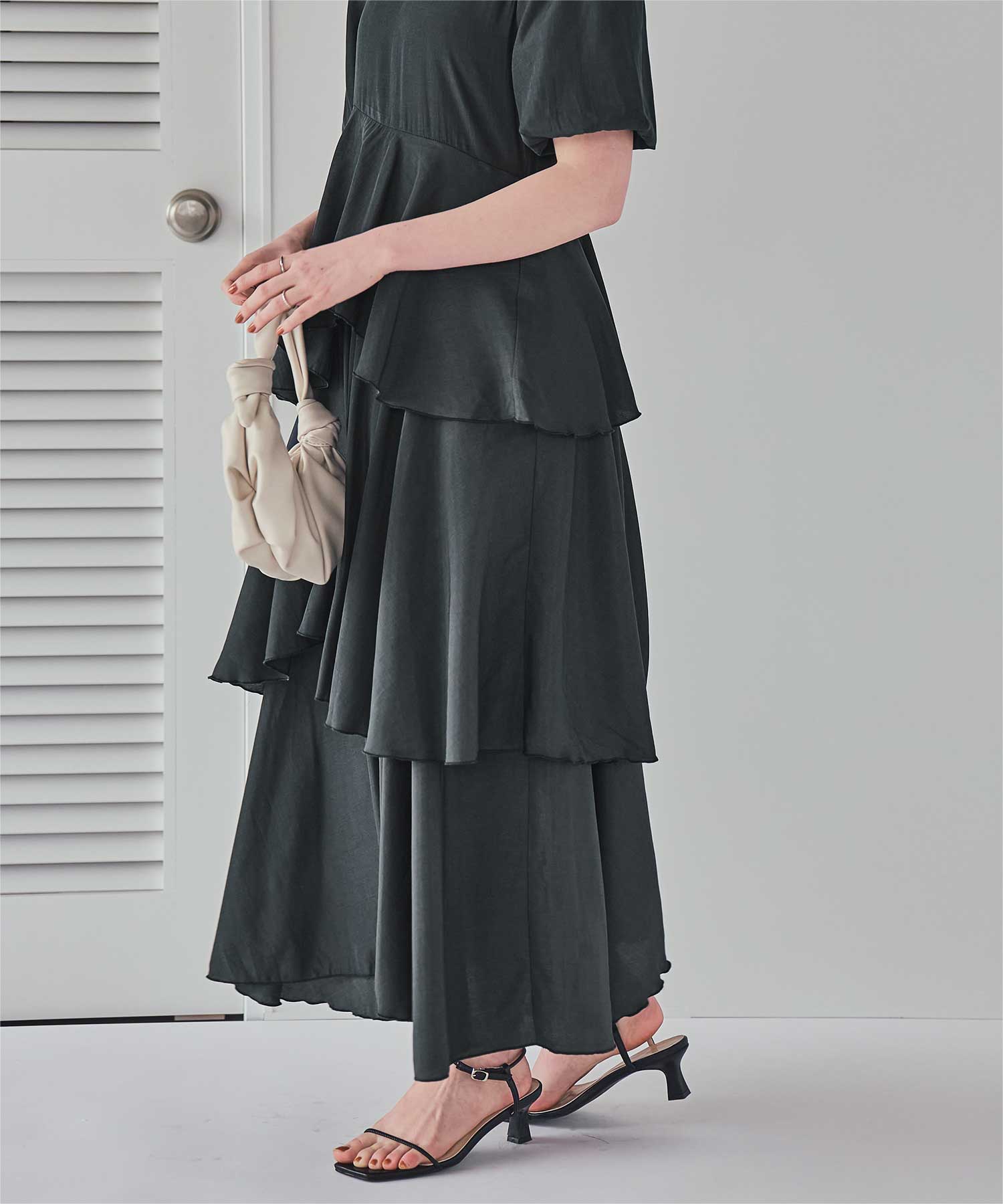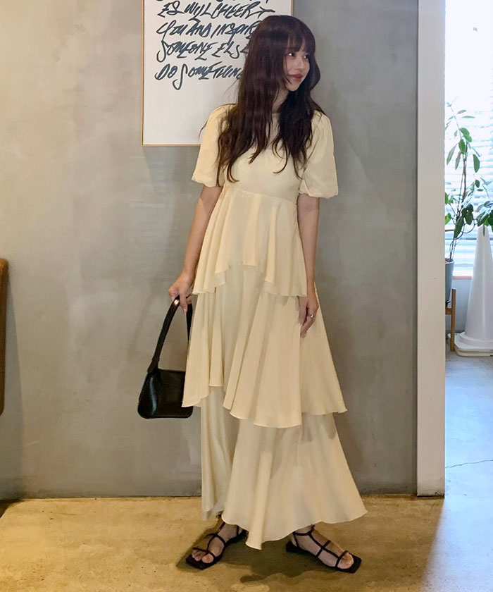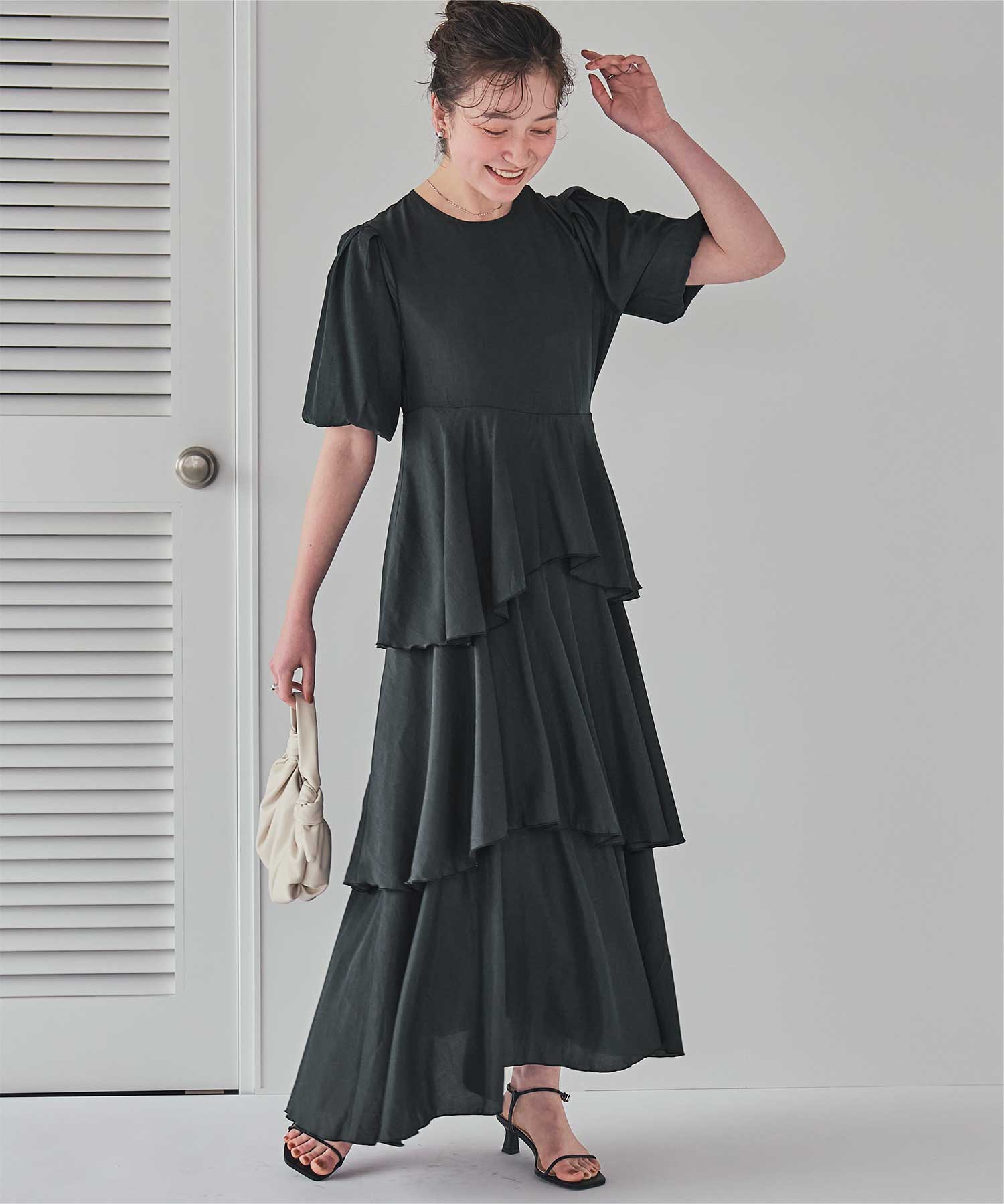 ・ランダムヘムのティアードデザインが目を惹くワンピース