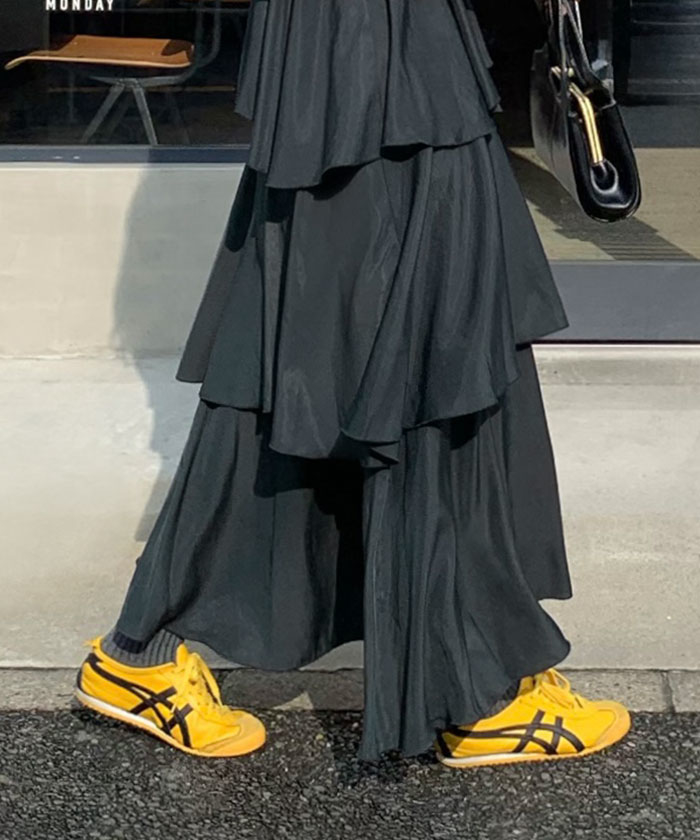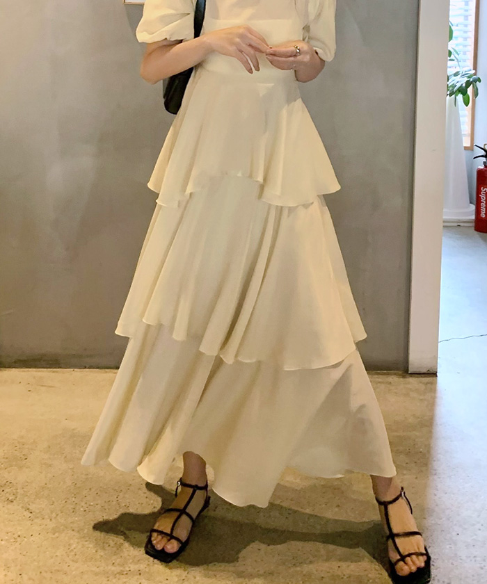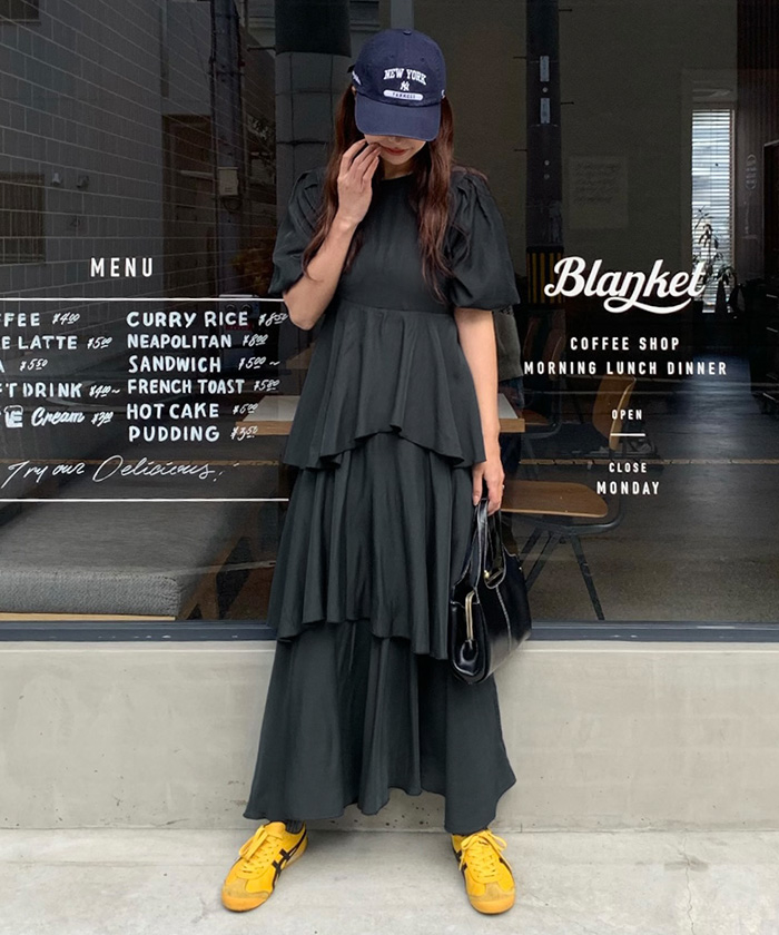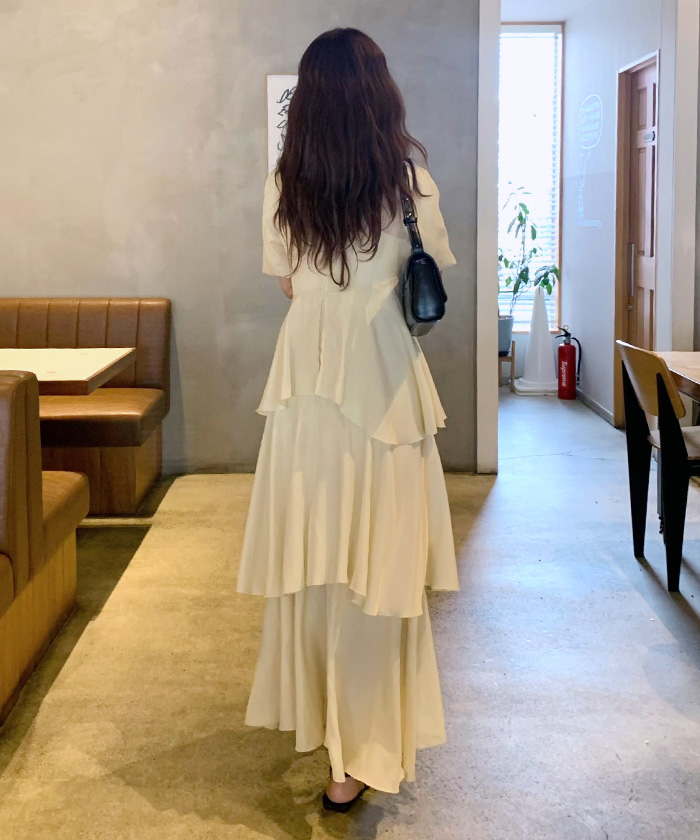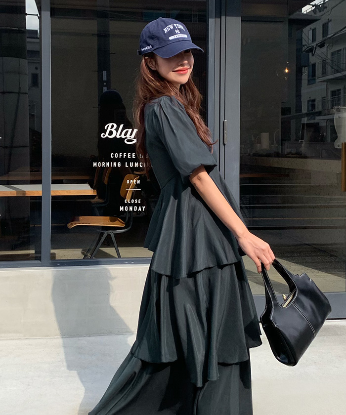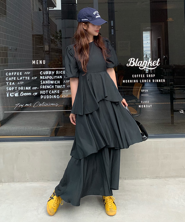 ・ランダムヘムのティアードデザインが目を惹くワンピース