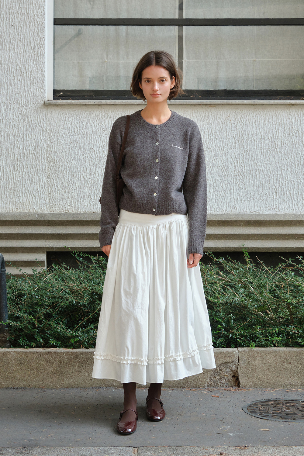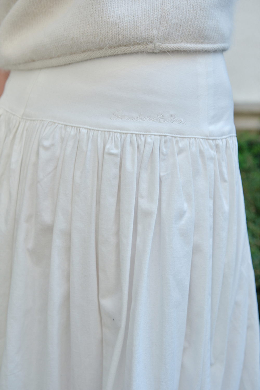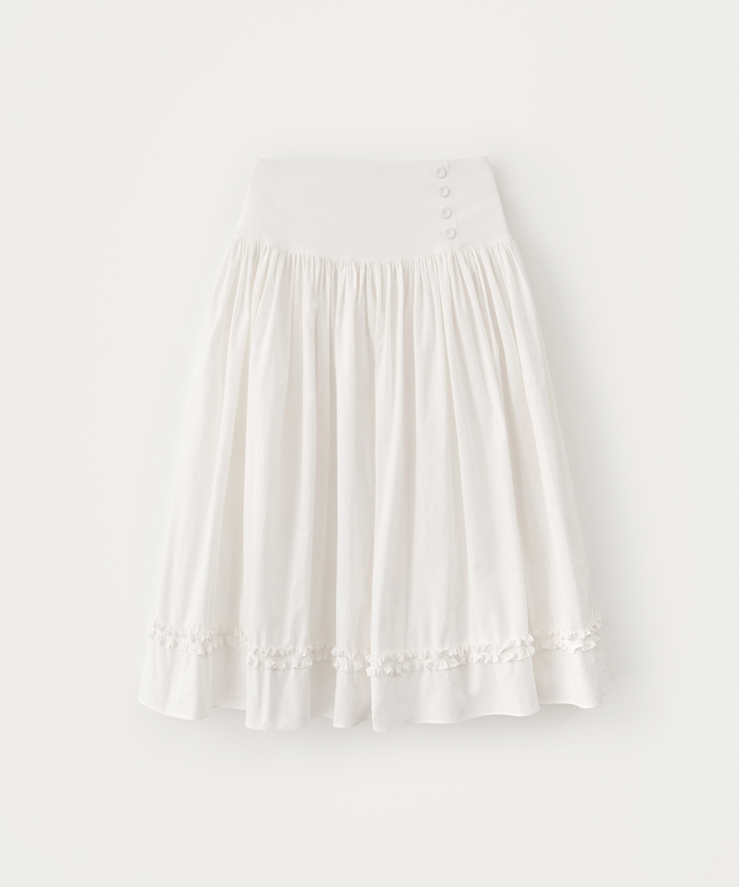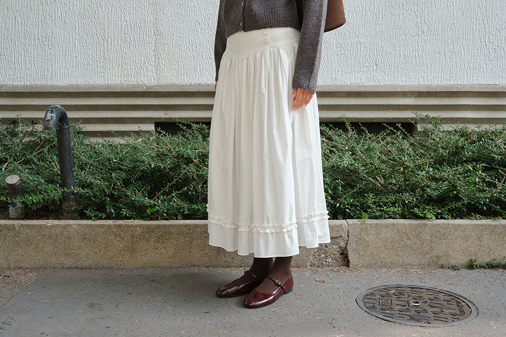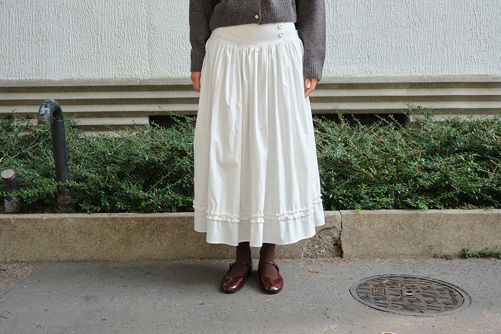 Button Shirring Long Skirt - Ivory