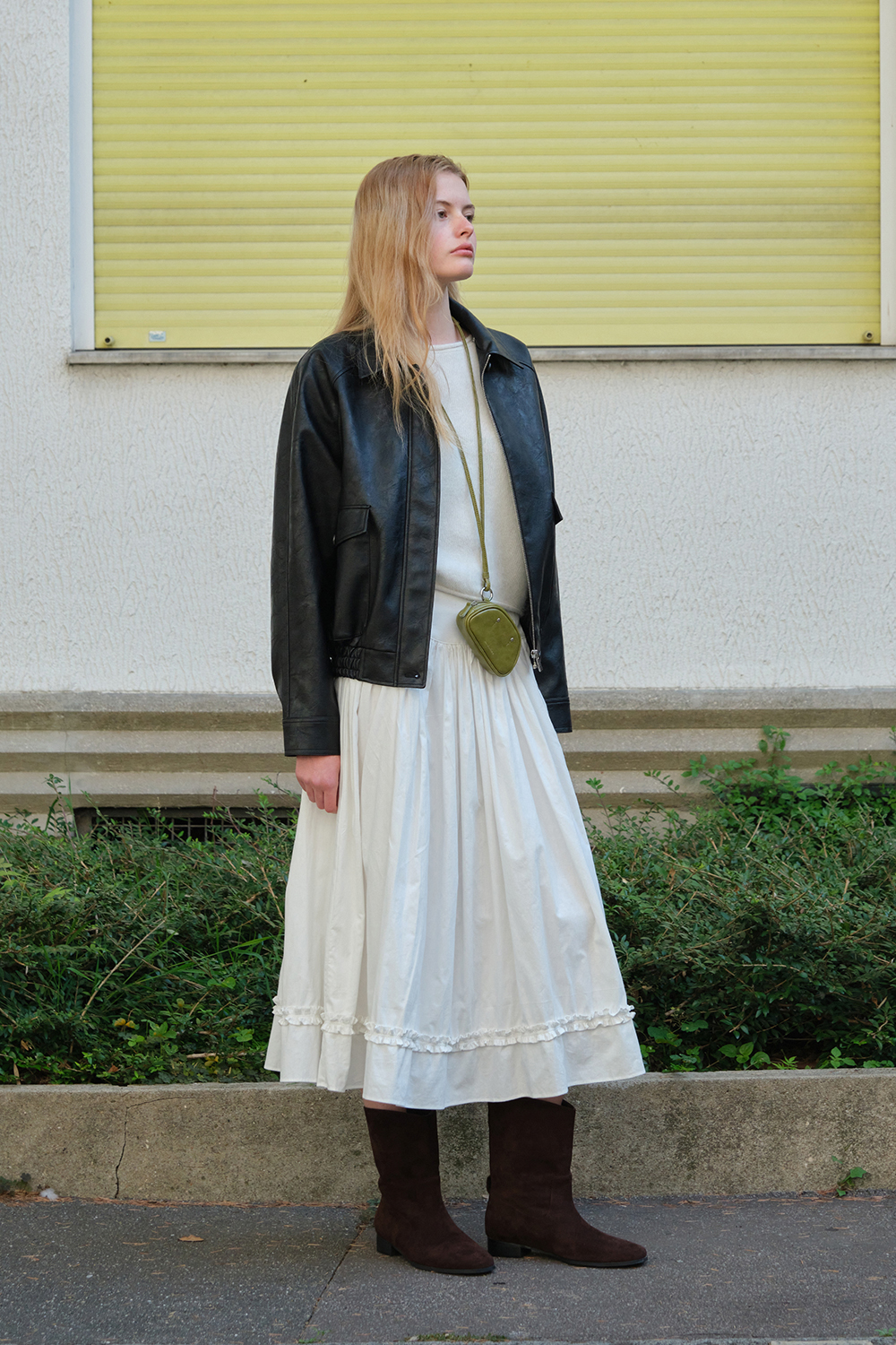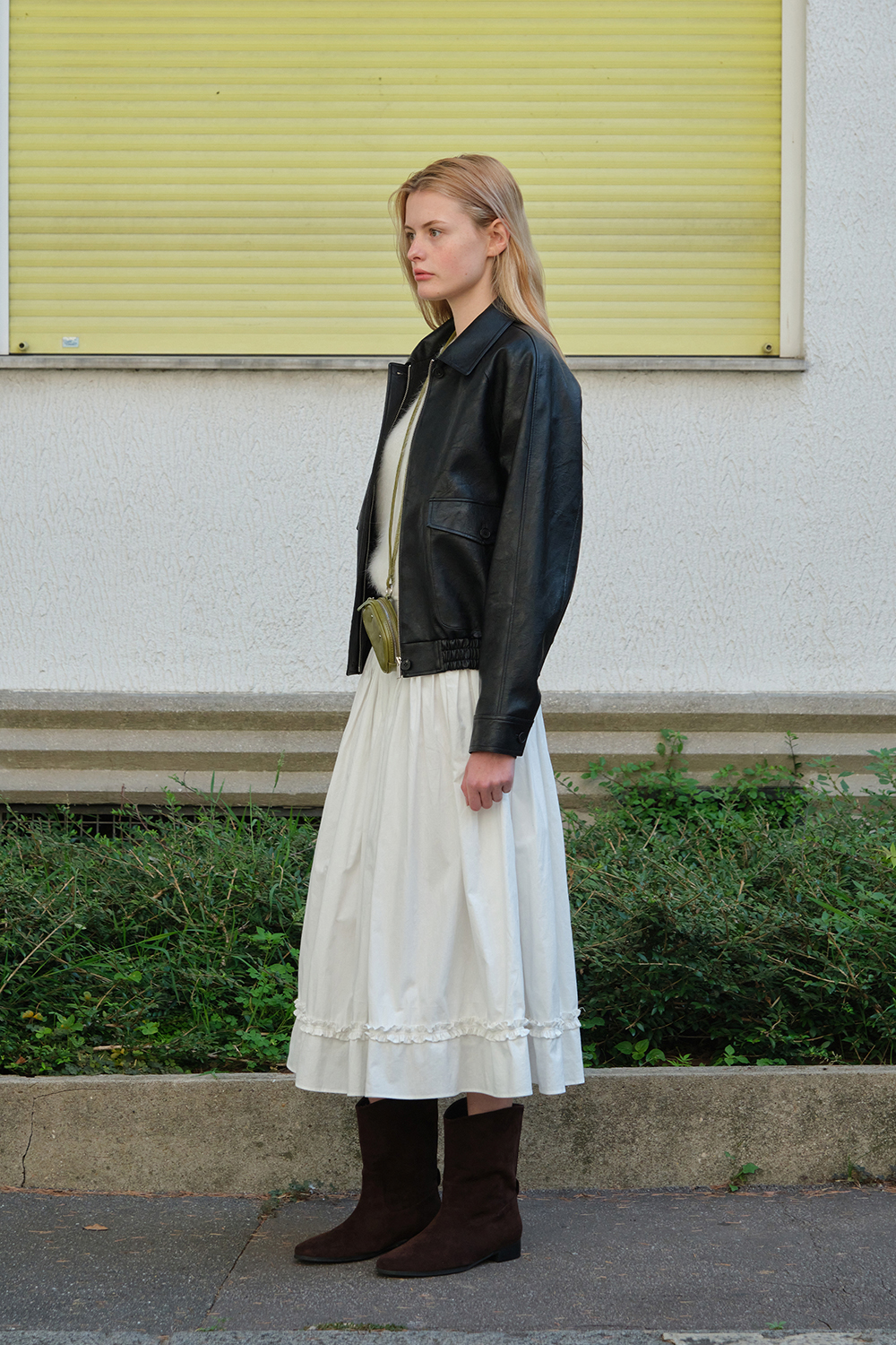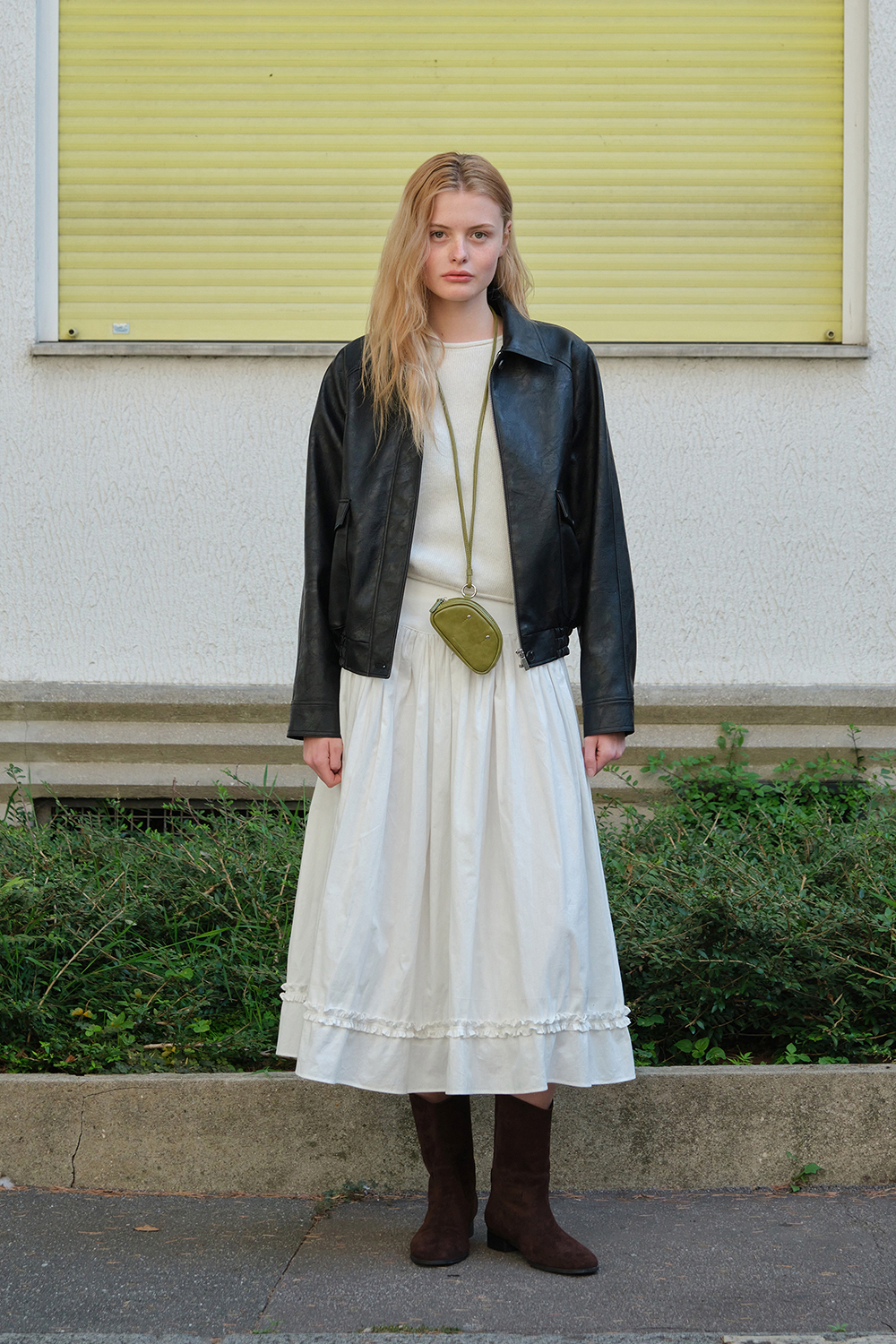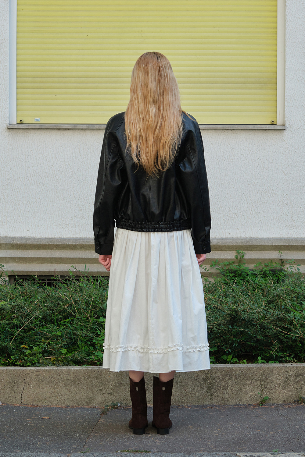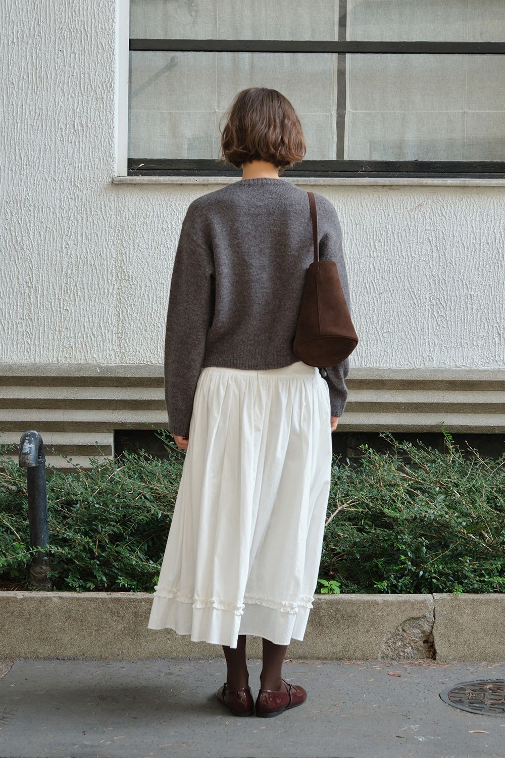 Button Shirring Long Skirt - Ivory