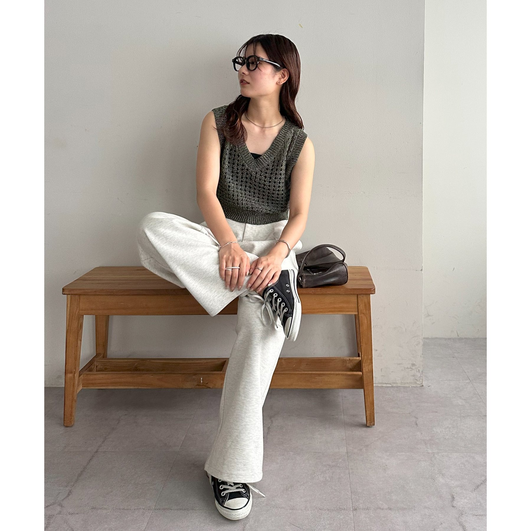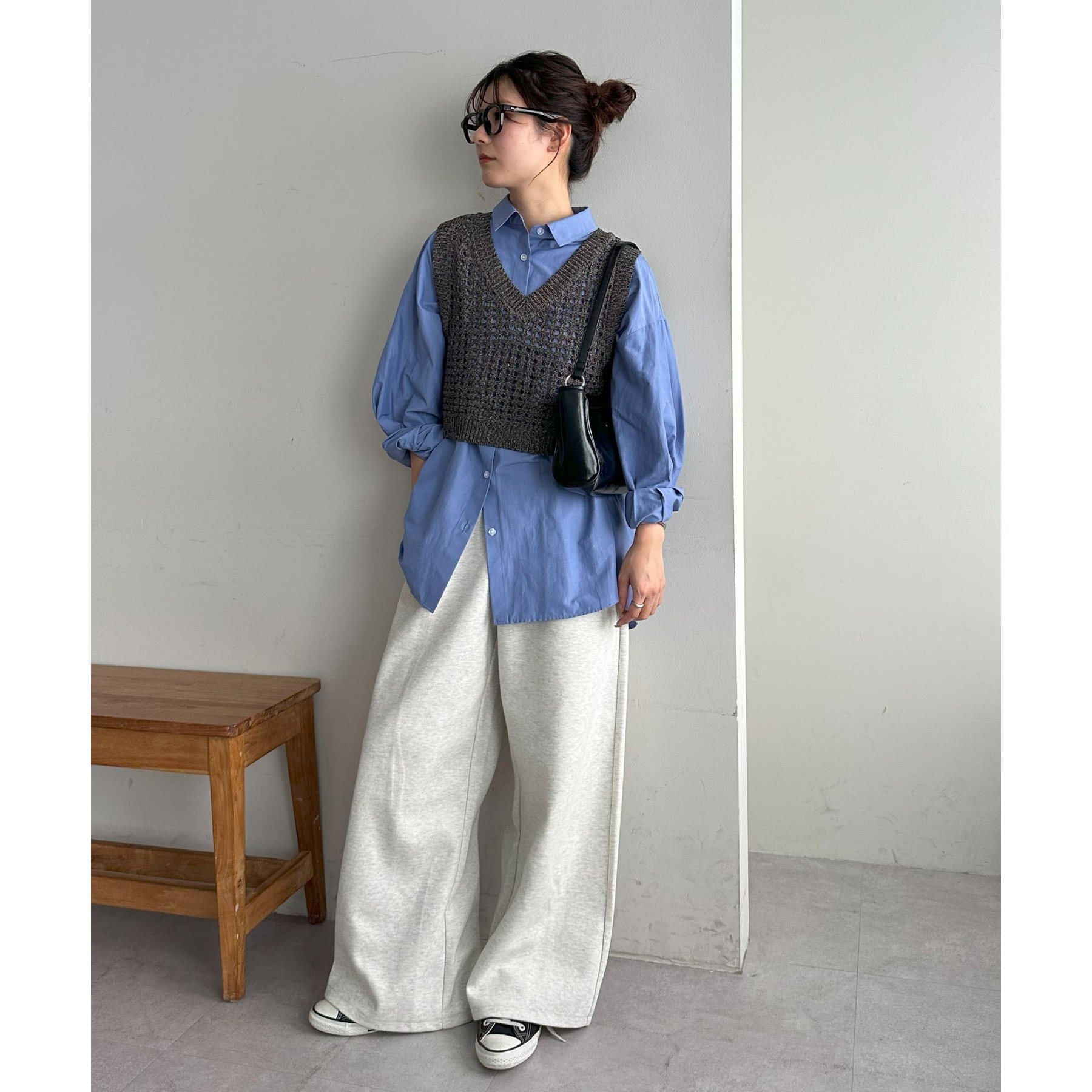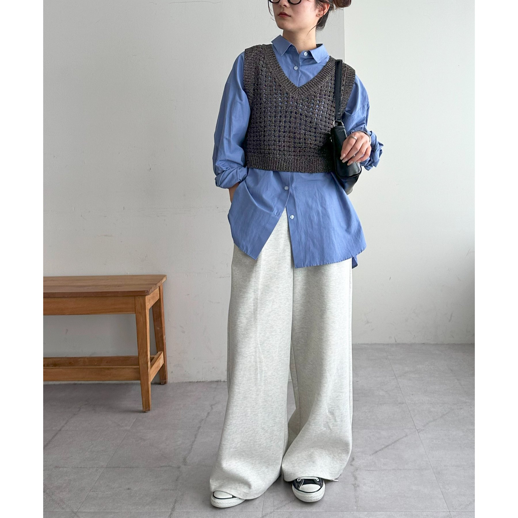 スウェットパンツと合わせたラフな着こなしも、どこかきちんと感が出るバランスが気に入っています。