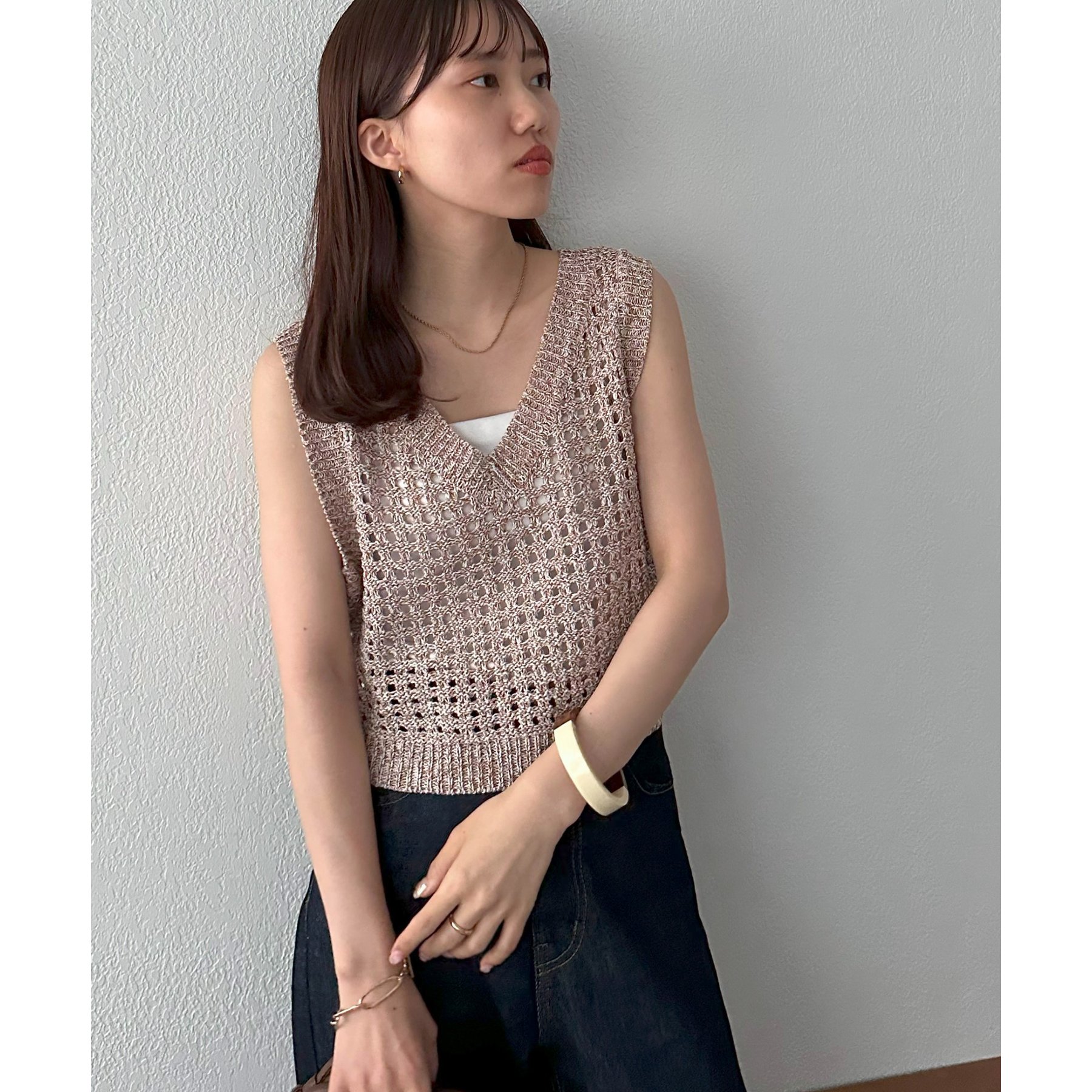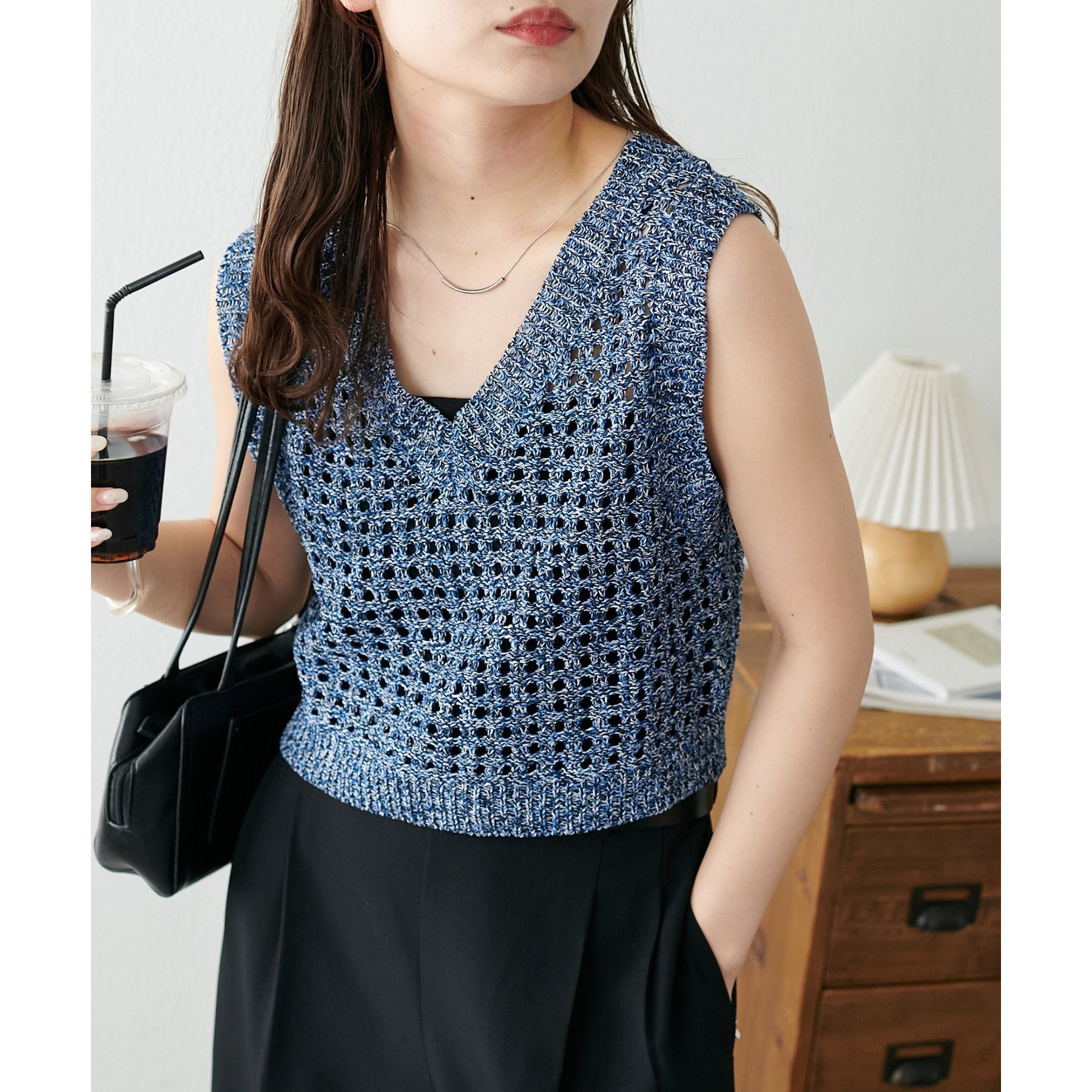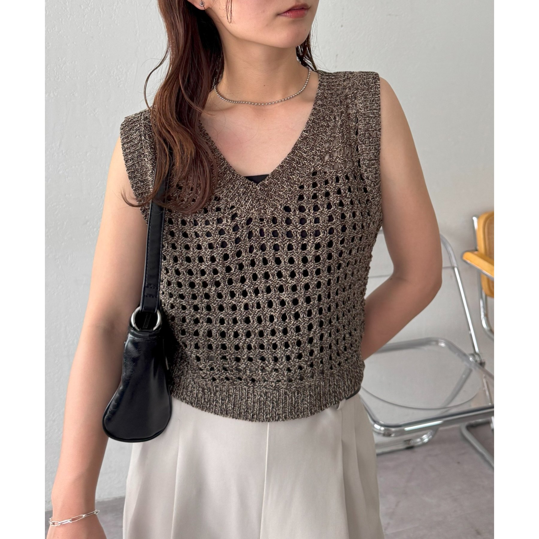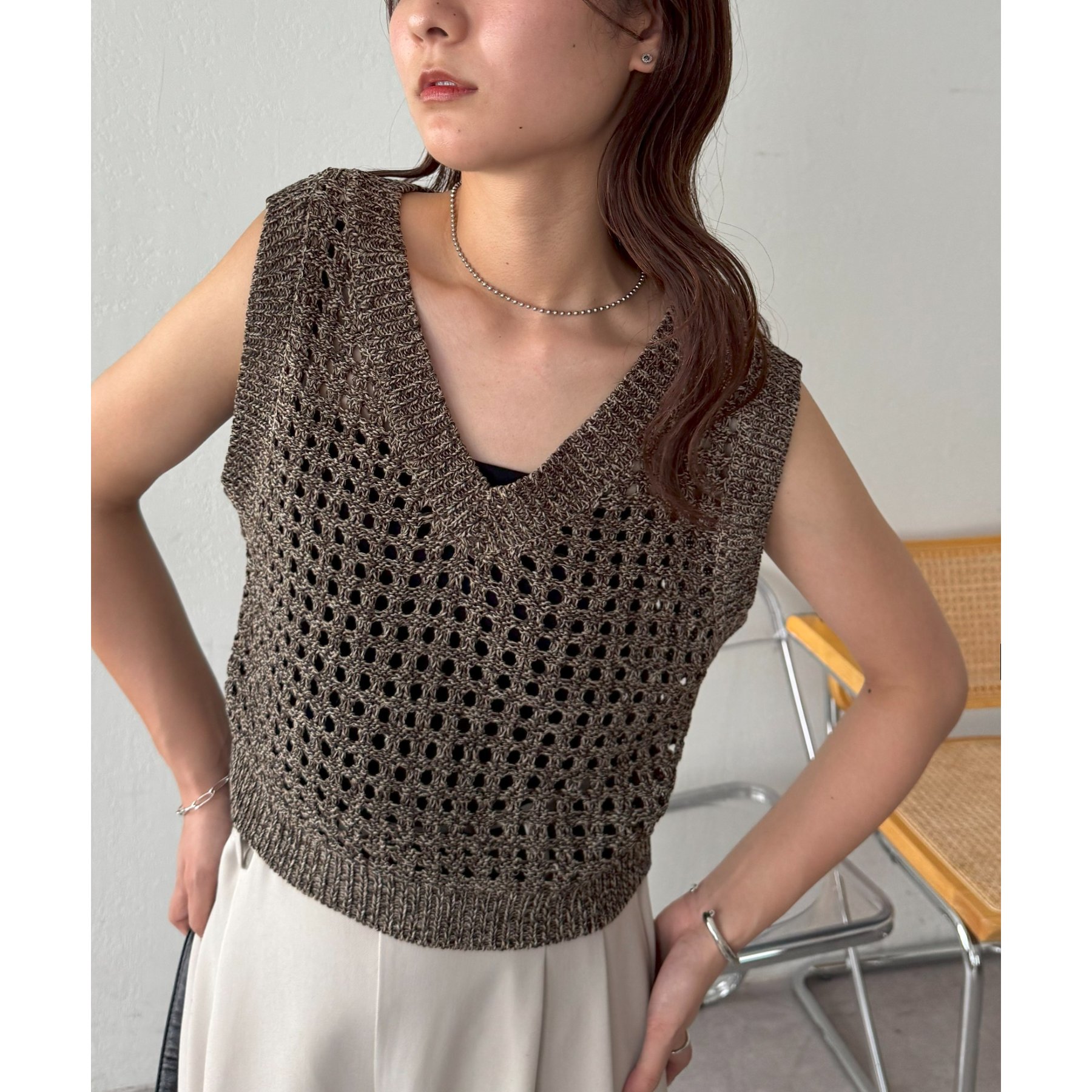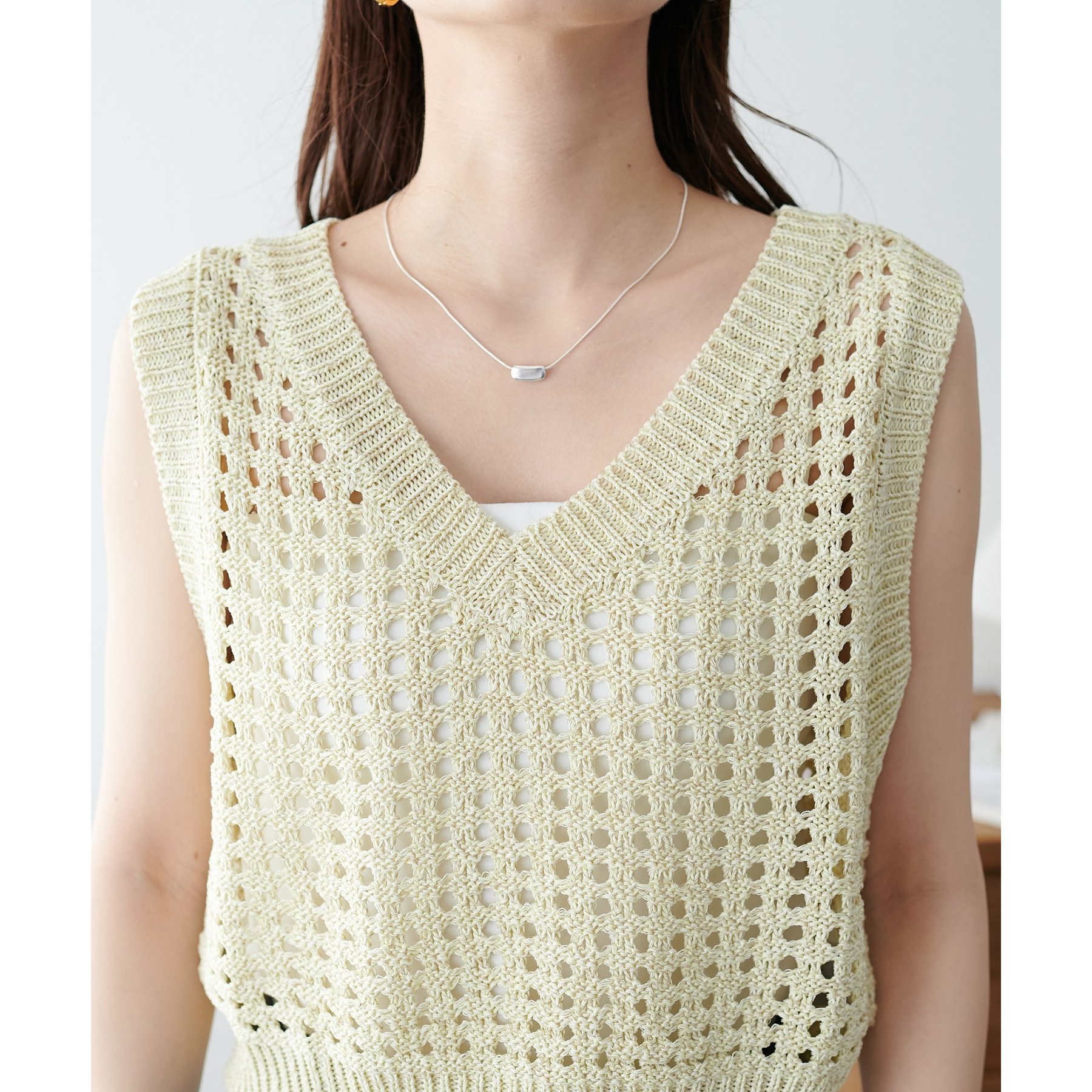 ・透かし編みで軽やか&涼しげな印象のニットベスト