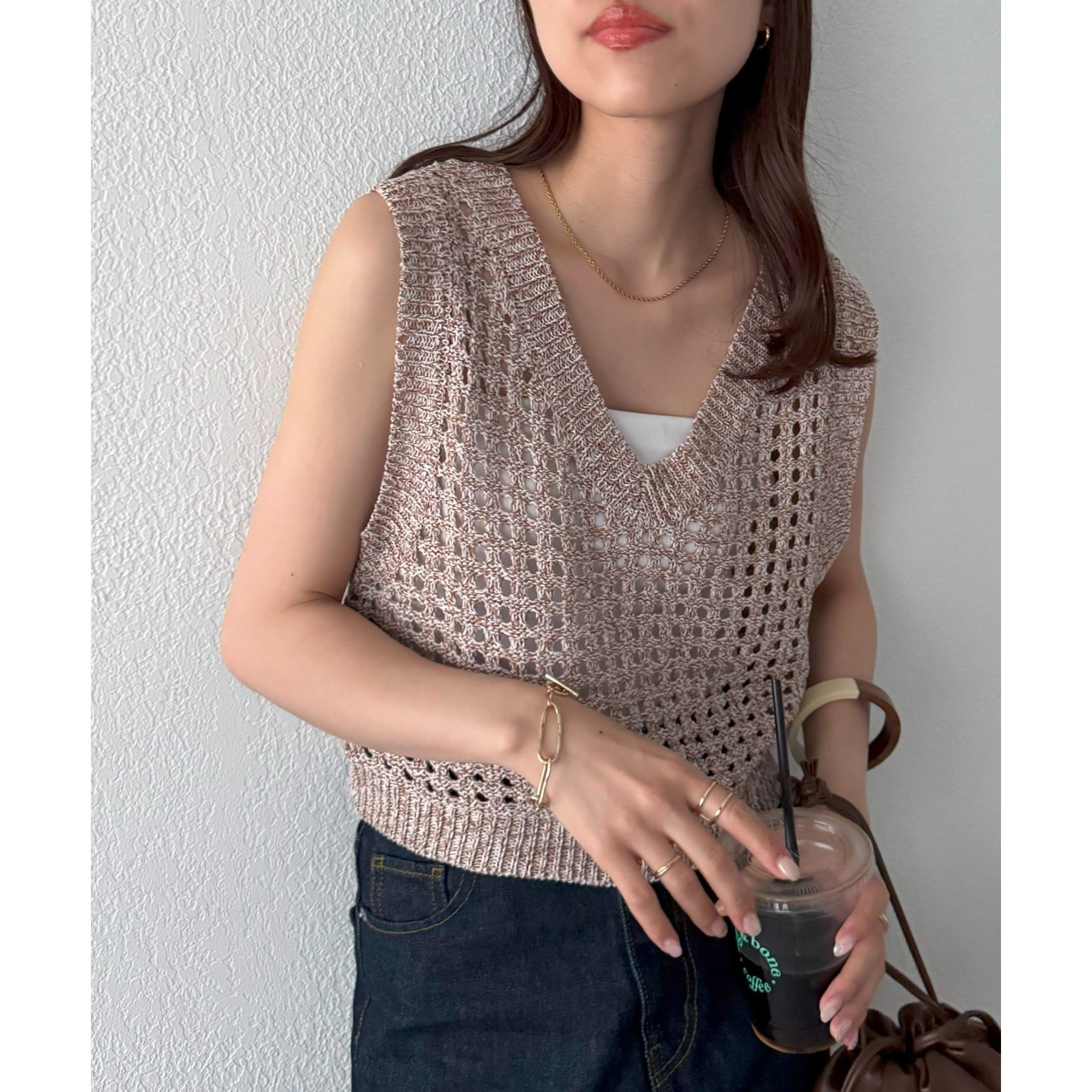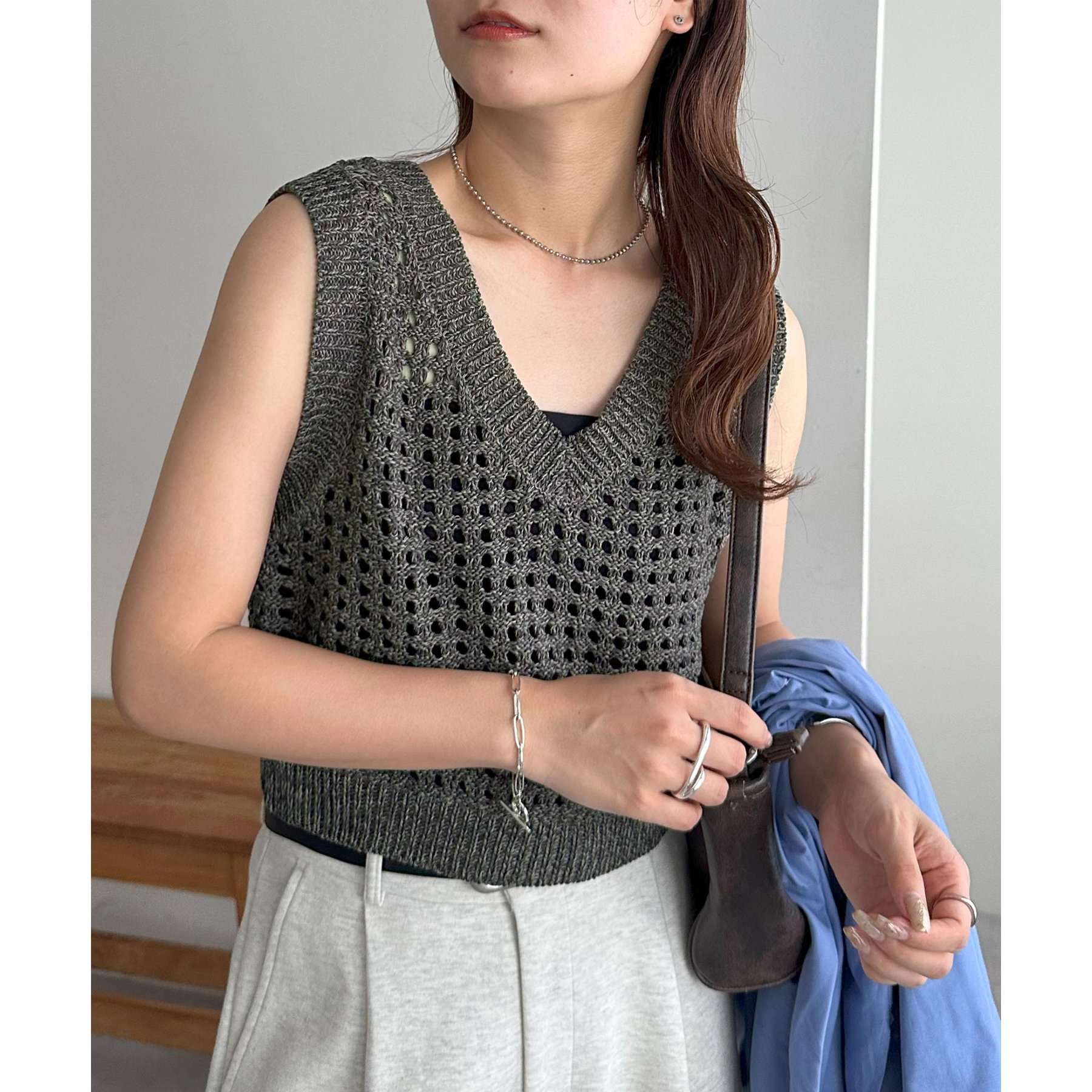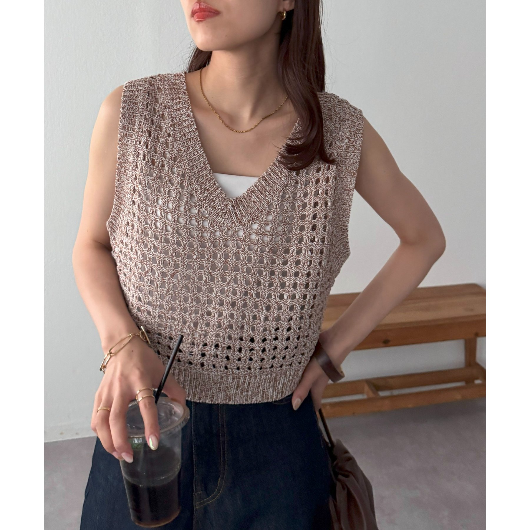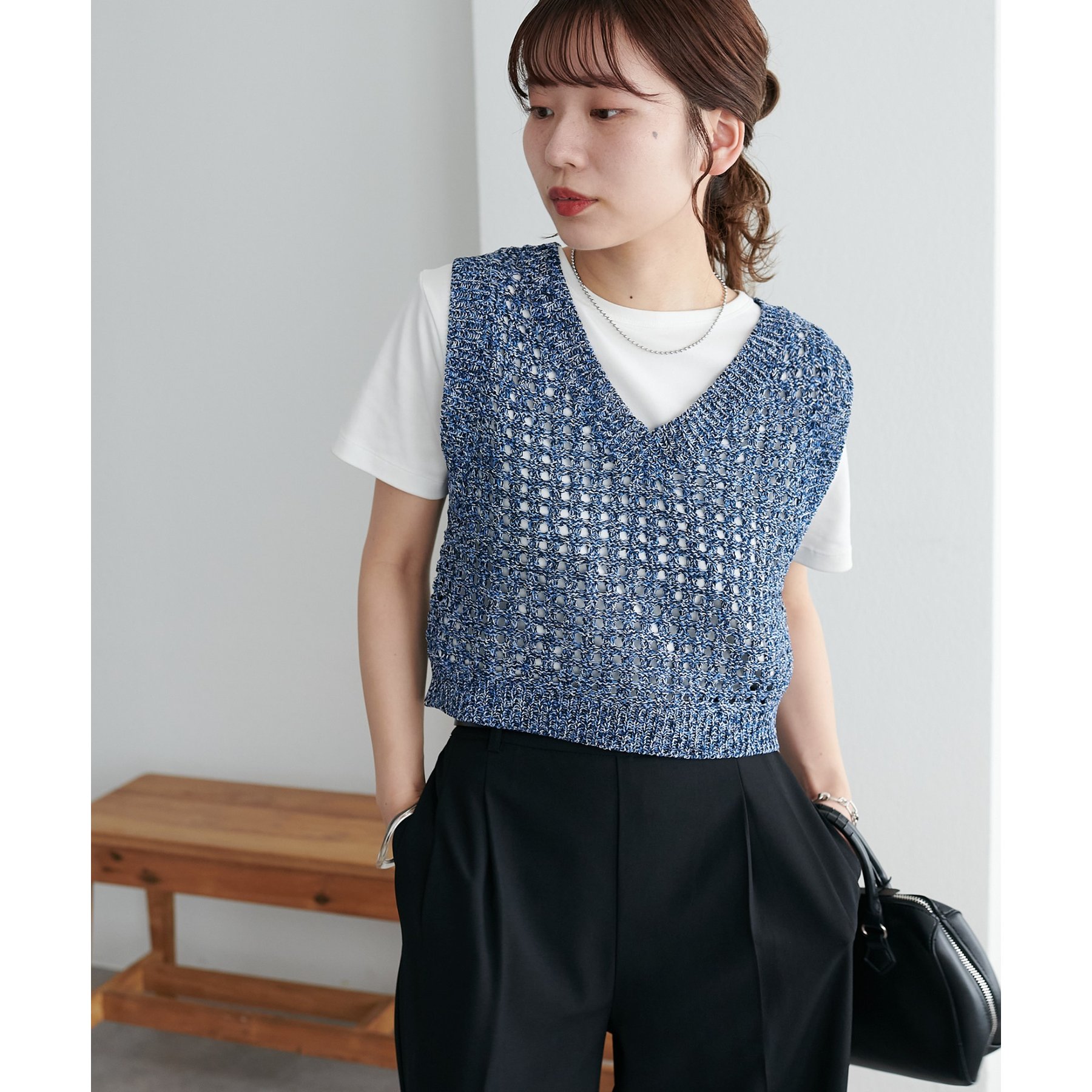 ・透かし編みで軽やか&涼しげな印象のニットベスト